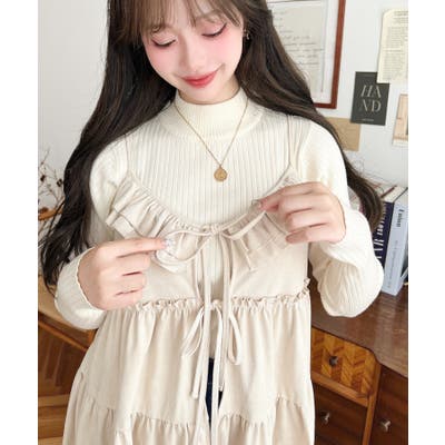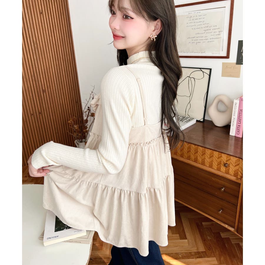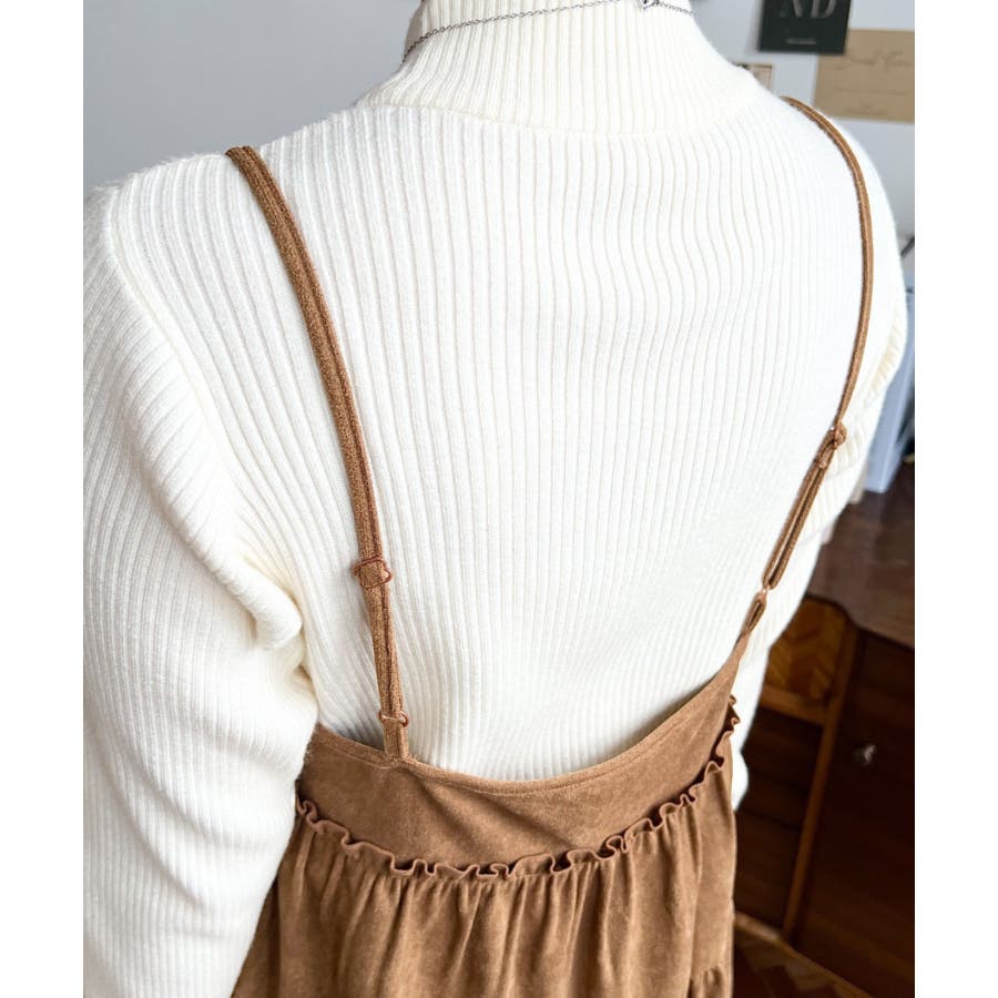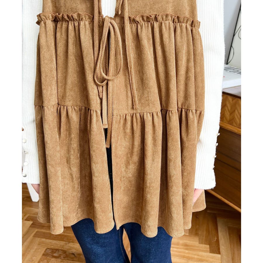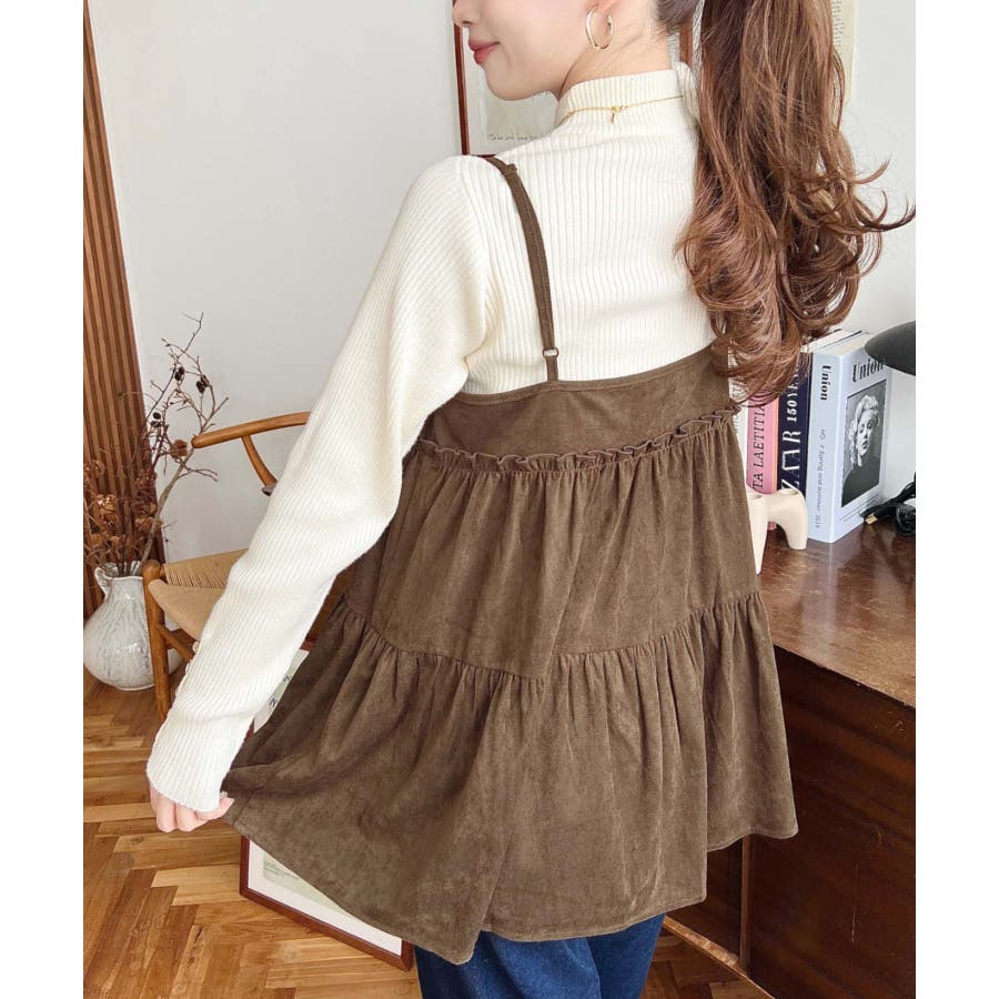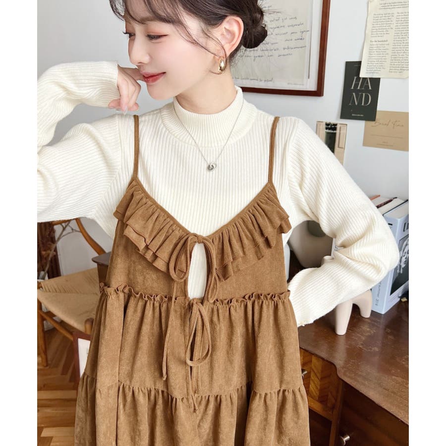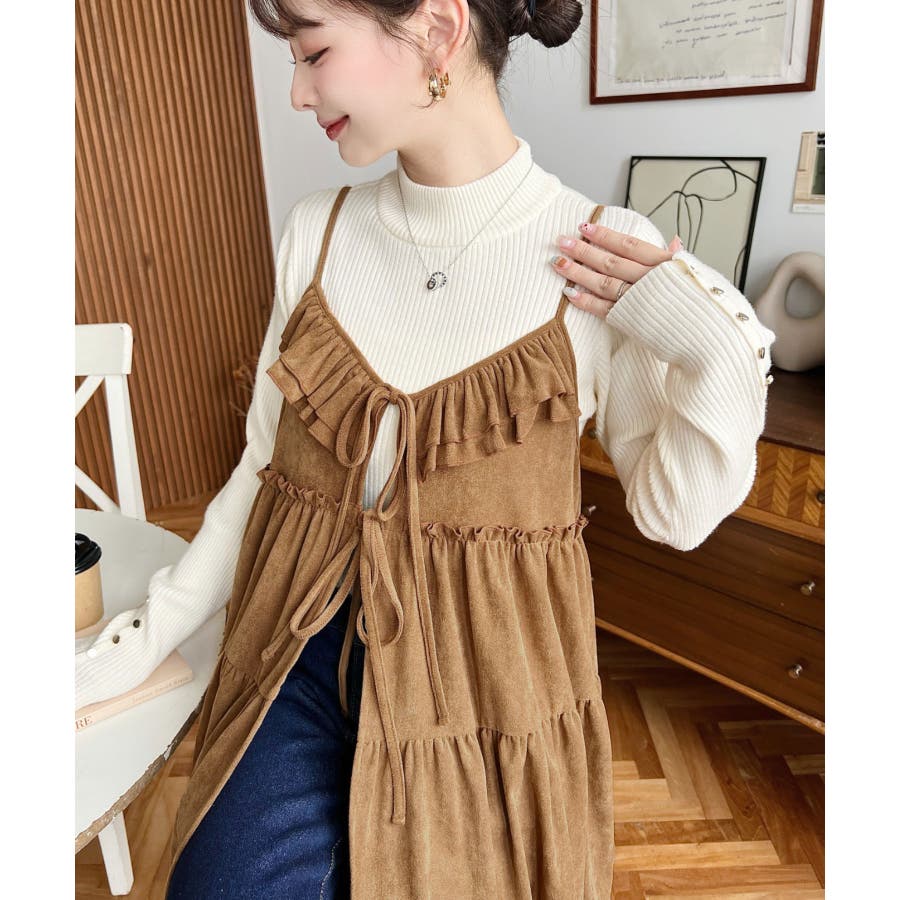 【ダブルリボンがアクセント。フリル×スエードで魅せる、大人のレイヤードトップス◎】
