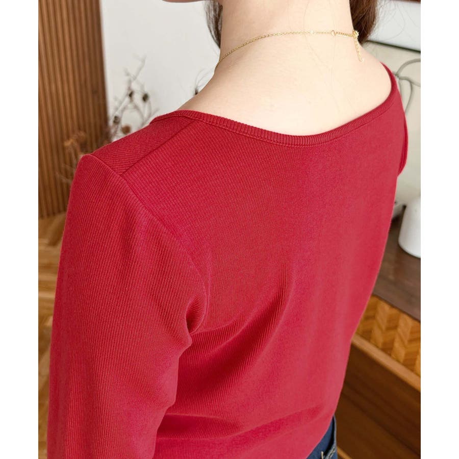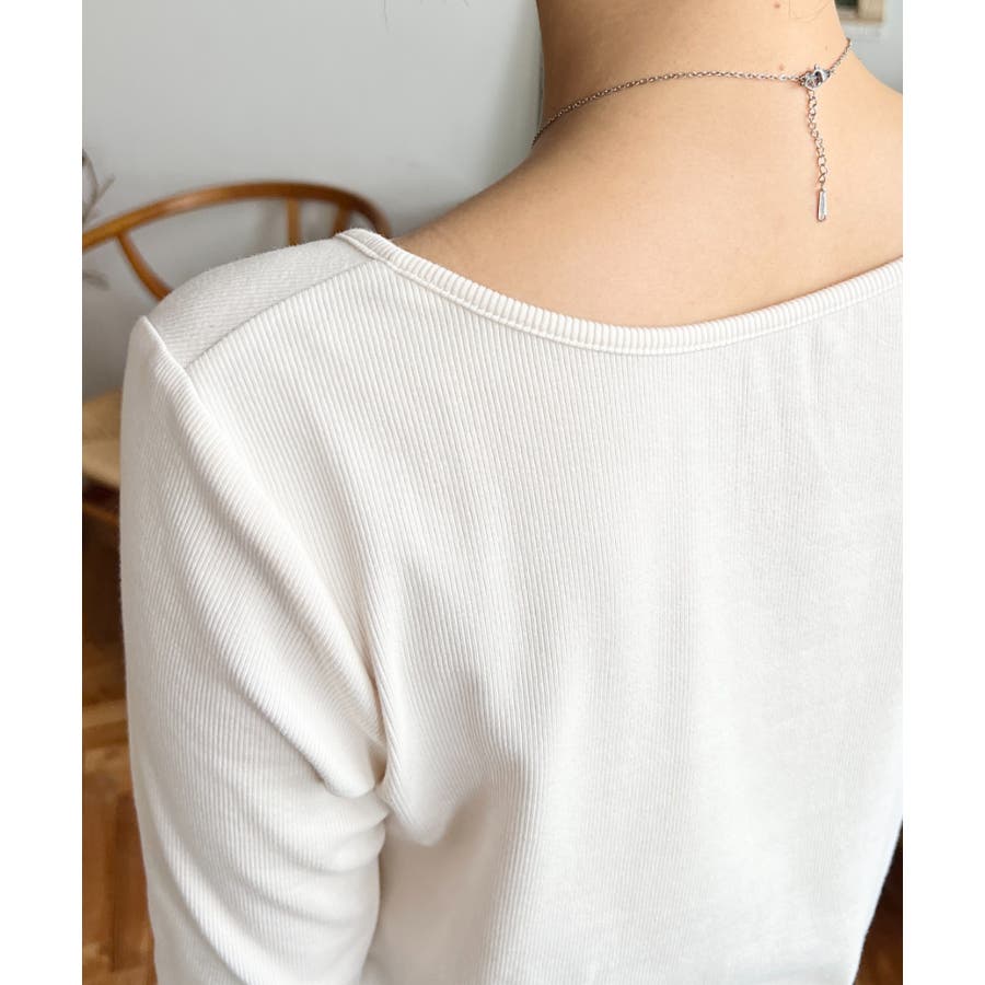 ・フレアスカートやタイトスカート×ローファー合わせで、ウエスト位置が高く見え脚長効果抜群なコーデに◎・スラックスやジャケットのインナーに合わせ、きれいめオフィスコーデにも。無地カラーでもしっかりデザインがあるのがマンネリコーデにならず嬉しいポイント。