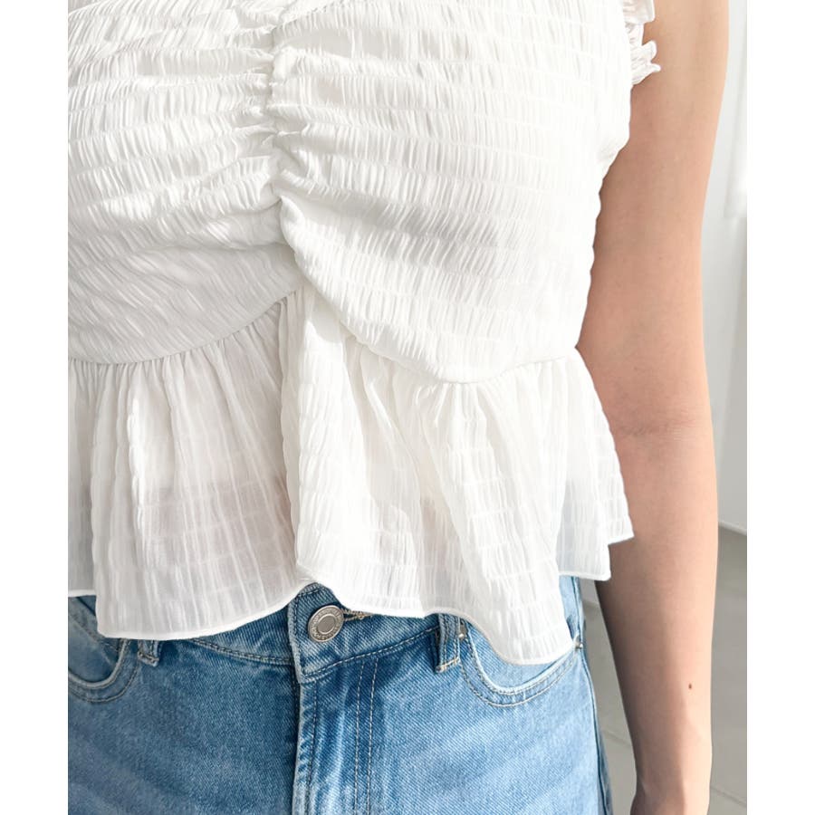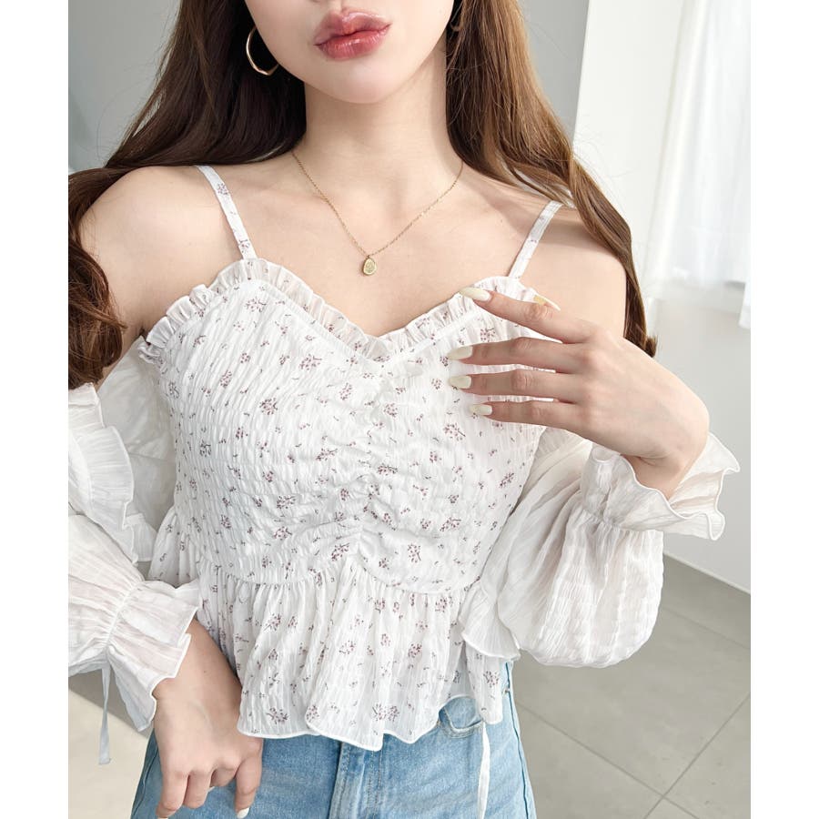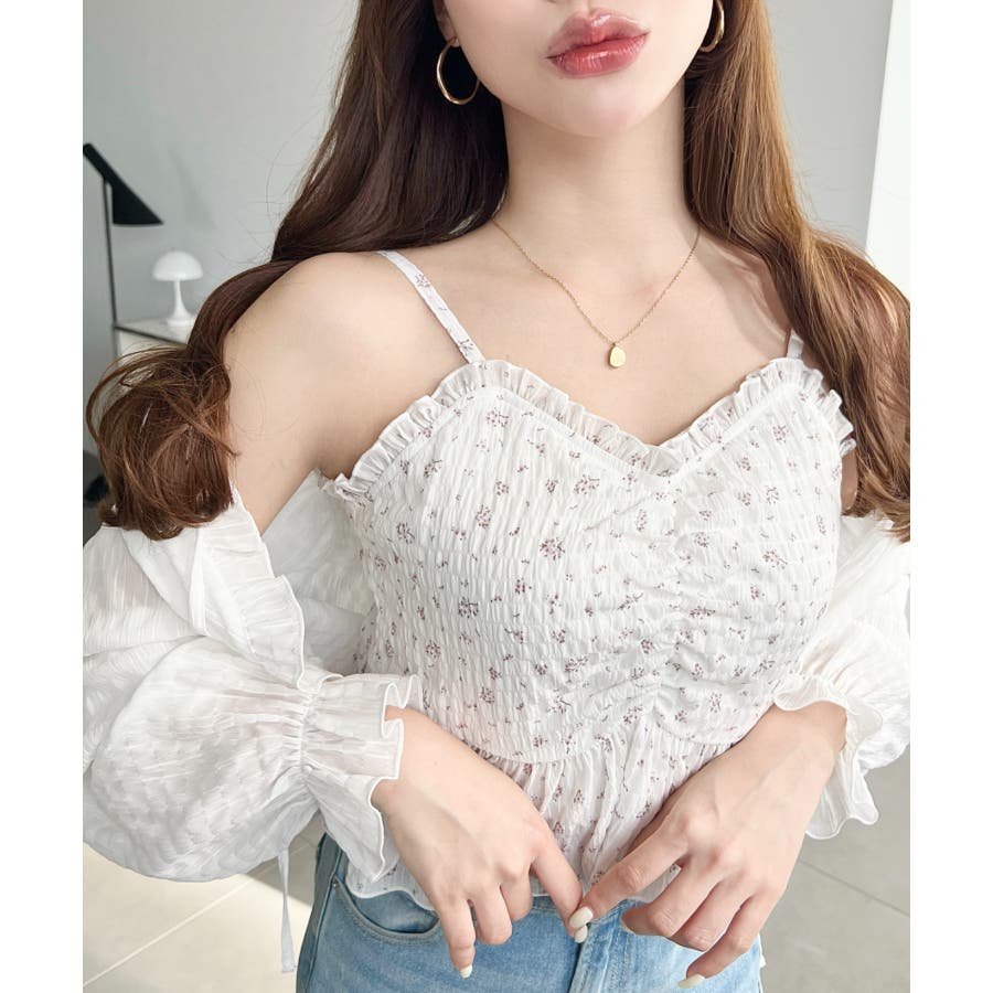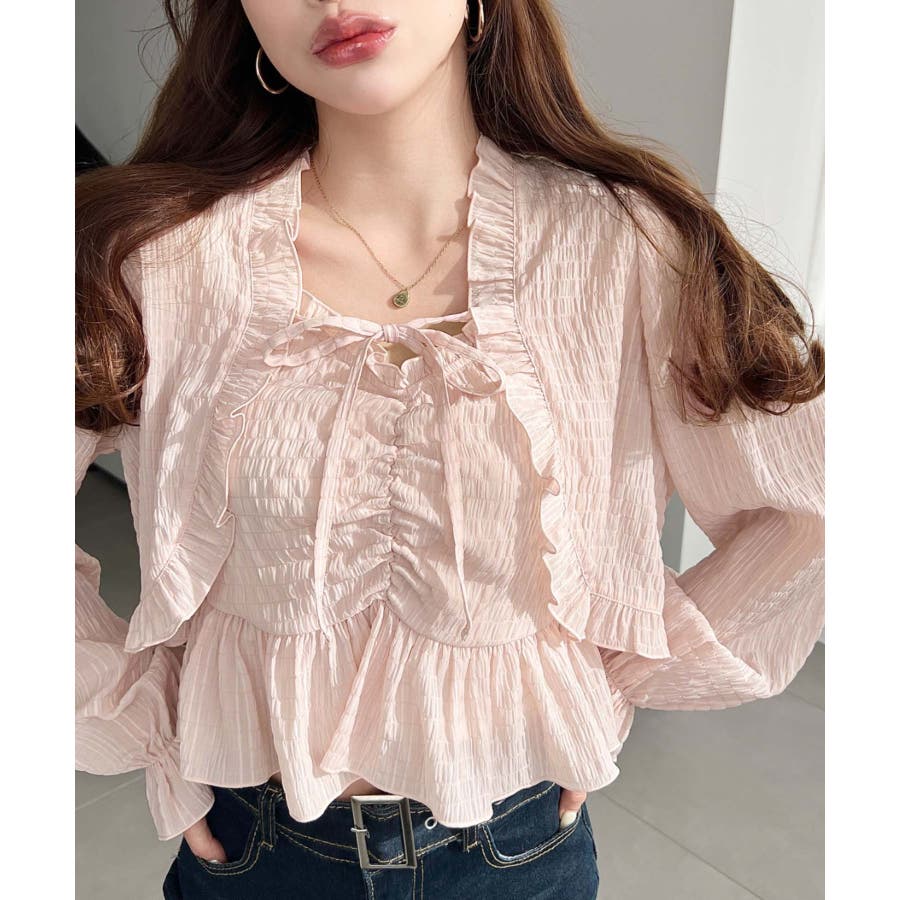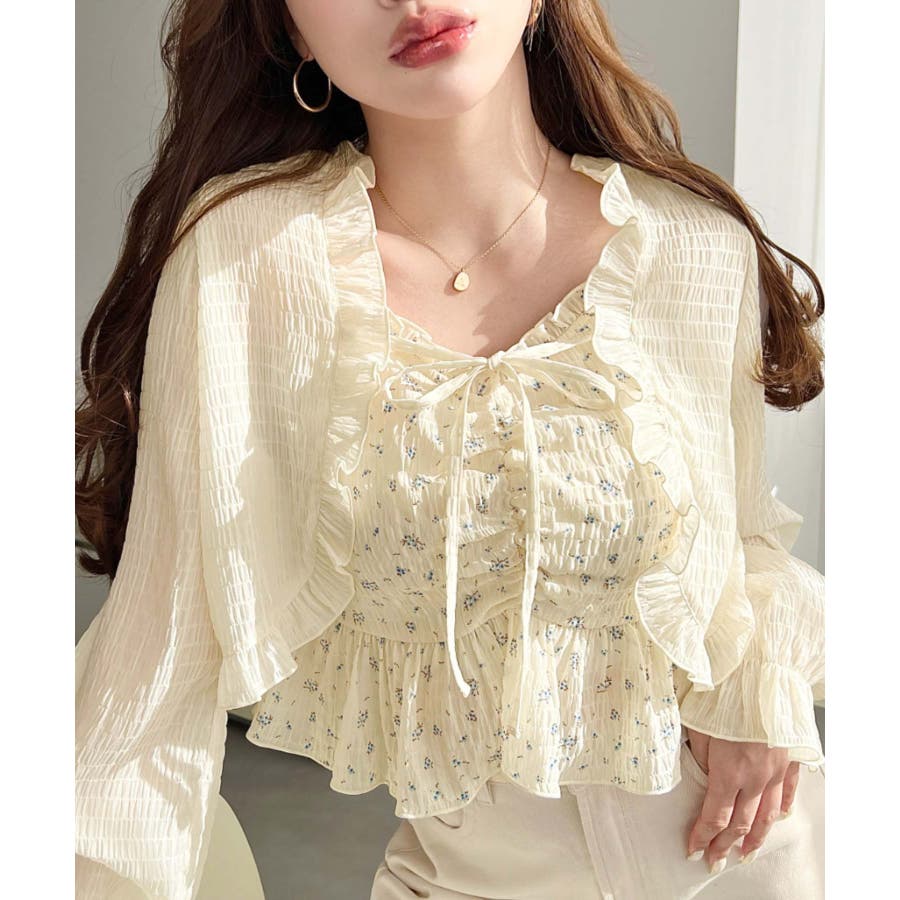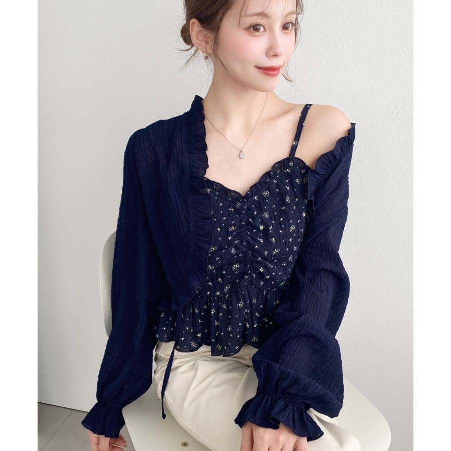 【シャーリング×フリルで魅せる!キャミとボレロがセットになったフェミニントップス♪】