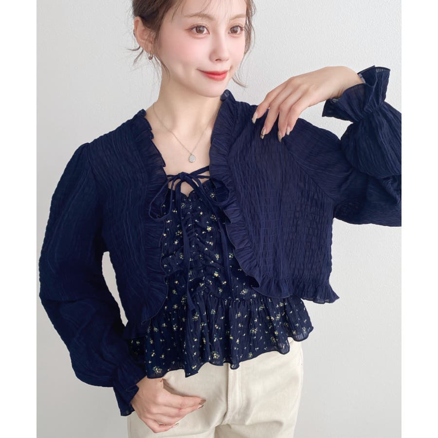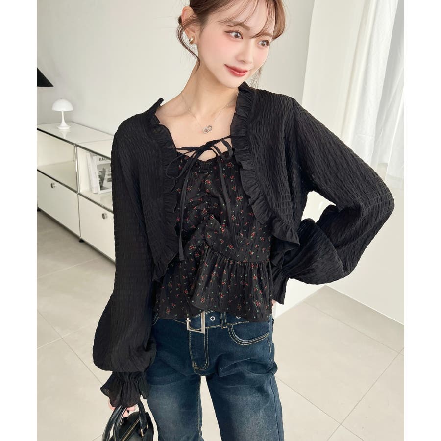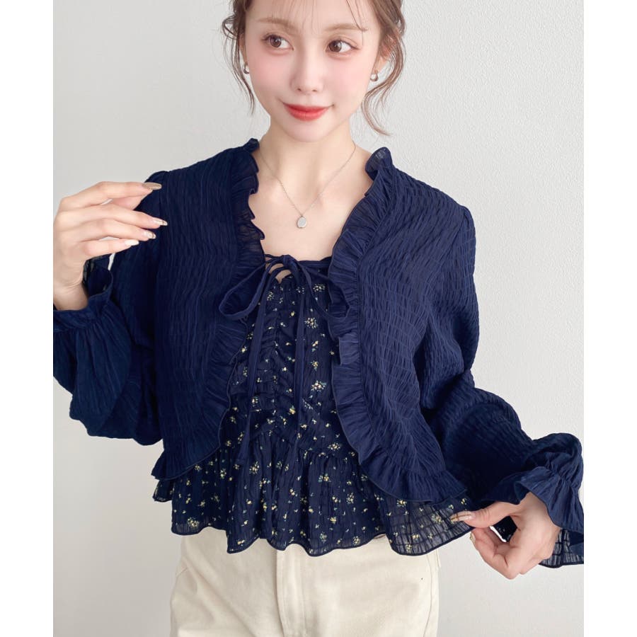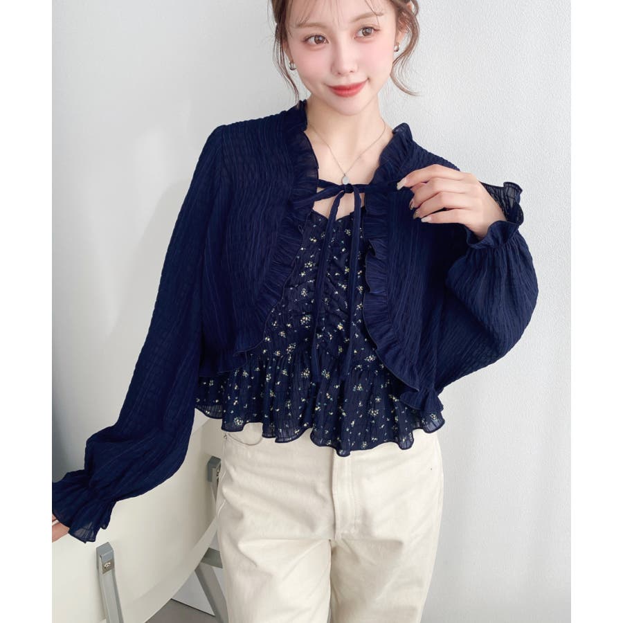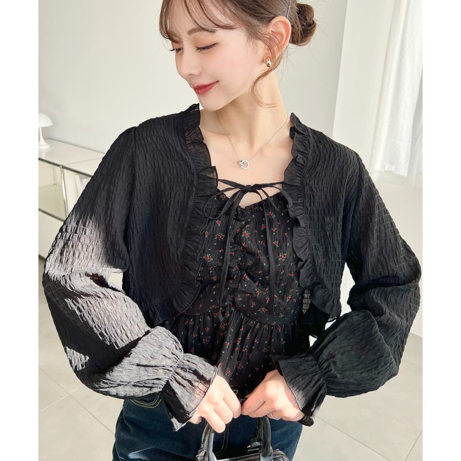 ・ボレロは短め丈にすることでバランスが取りやすく、フリルとリボンディテールがコーデに甘さとアクセントをプラスしてくれます♪