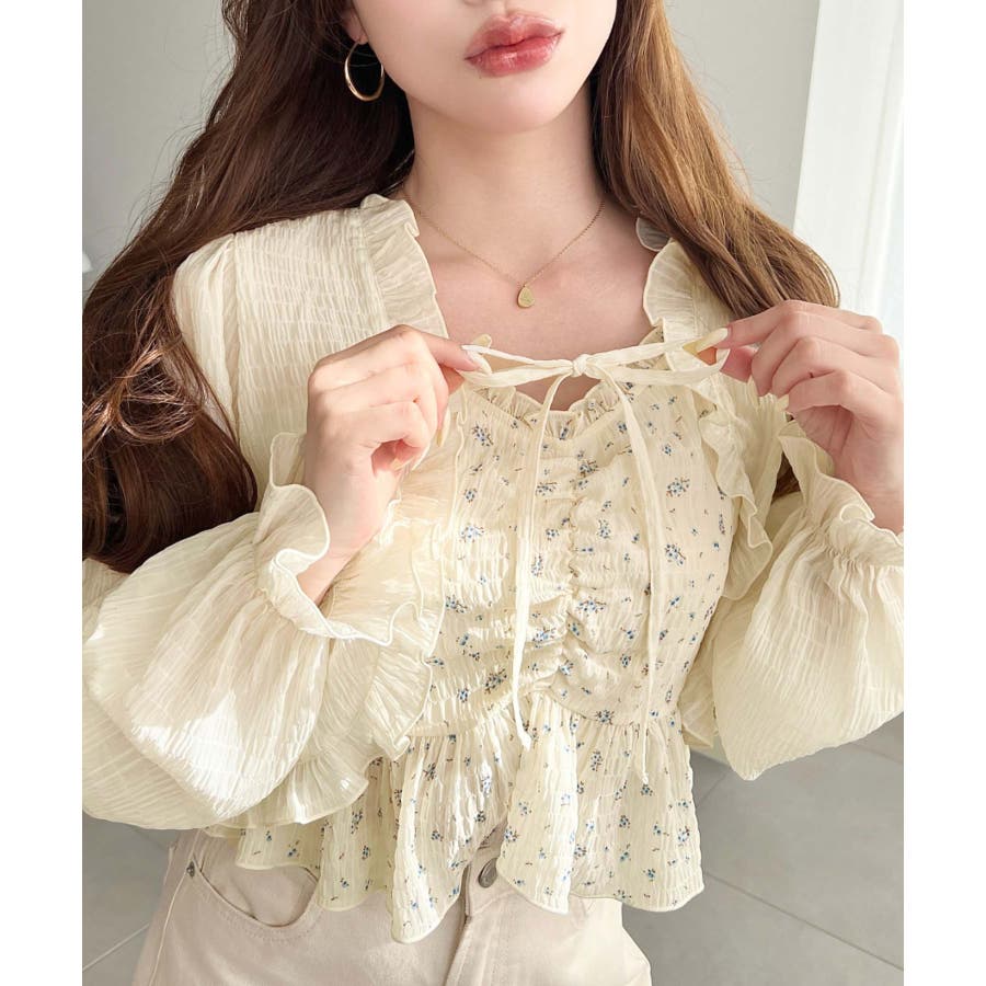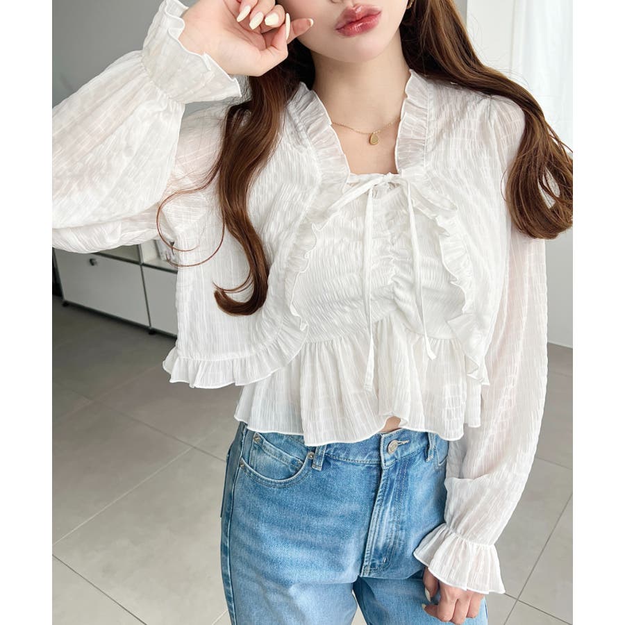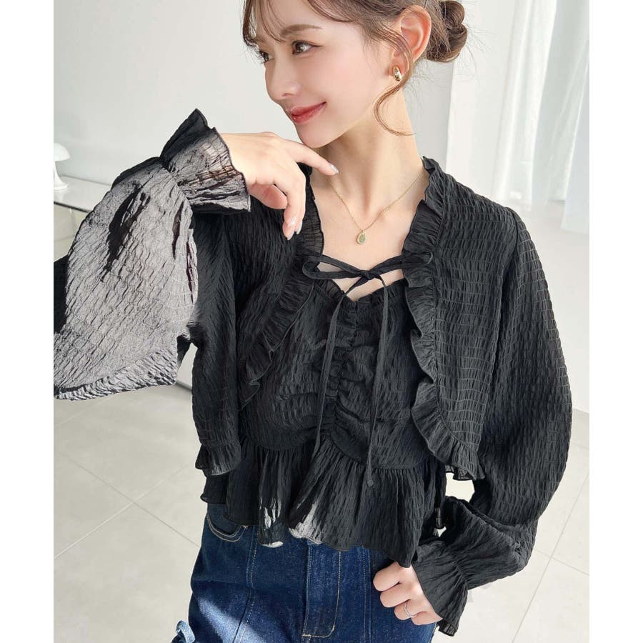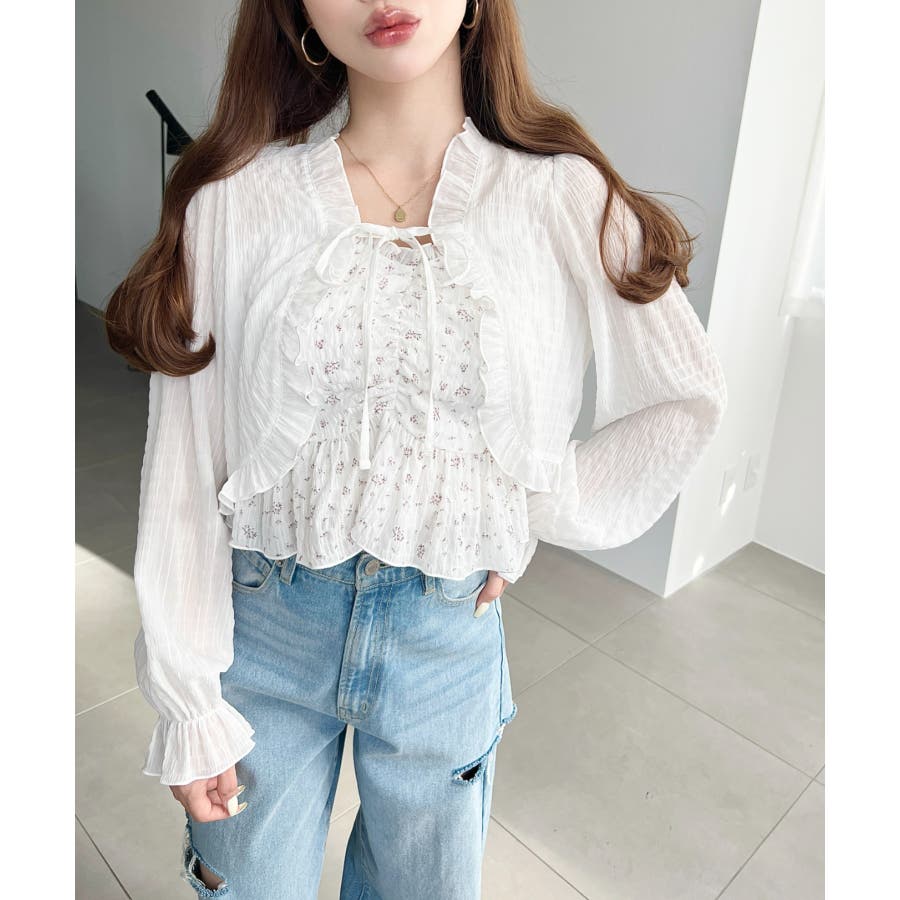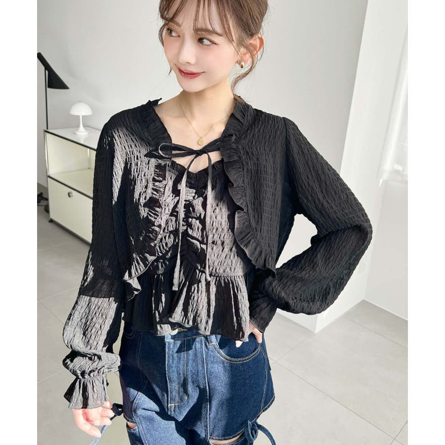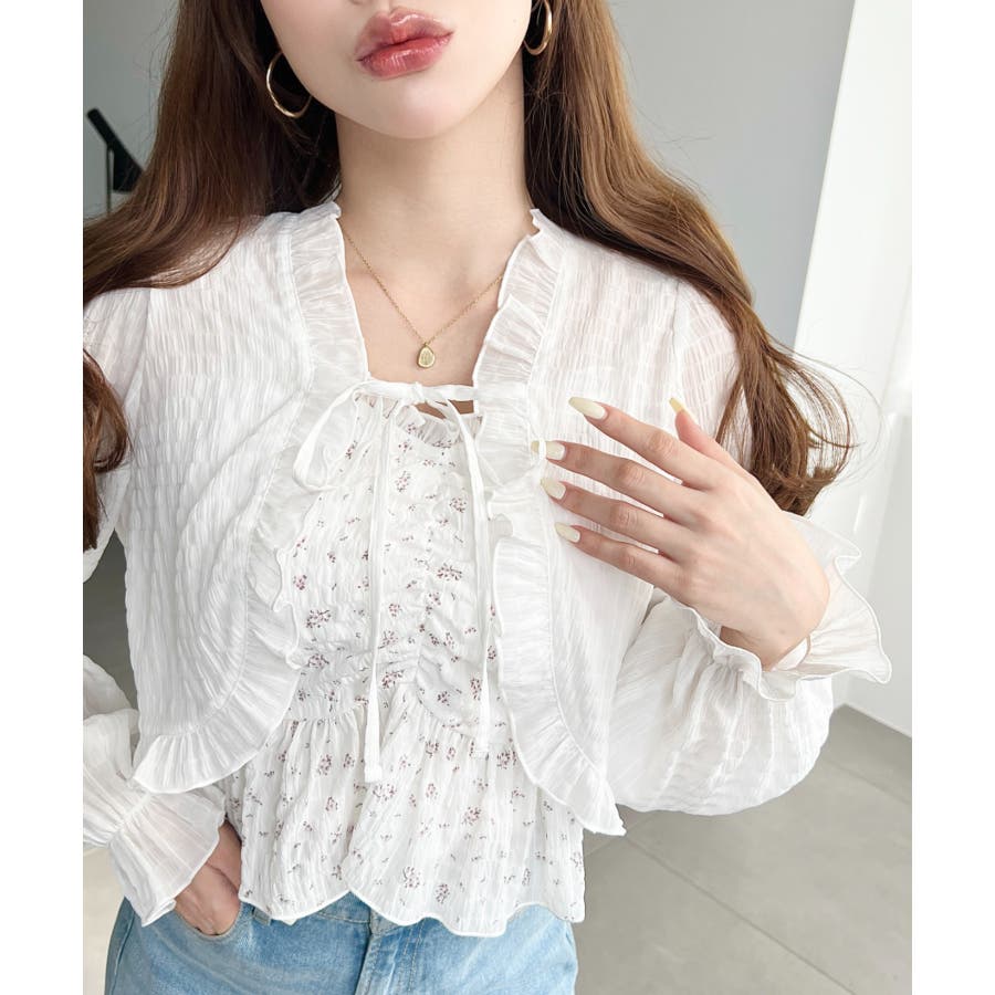 ・ボレロは短め丈にすることでバランスが取りやすく、フリルとリボンディテールがコーデに甘さとアクセントをプラスしてくれます♪