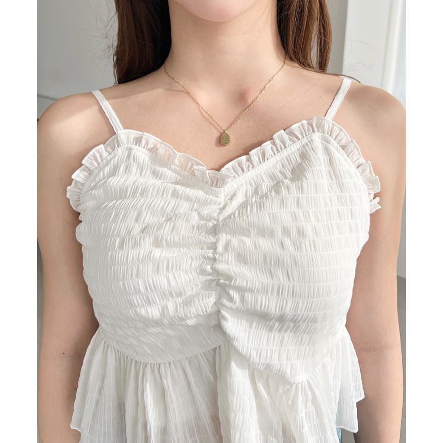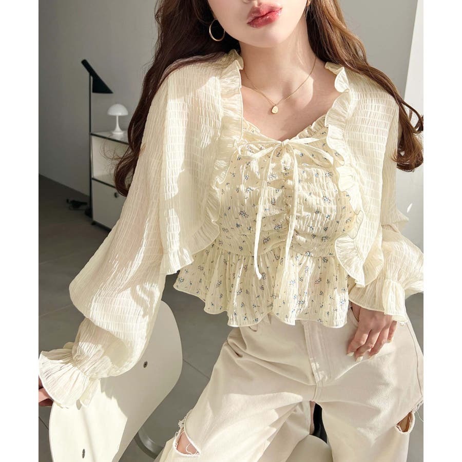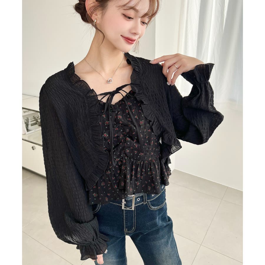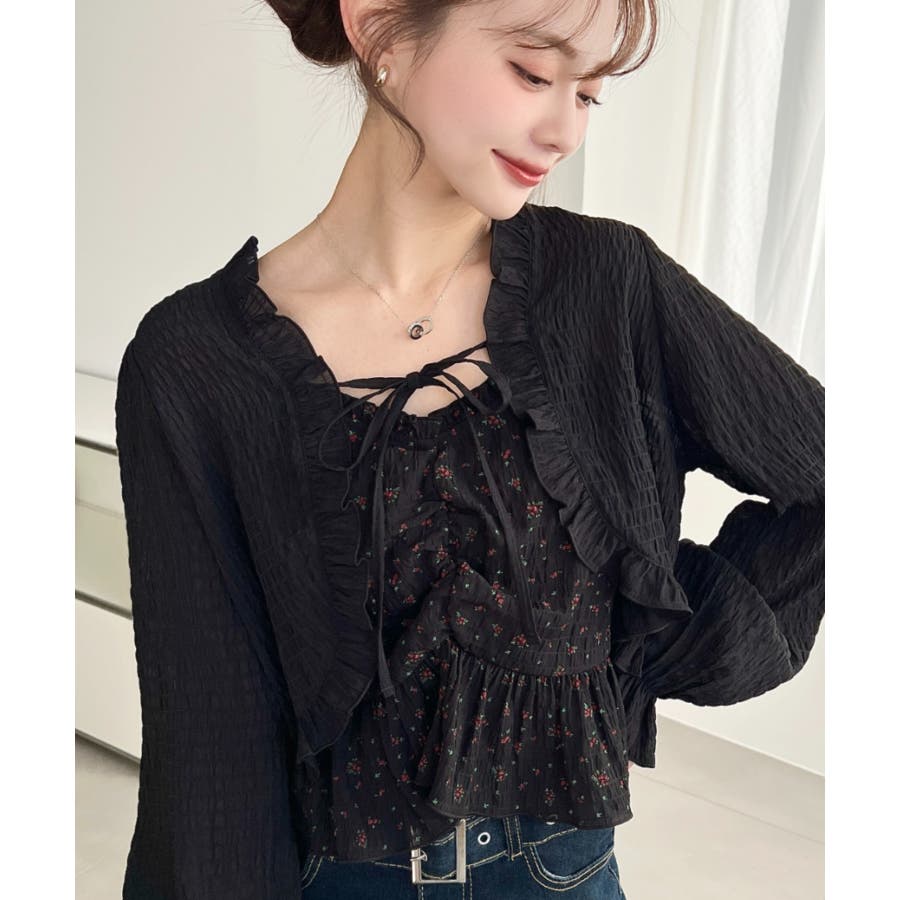 フロントシャーリングキャミ+フリルリボンボレロセット シアースモッキングライク