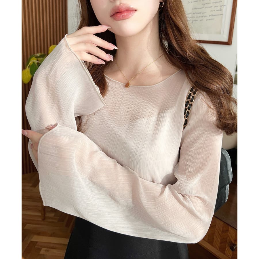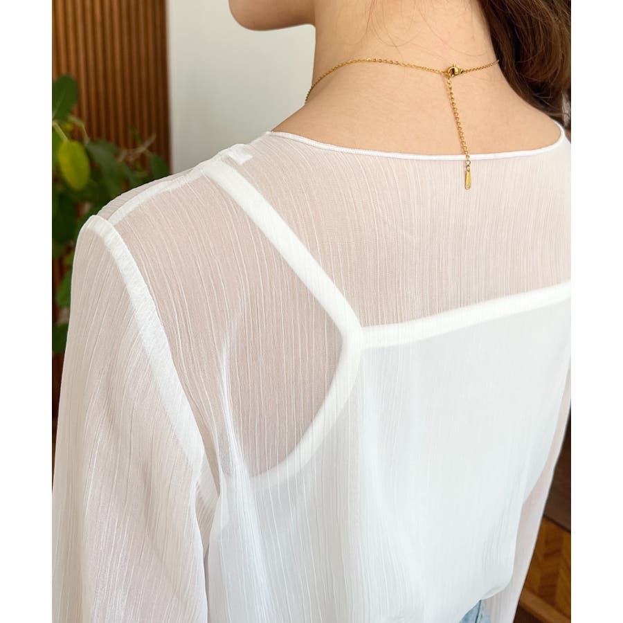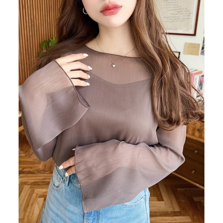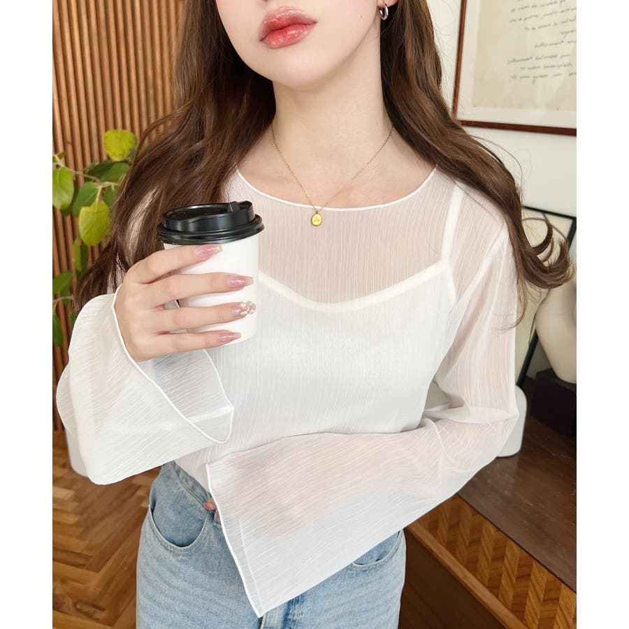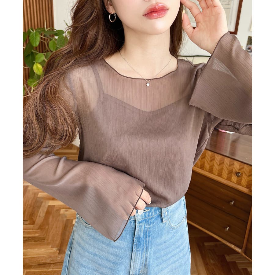 インナーキャミ付き長袖メロウ楊柳シアーブラウス