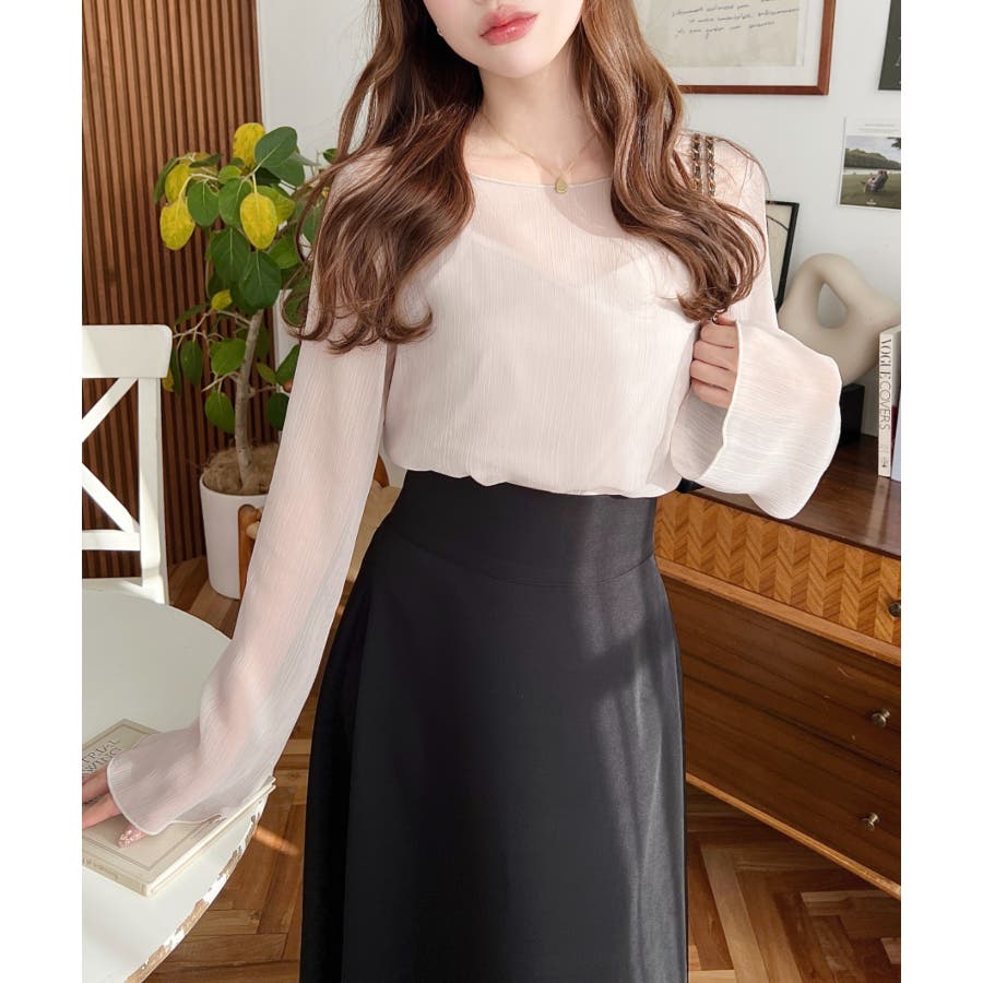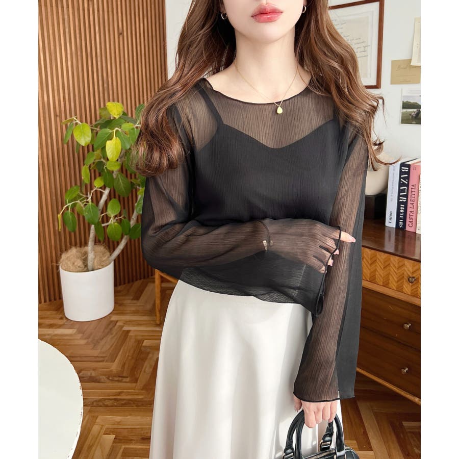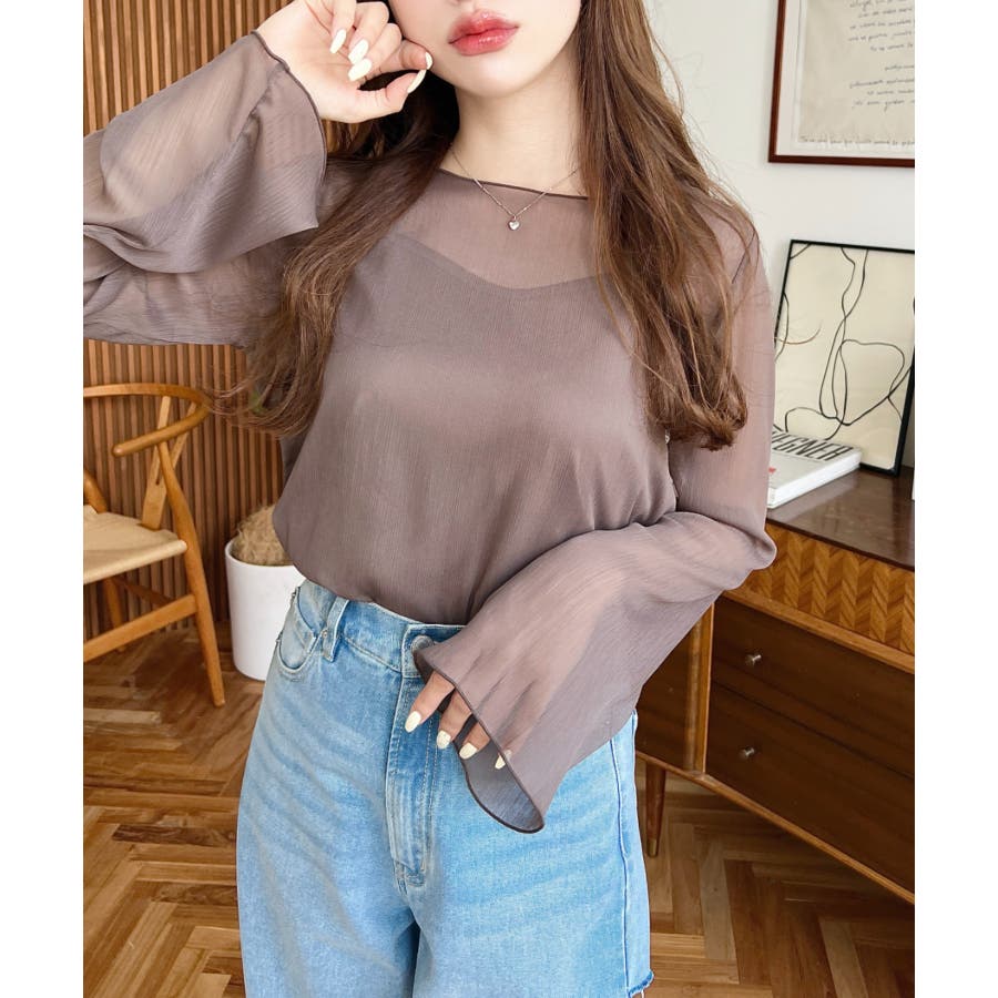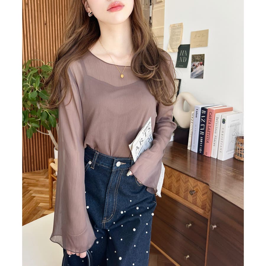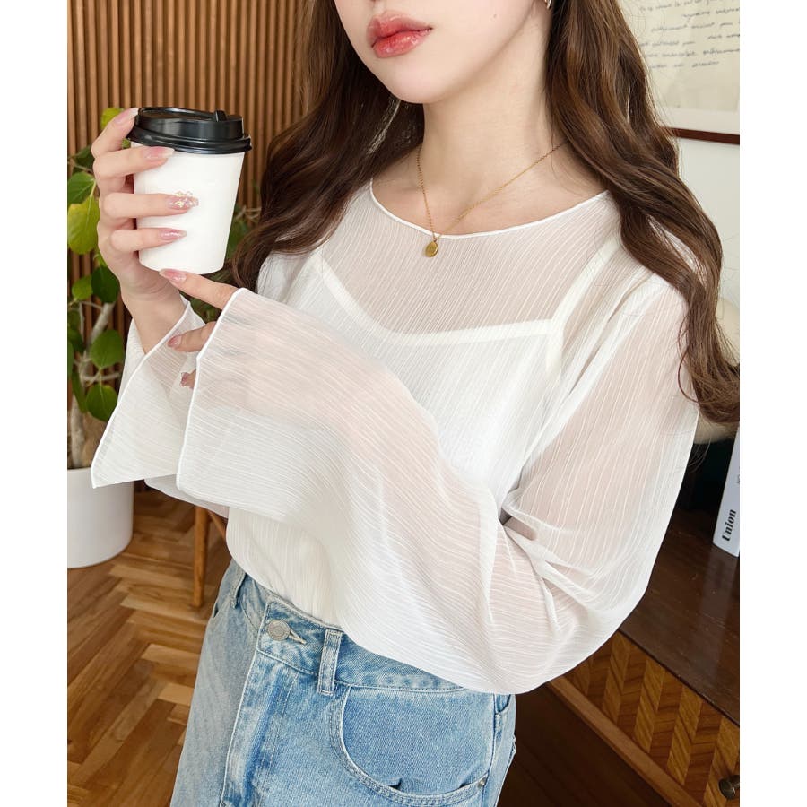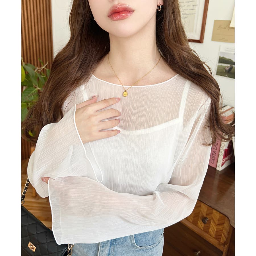 インナーキャミ付き長袖メロウ楊柳シアーブラウス