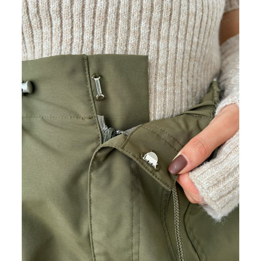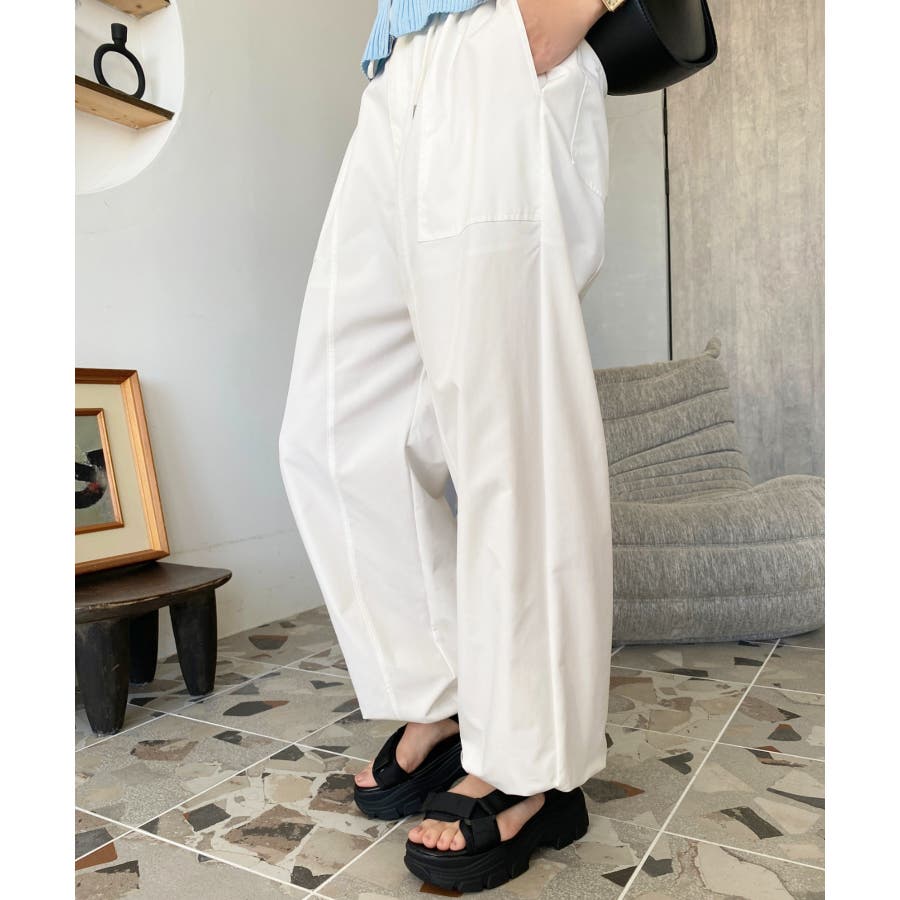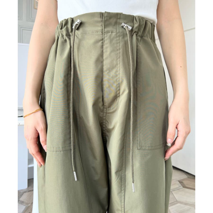 ・ウエストと裾にはスピンドルが付いているので絞るとシルエットに変化をつけられます。