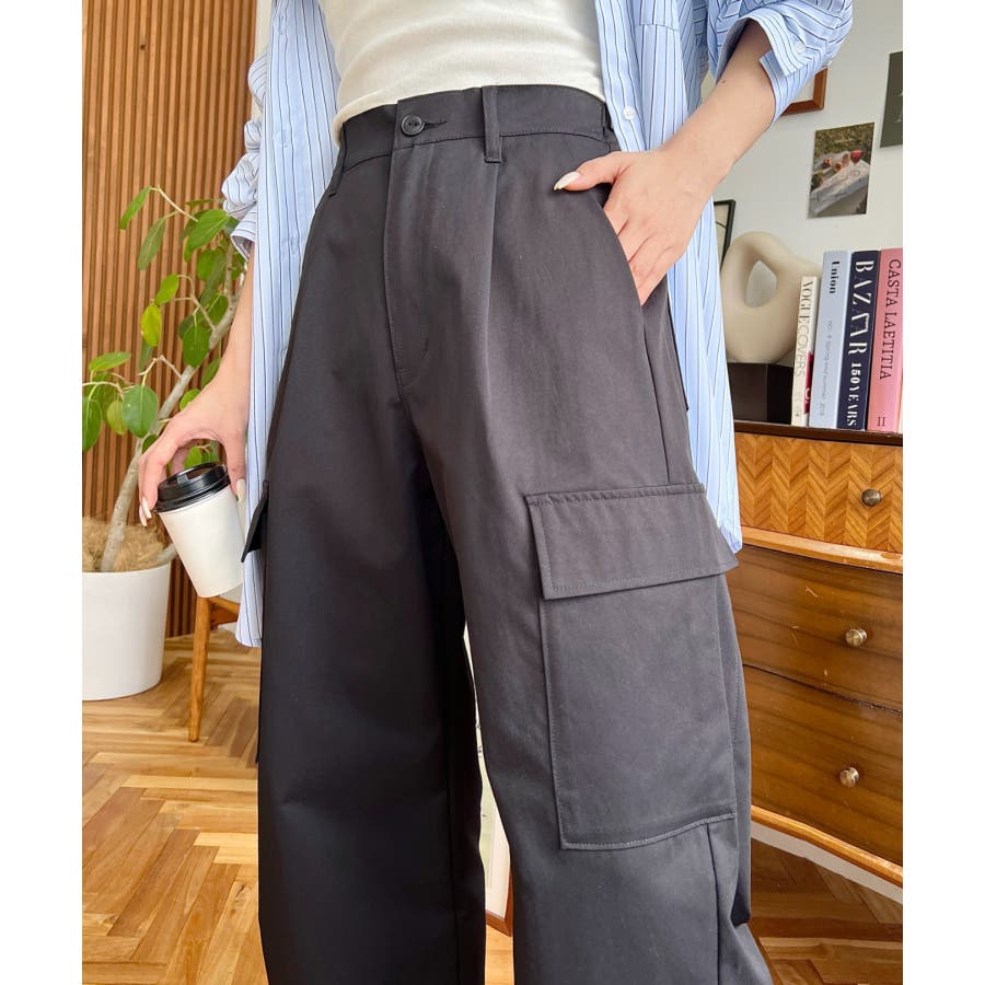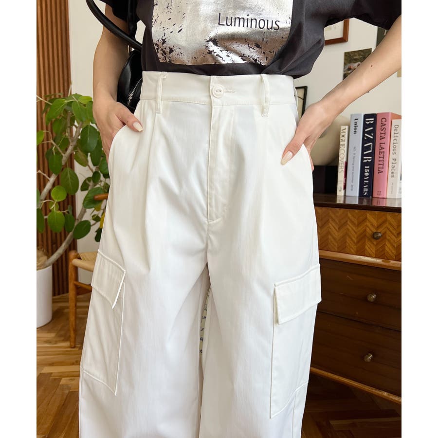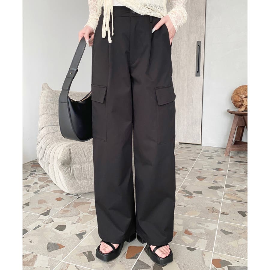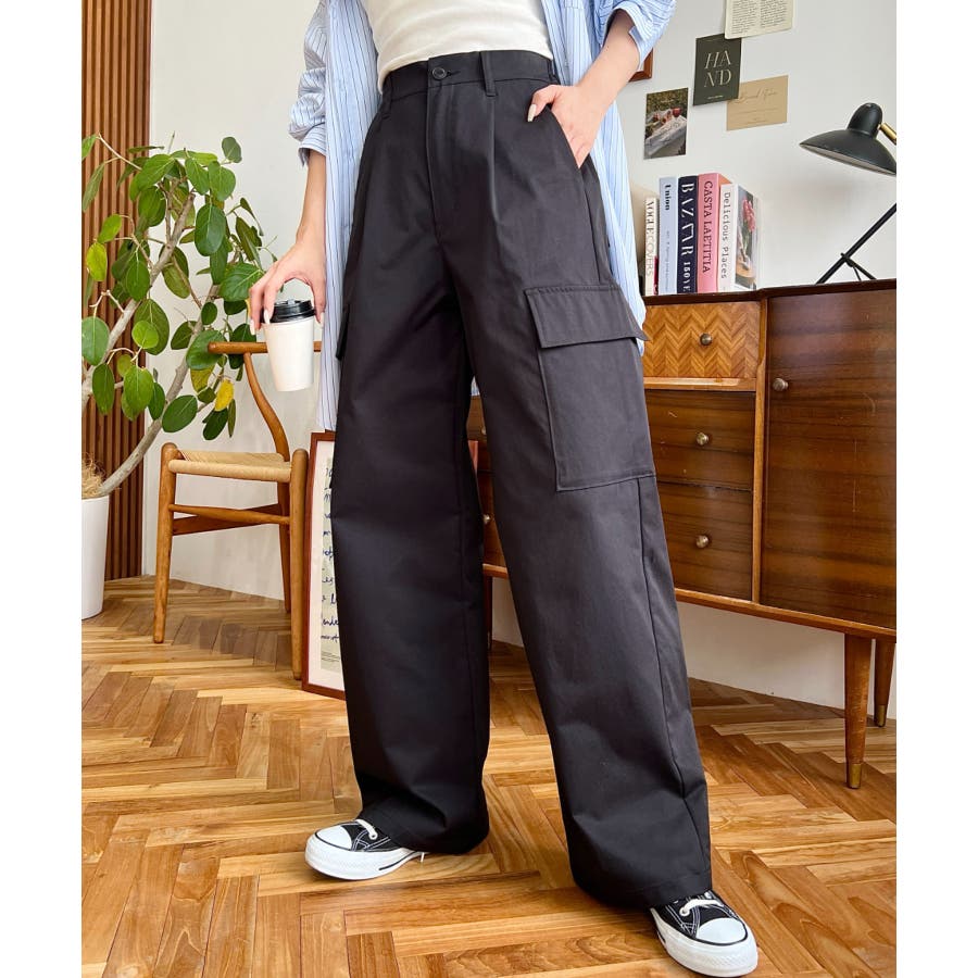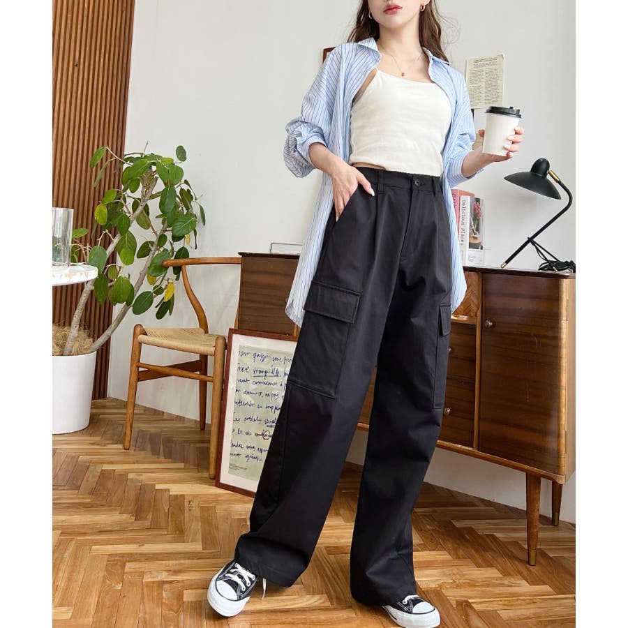 パンツ カーゴパンツ ミリタリーパンツ カジュアル セミワイドパンツ センタープレス ボタン ポケット レディース レディースファッション ボトムス 大人カジュアル 定番 プチプラ SS AW 春 夏 秋 冬 mt03005