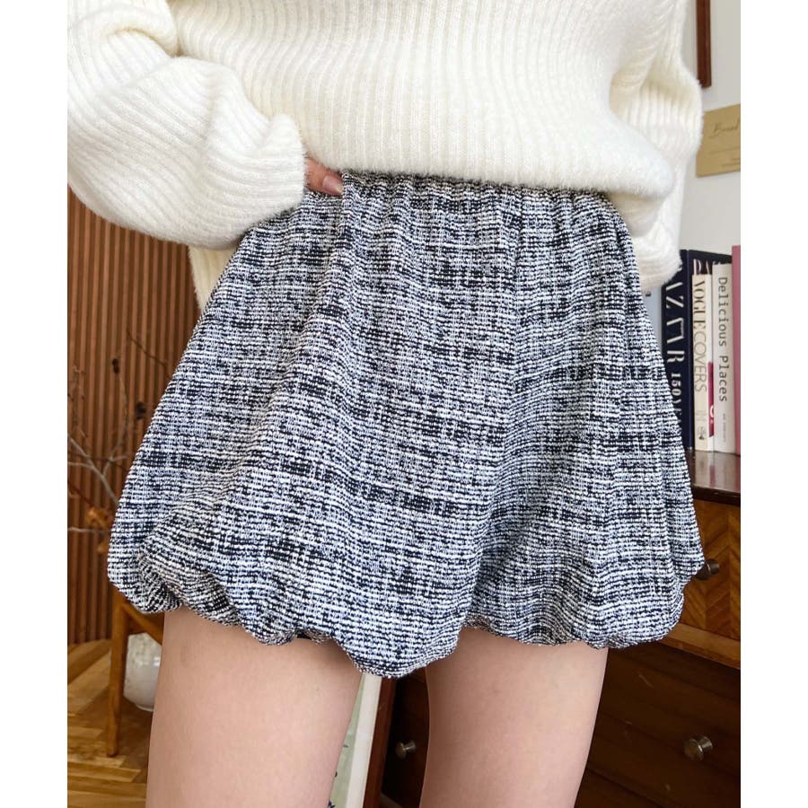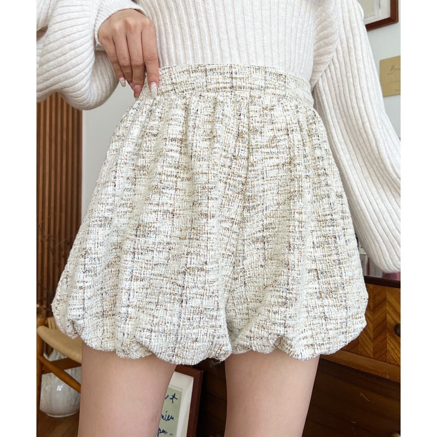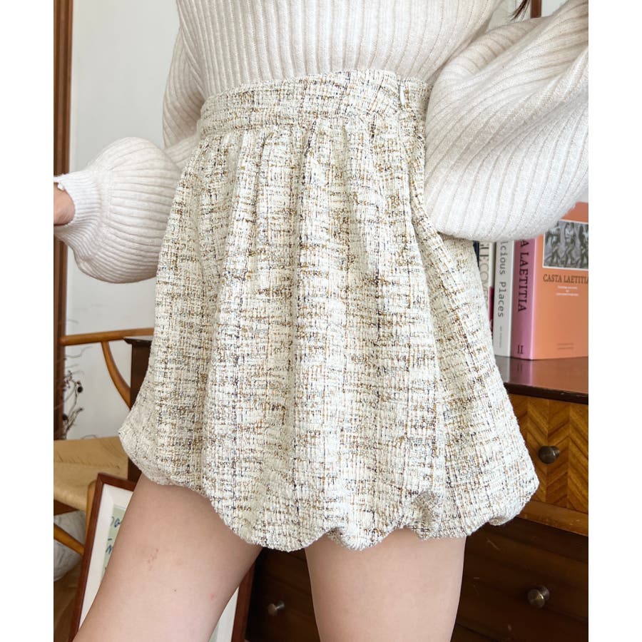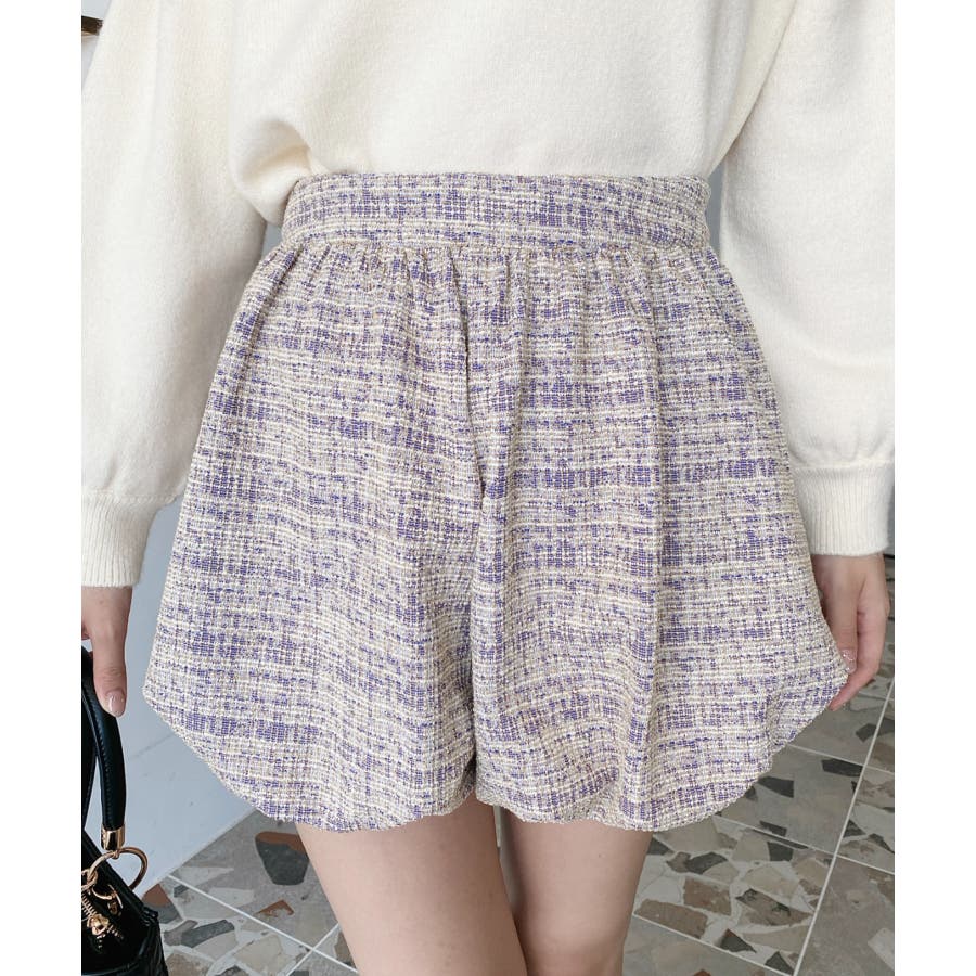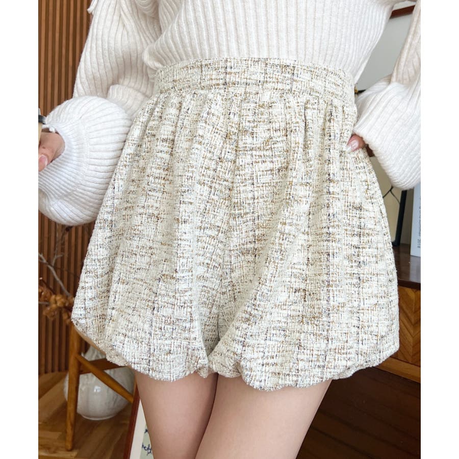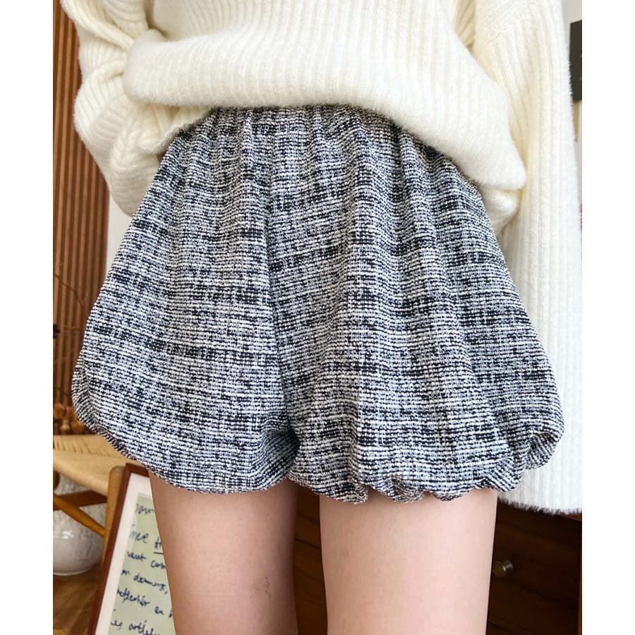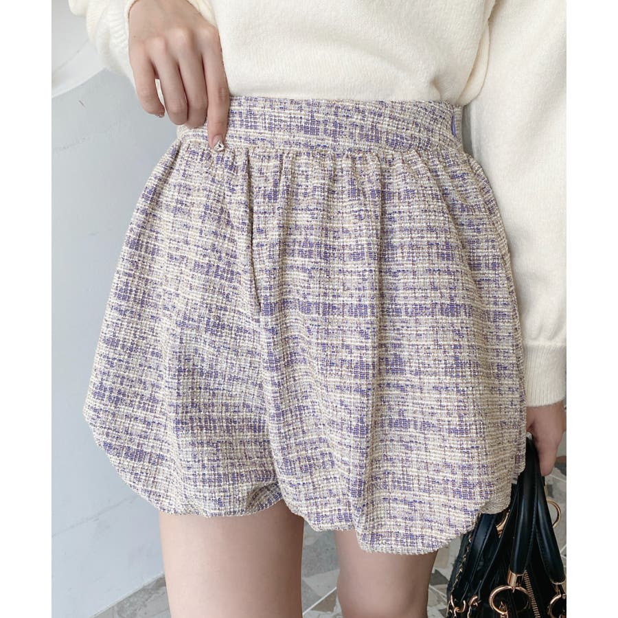 カラーツイードバルーンミニキュロット