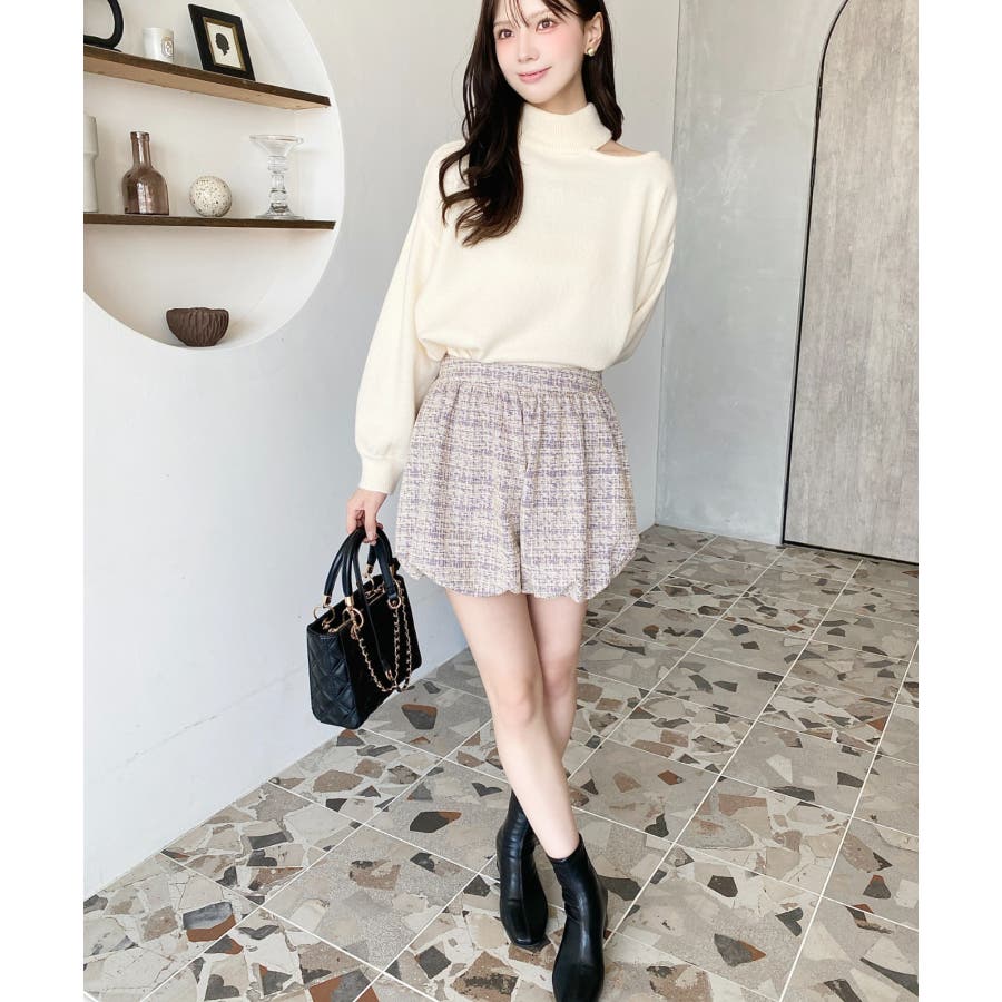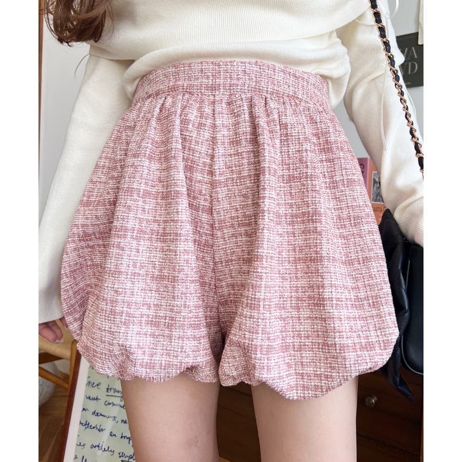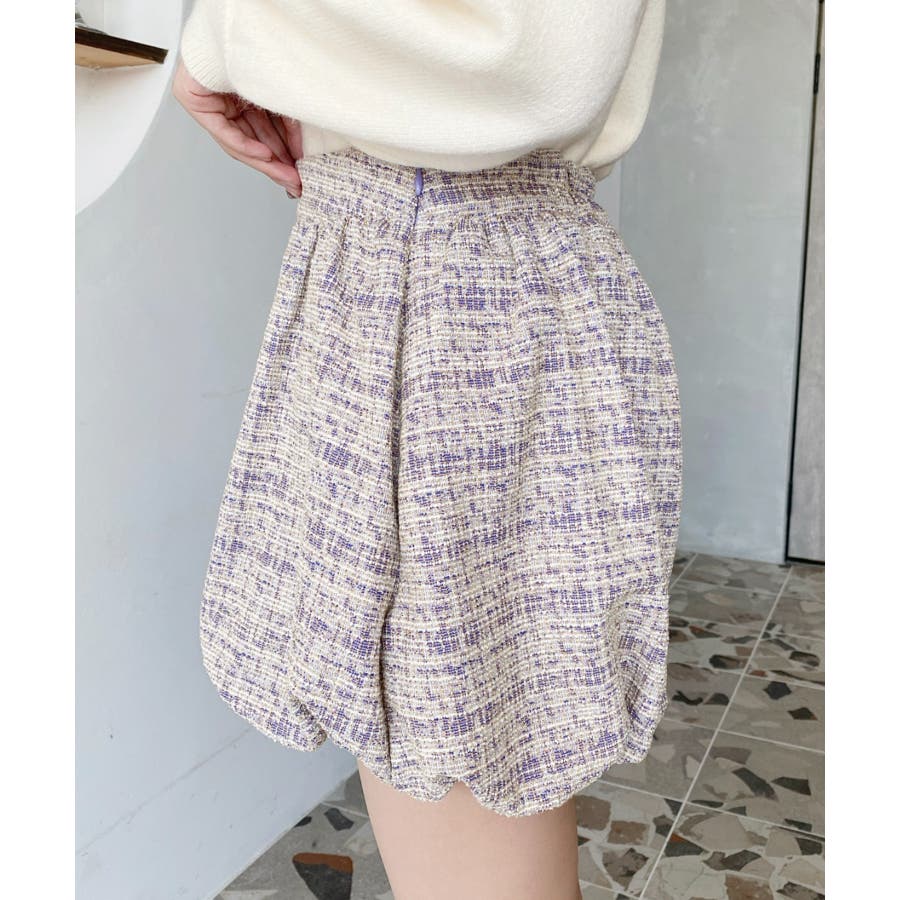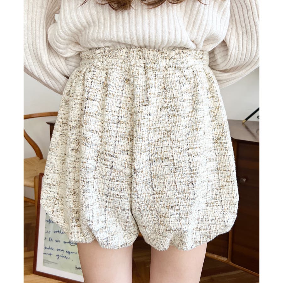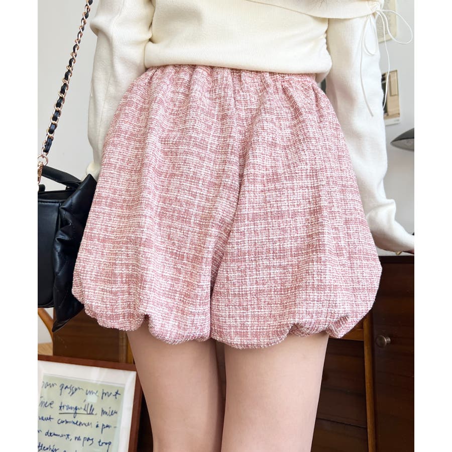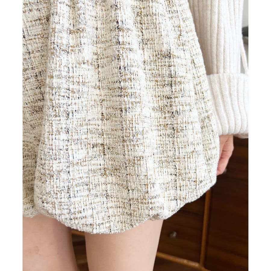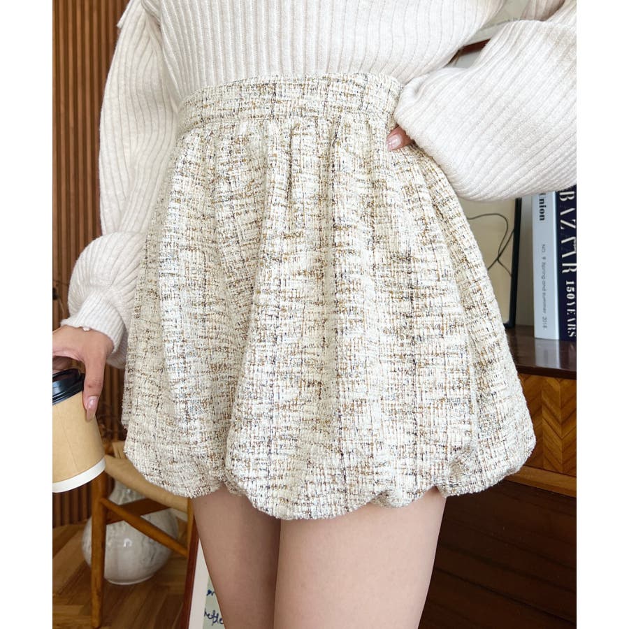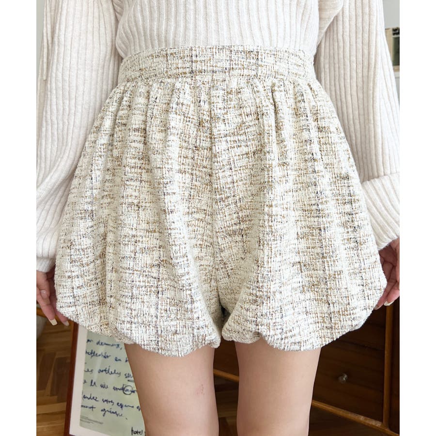 カラーツイードバルーンミニキュロット