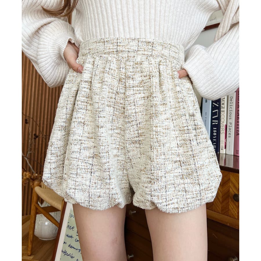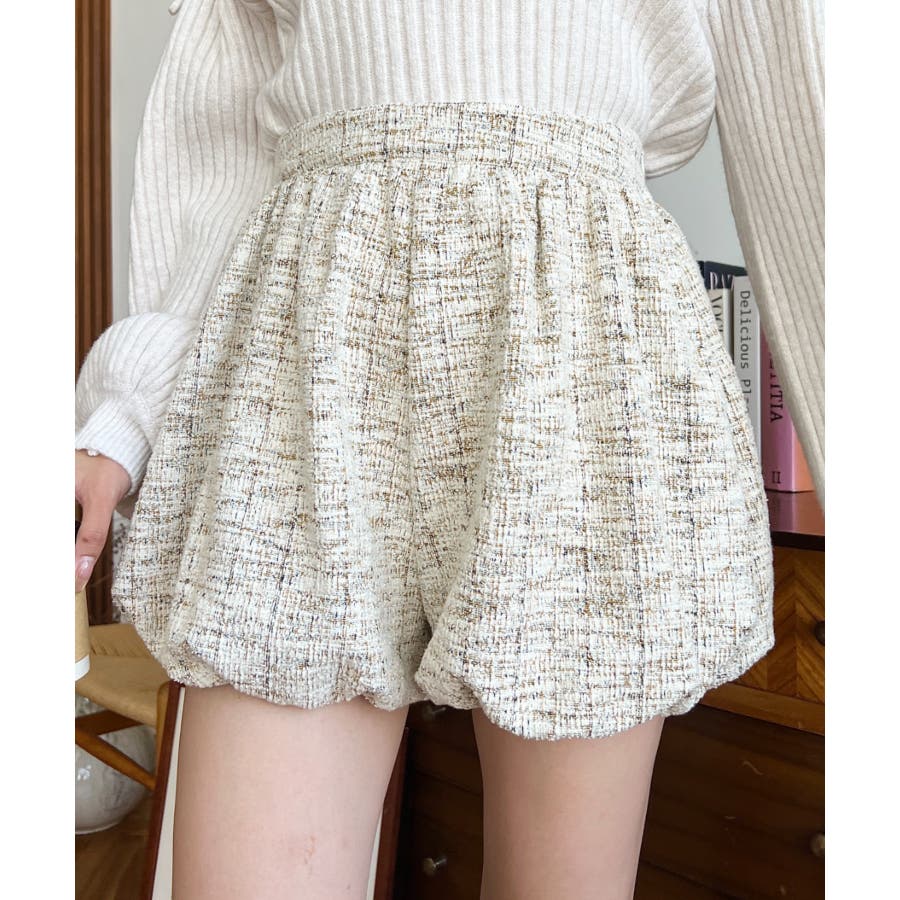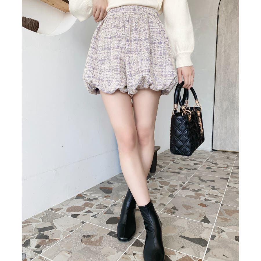 【上品見えするツイード素材でワンランク上の脚見せスタイルが叶うバルーンミニキュロットが仲間入り♪】