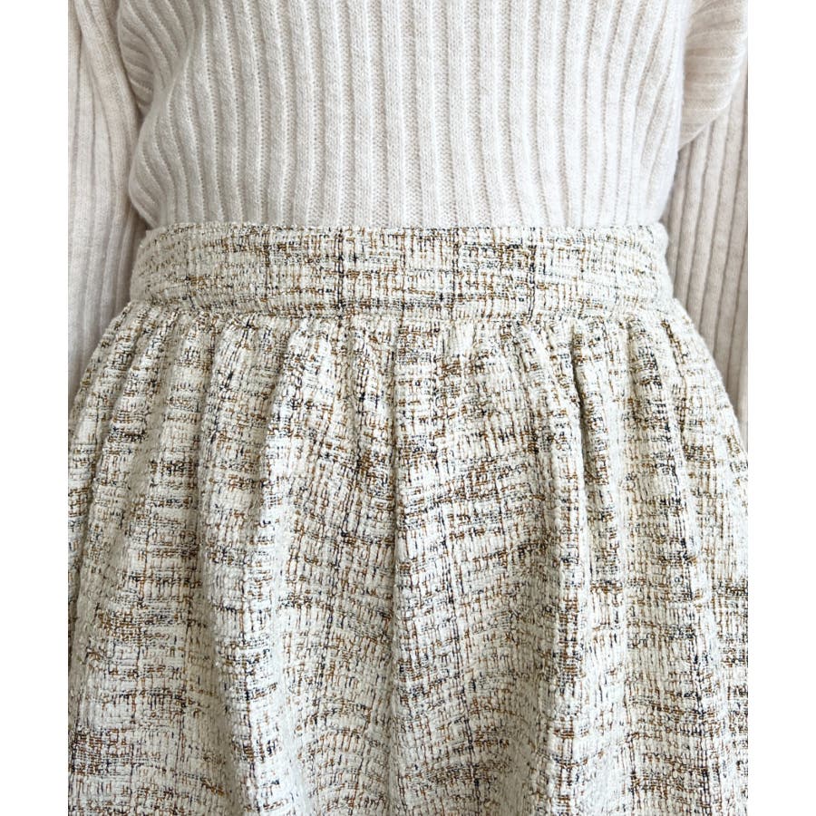 ・カラーツイード素材の立体感と色の組み合わせが華やかで、カジュアルからフェミニンまで幅広く着まわせる1着。
