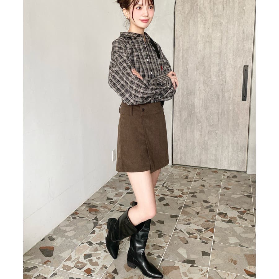 コーデュロイ素材の風合いがあるので、シンプルなニットを合わせるだけで季節感あるスタイリングが完成します♪