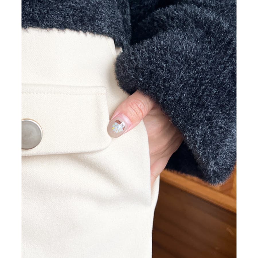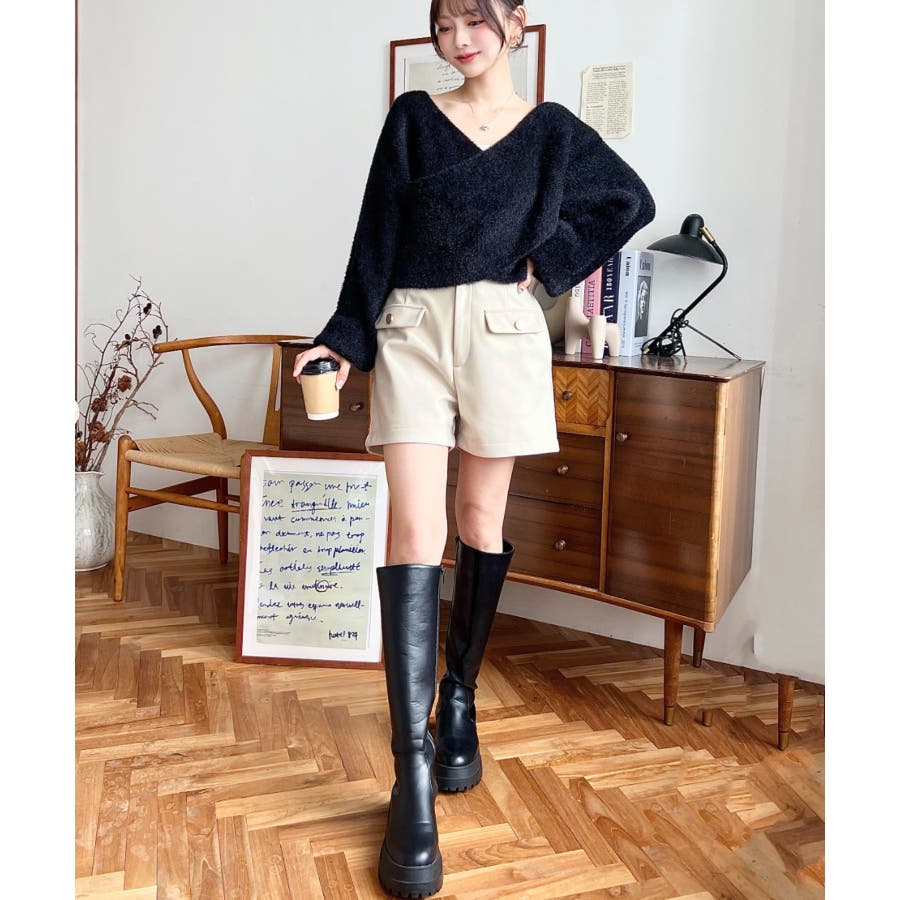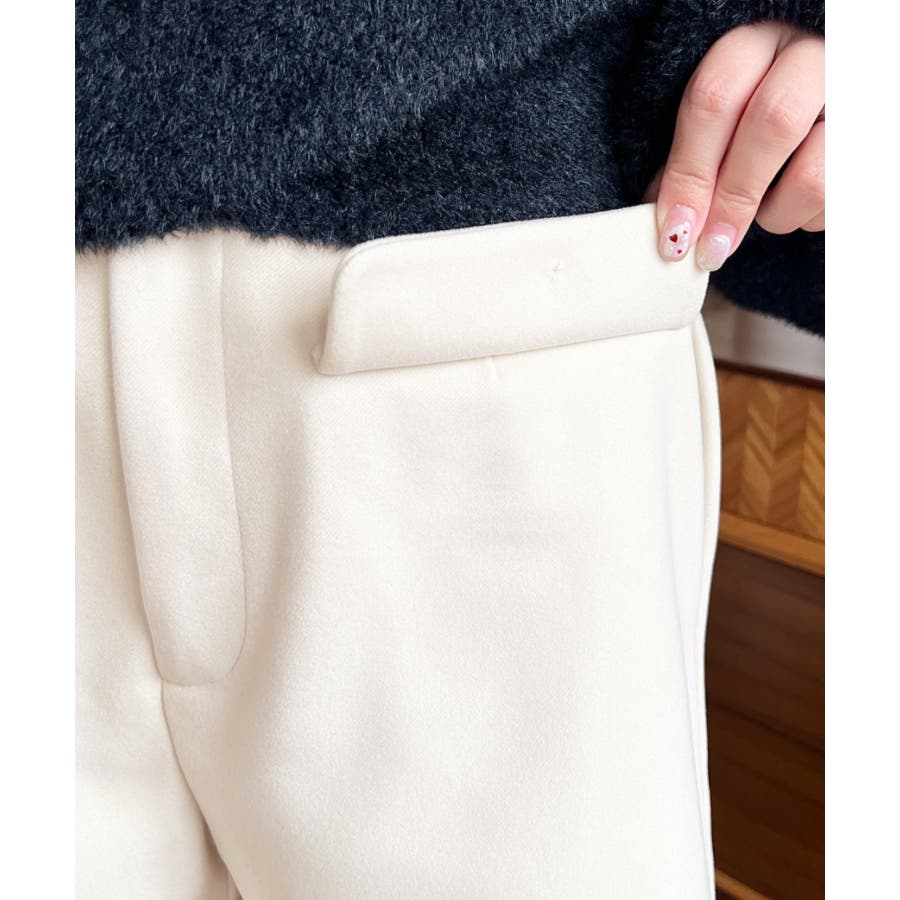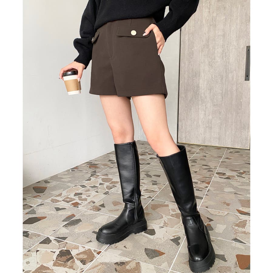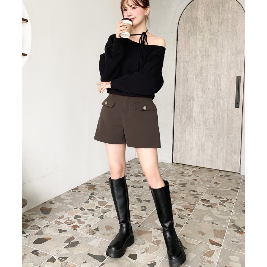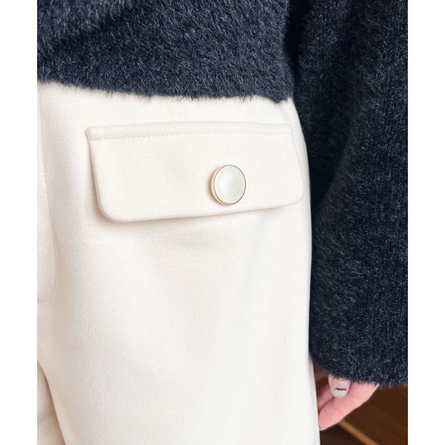 微起毛ウールライク金ボタンフラップショートパンツ