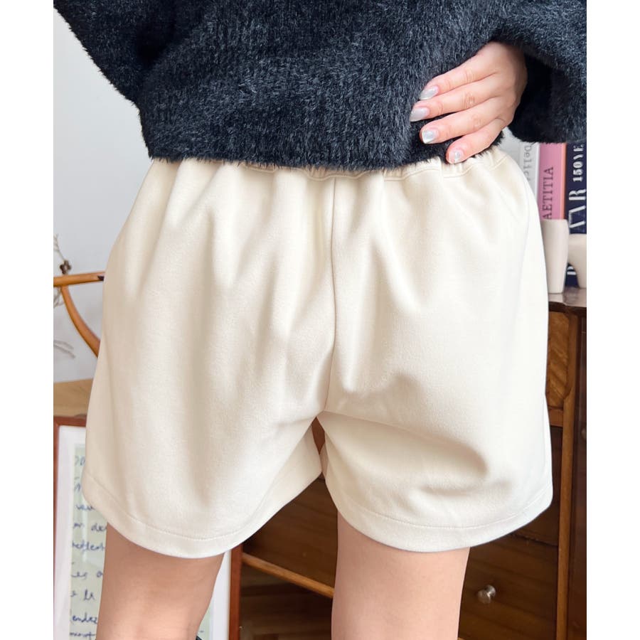 ・ウールライクな微起毛素材で仕立てたショートパンツ。