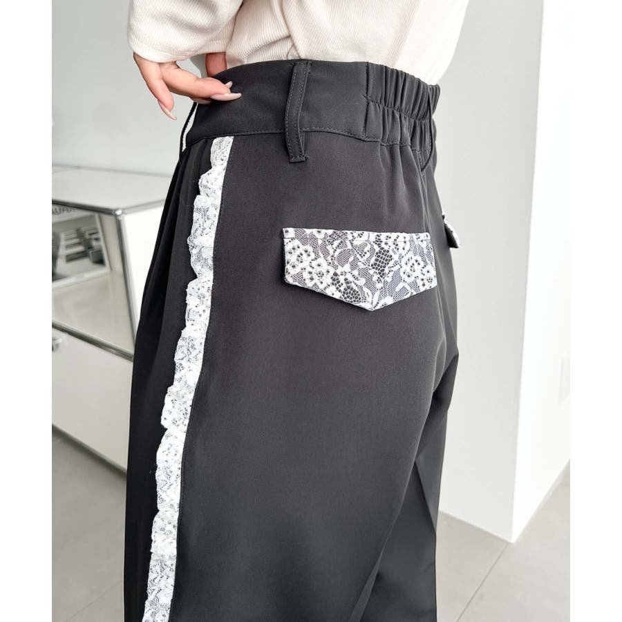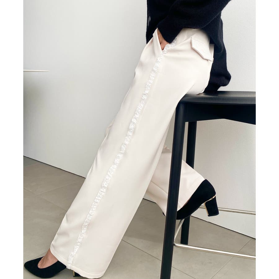 ・サイドにデザインされた繊細なレースが、スラックスのきちんと感に程よいフェミニンさをプラスしてくれるスラックス♪