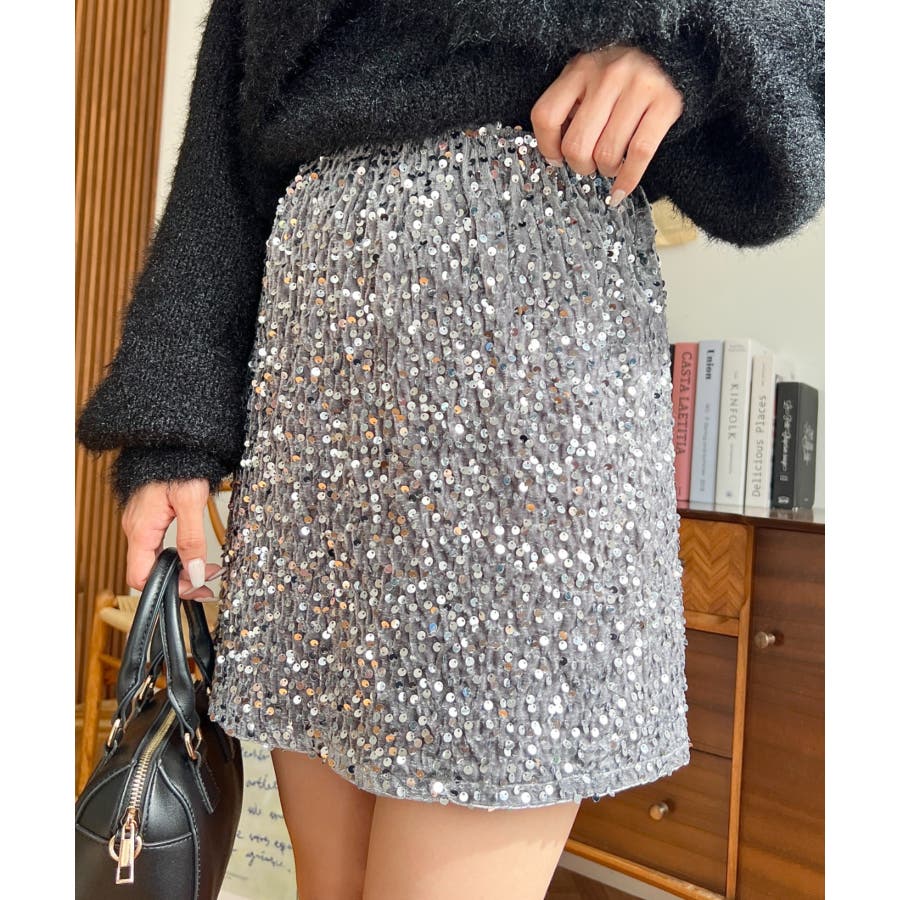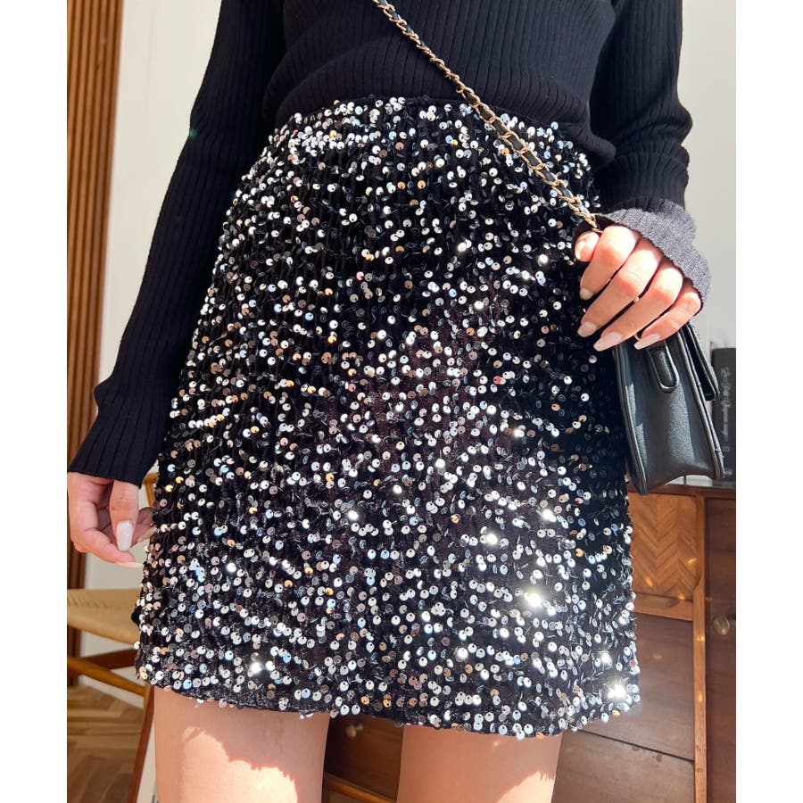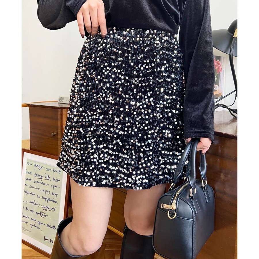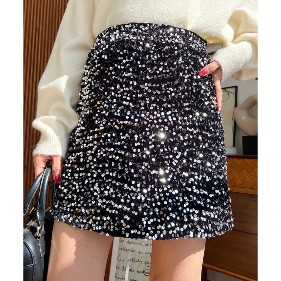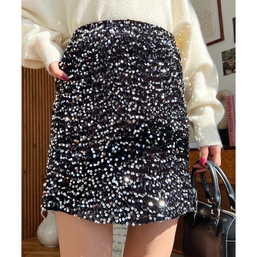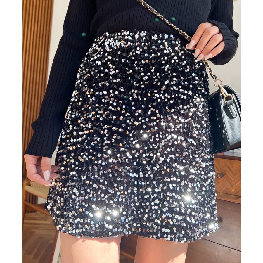・輝く存在感たっぷりのスパンコールを全面にあしらったミニ丈スカート!