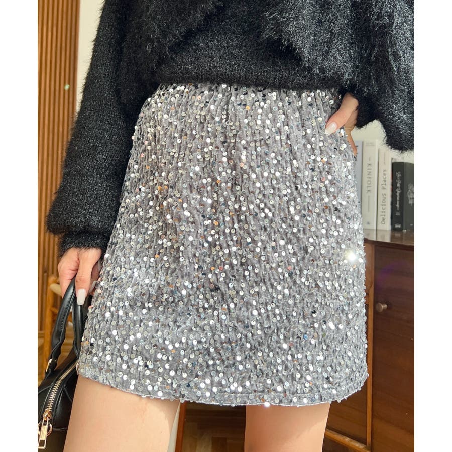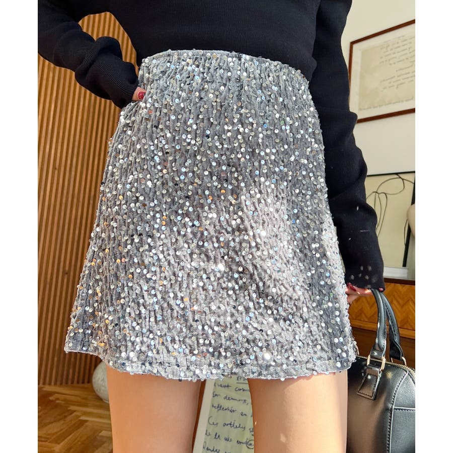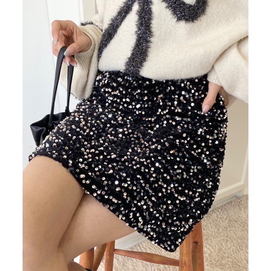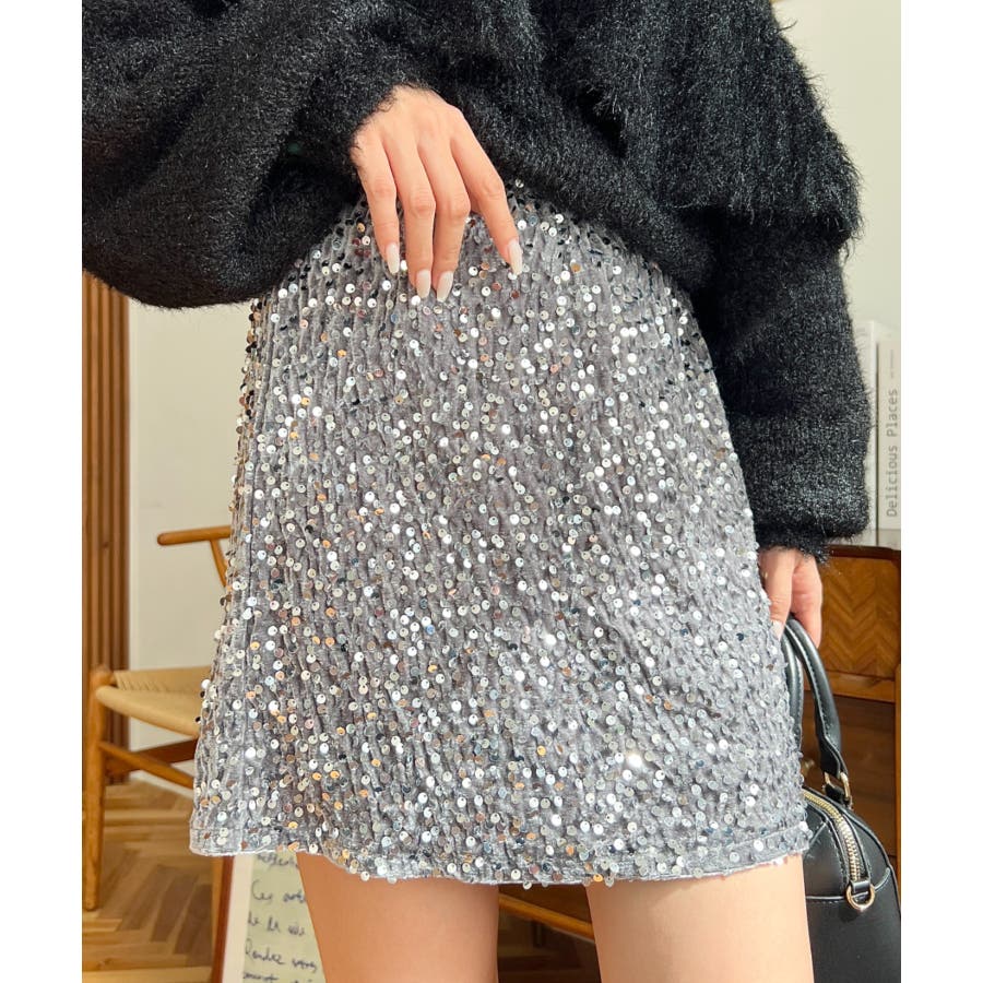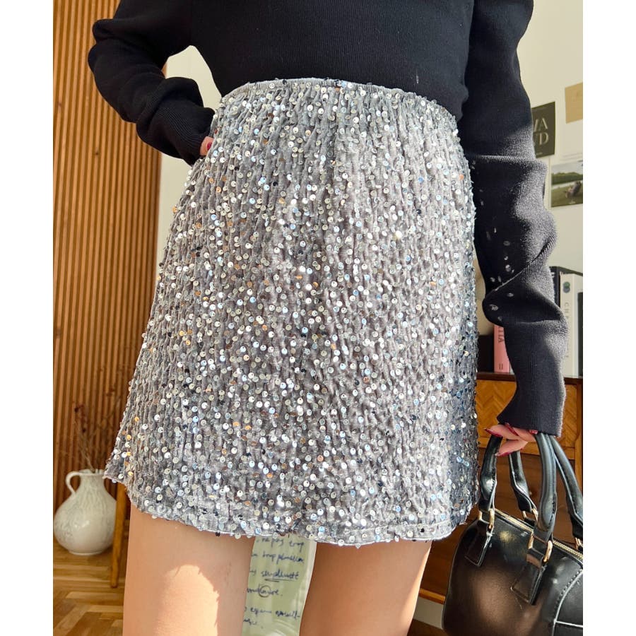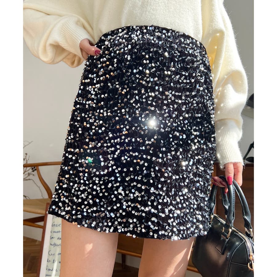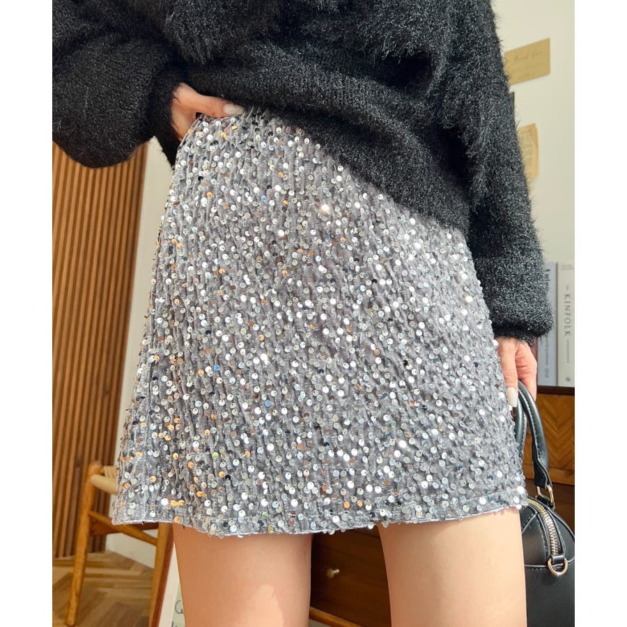 ・輝く存在感たっぷりのスパンコールを全面にあしらったミニ丈スカート!