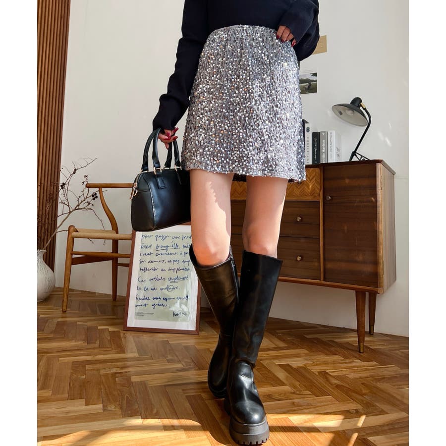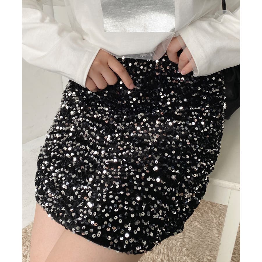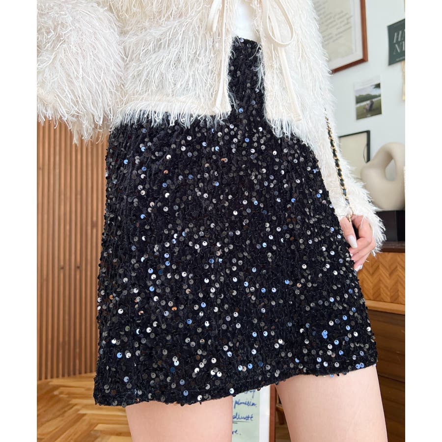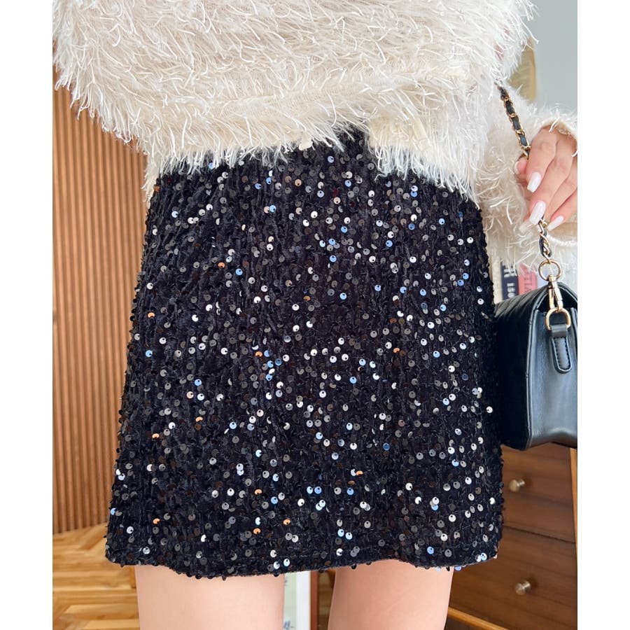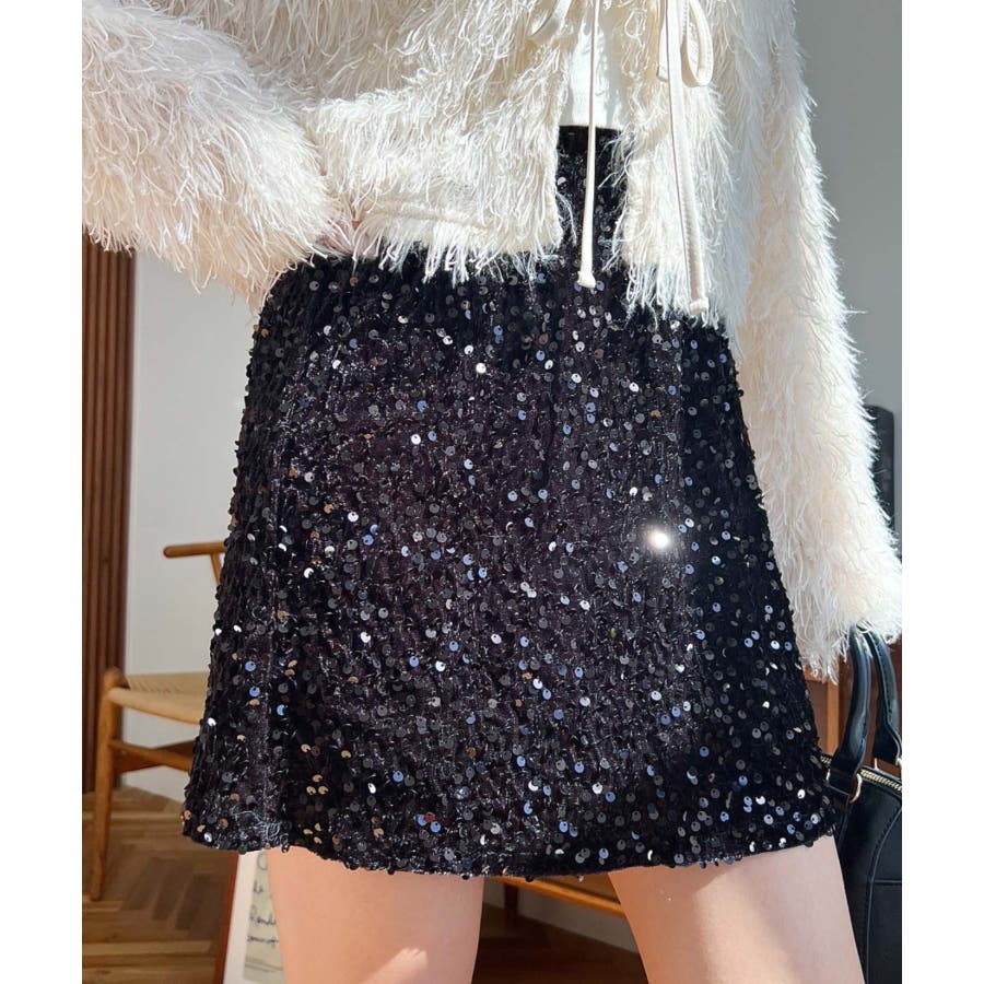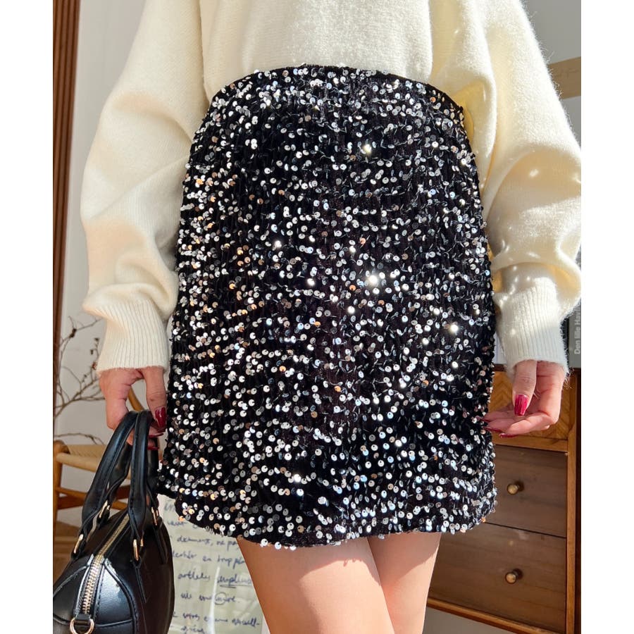 ・輝く存在感たっぷりのスパンコールを全面にあしらったミニ丈スカート!