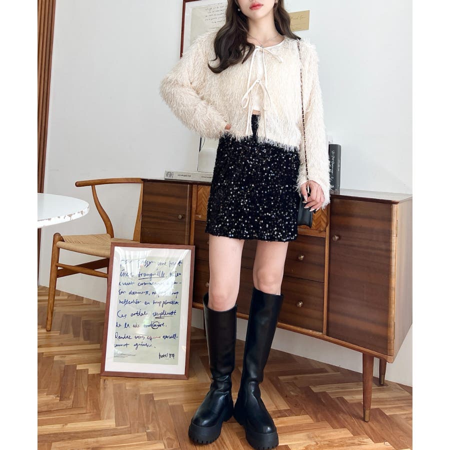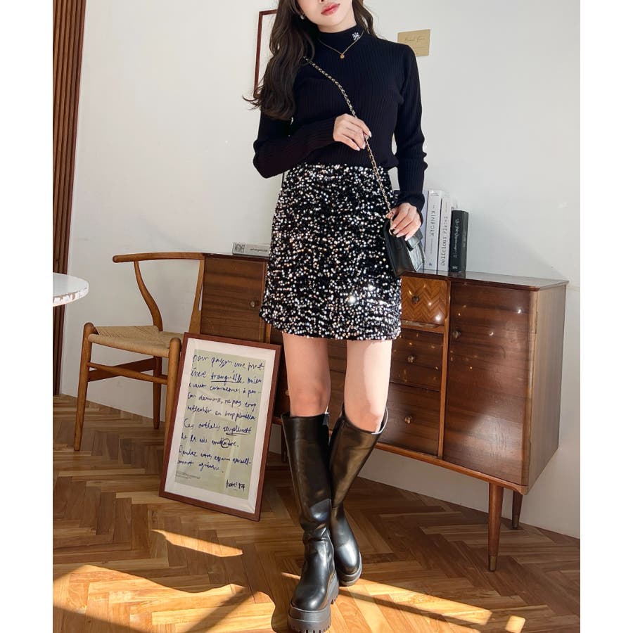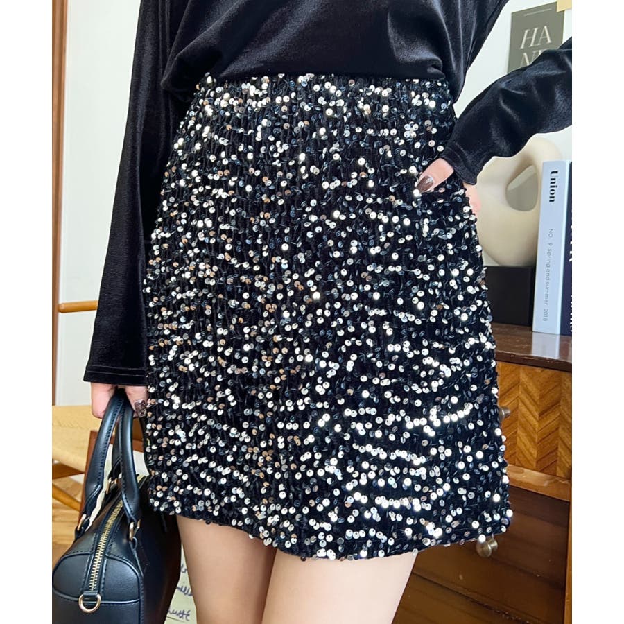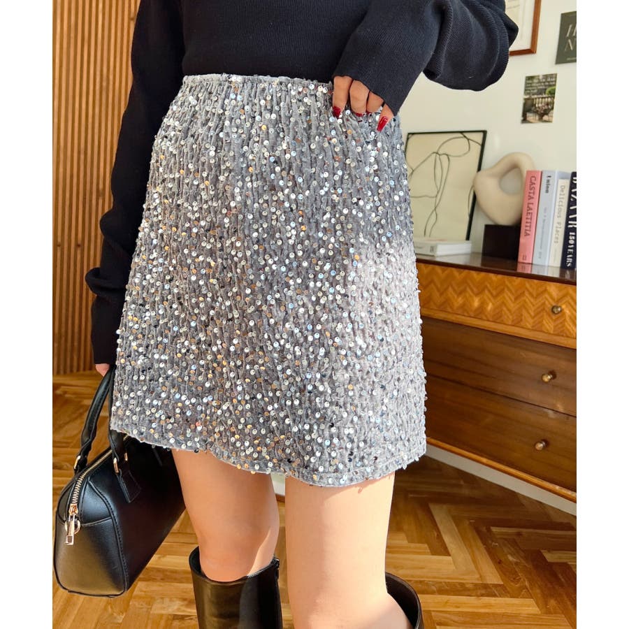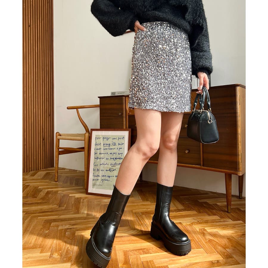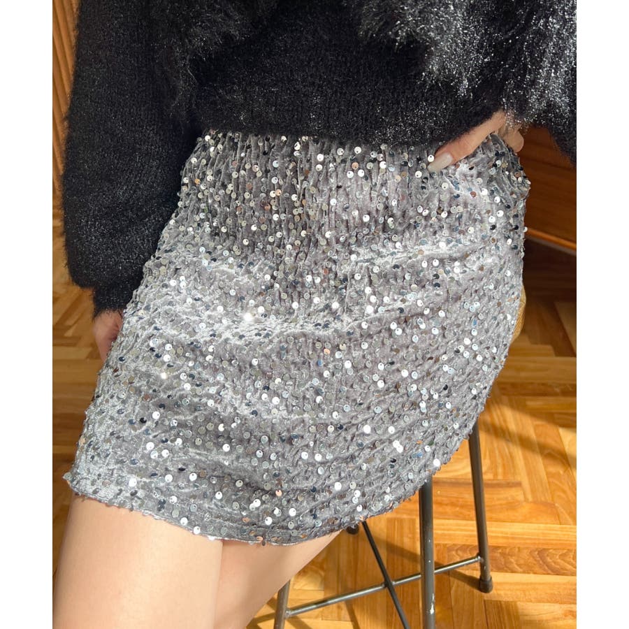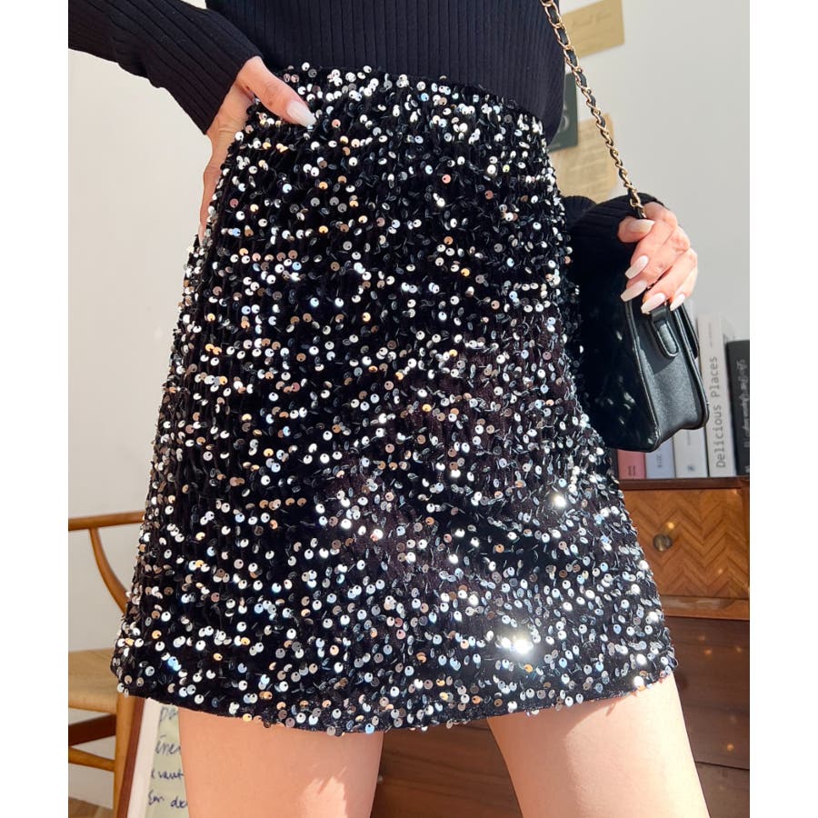 ・輝く存在感たっぷりのスパンコールを全面にあしらったミニ丈スカート!