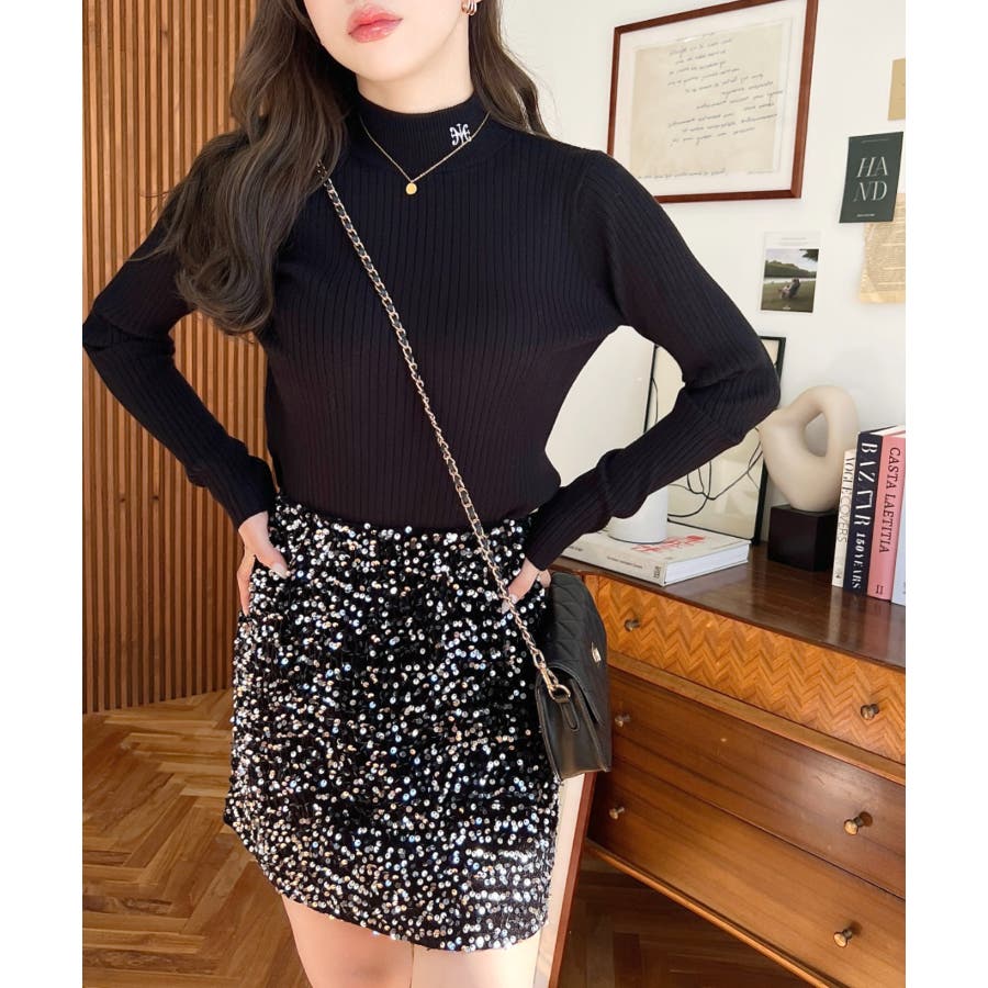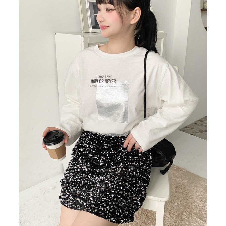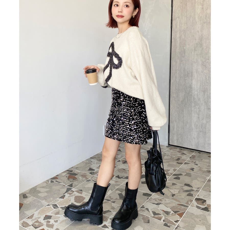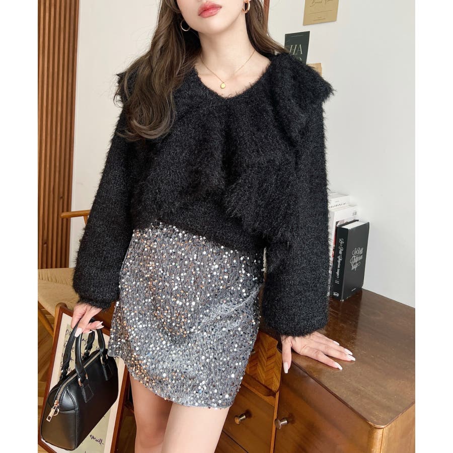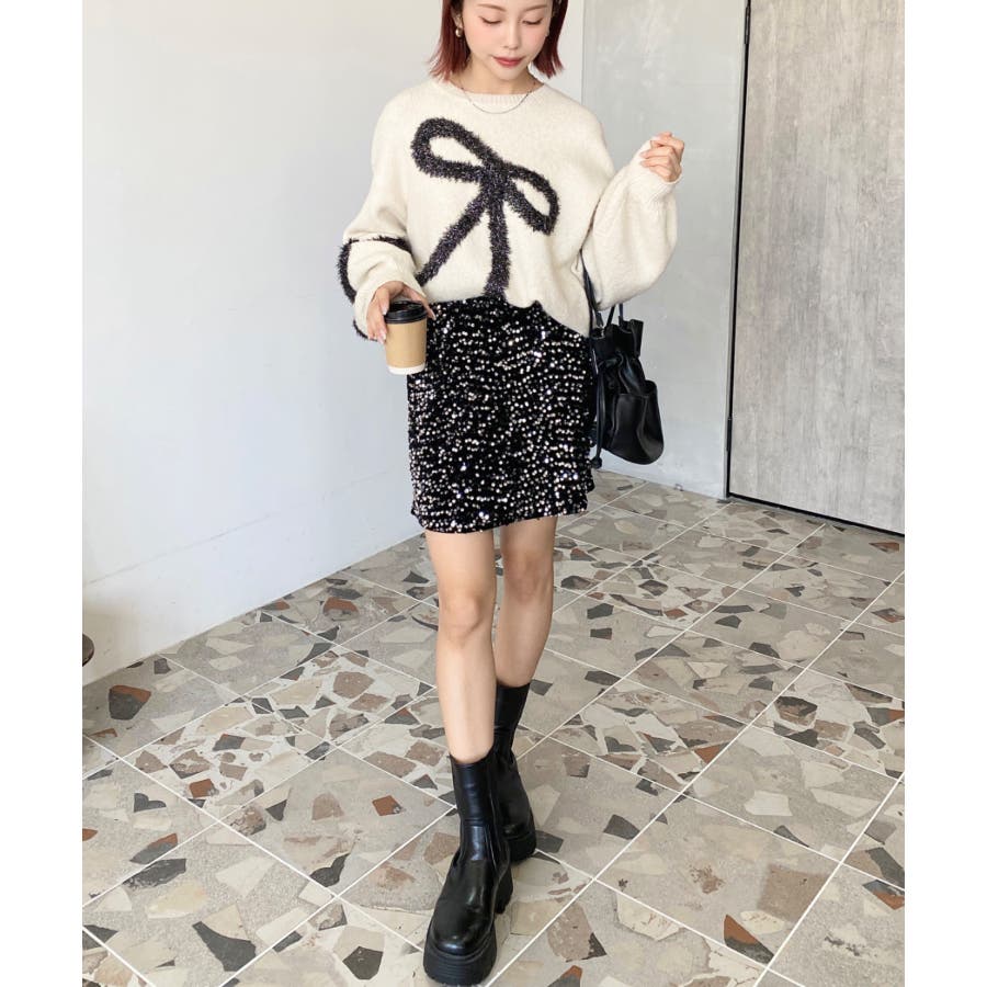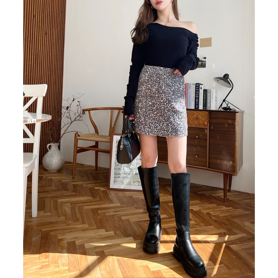 ・輝く存在感たっぷりのスパンコールを全面にあしらったミニ丈スカート!