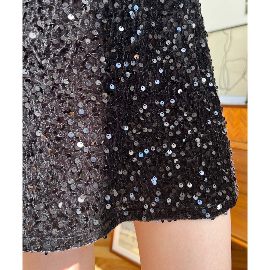 【存在感抜群のスパンコール◎モード感溢れるベロアミニスカートが登場!】