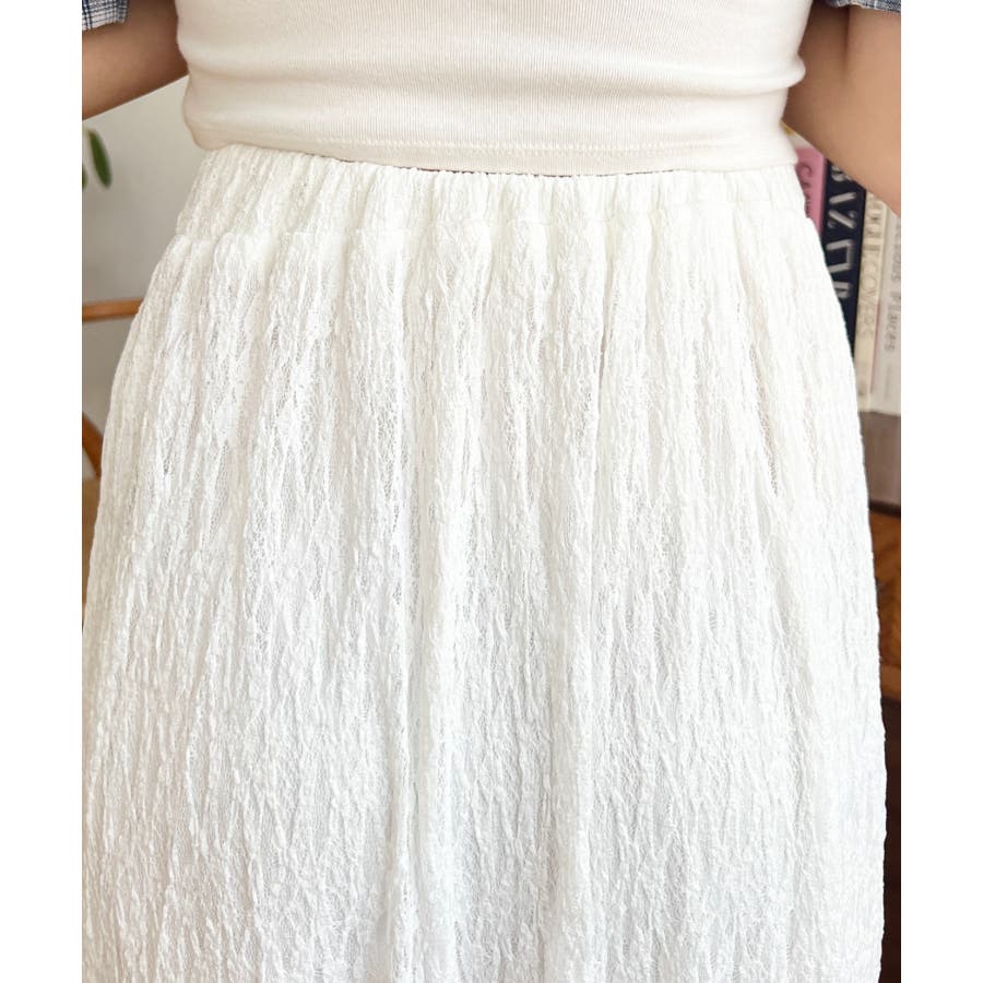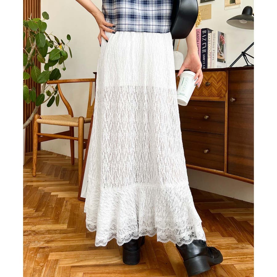 ・たっぷりボリュームのスカートで脚をすっきり見せながら、レースの透け感がコーデを軽やかに魅せてくれる1枚。