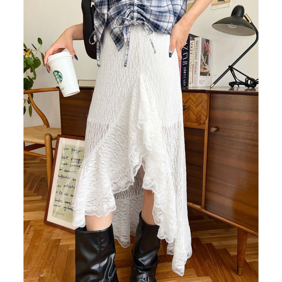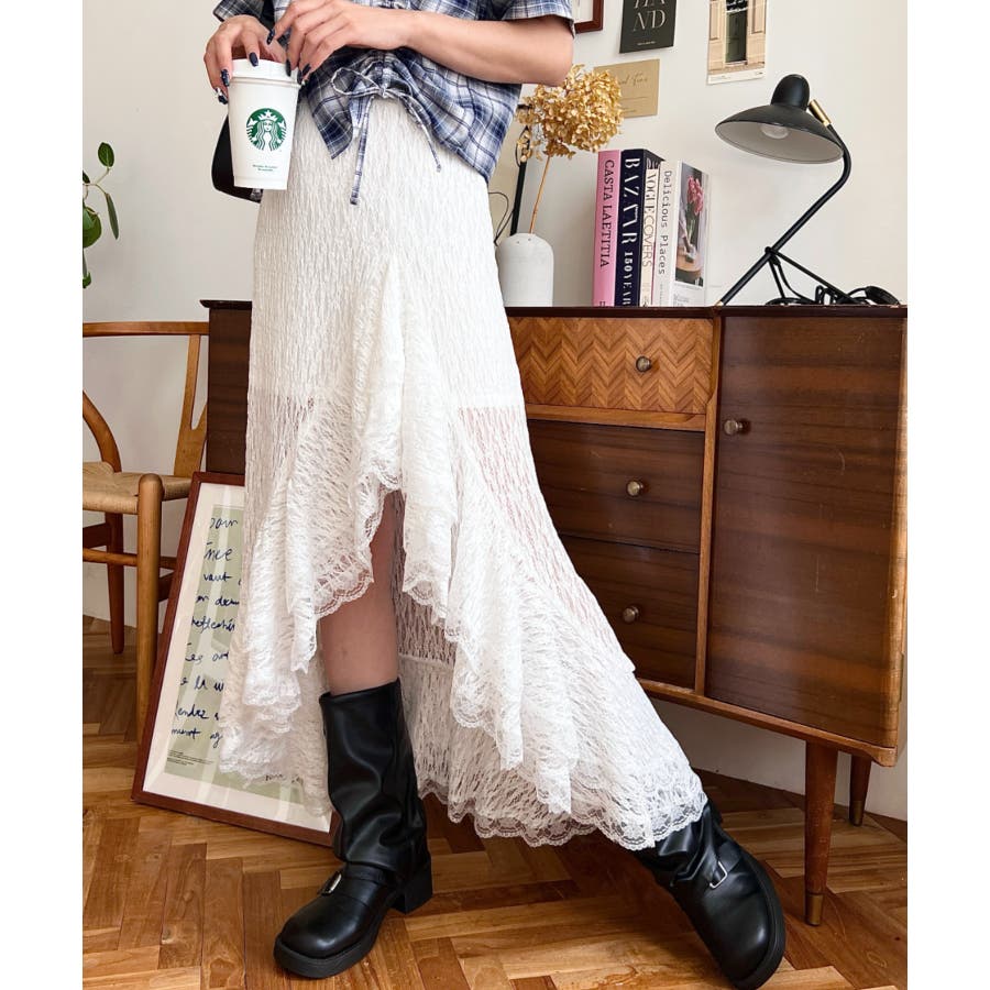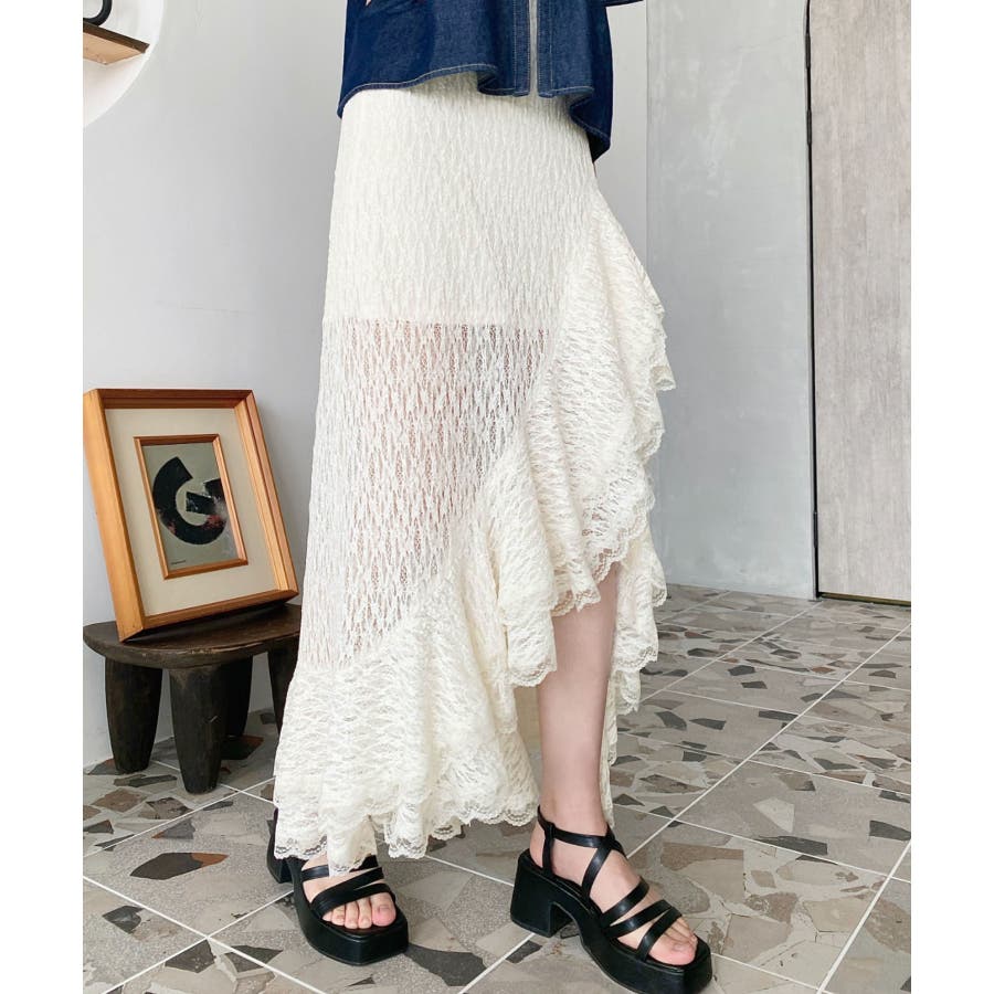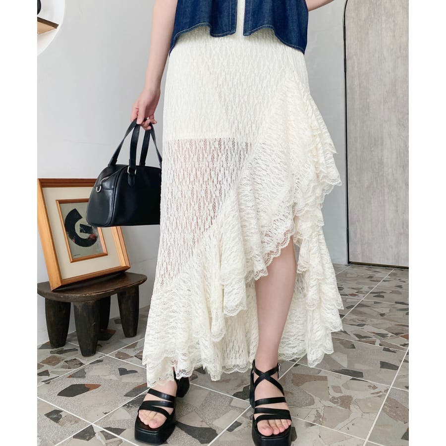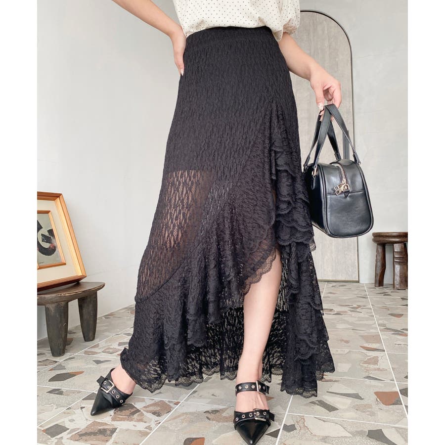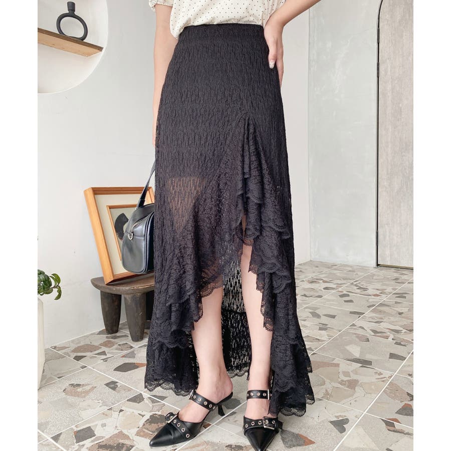 【アシメスリットとフリルデザインが上品で、トレンドコーデにぴったりなレーススカートが登場♪】