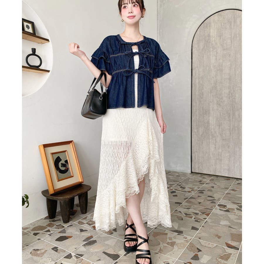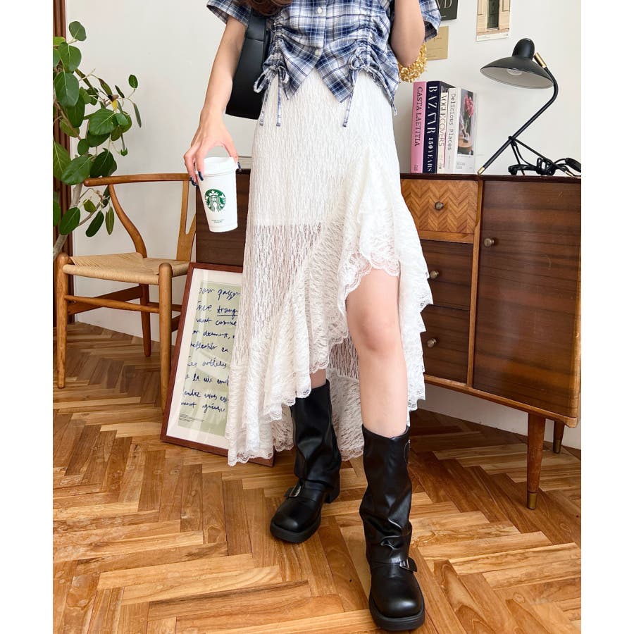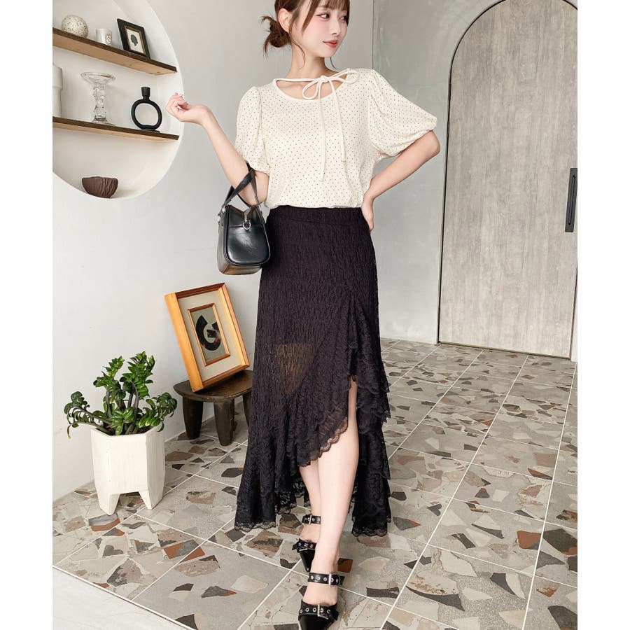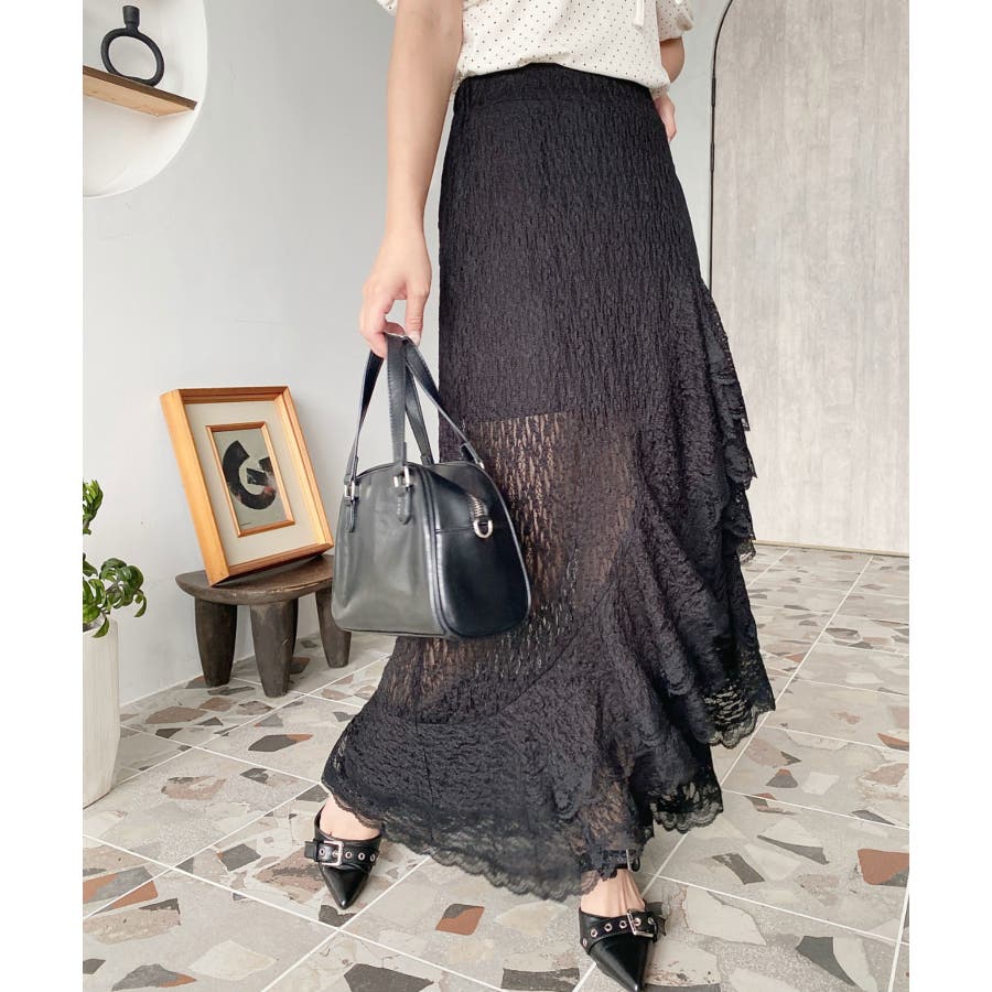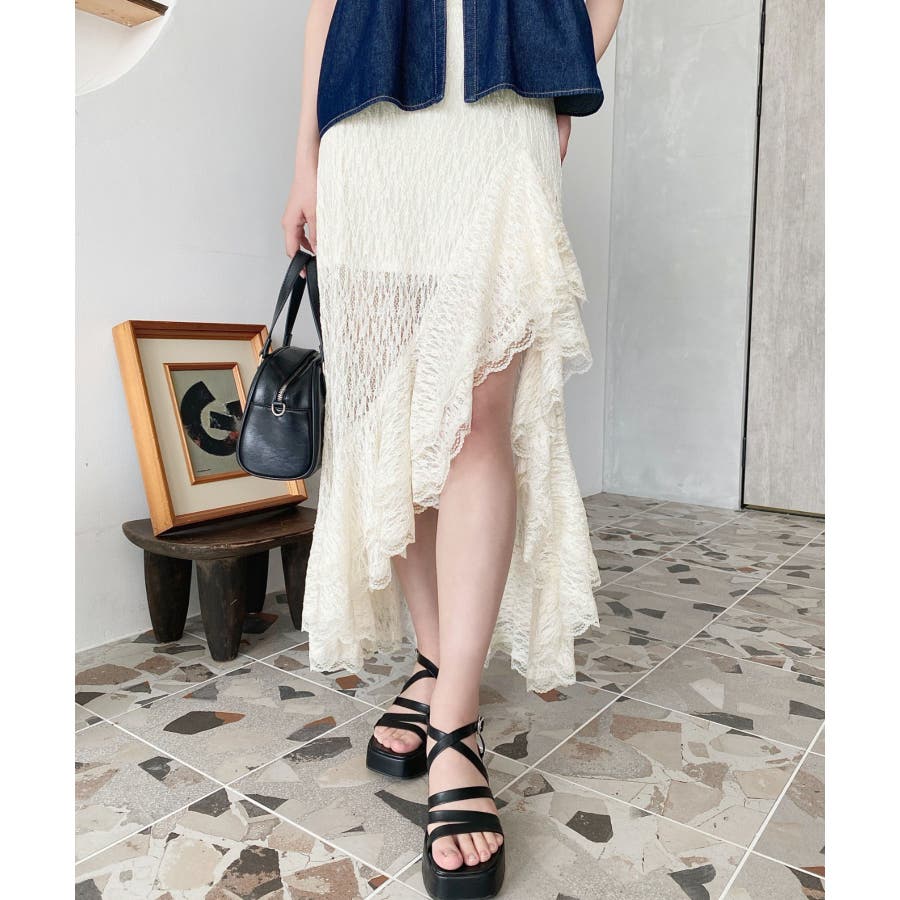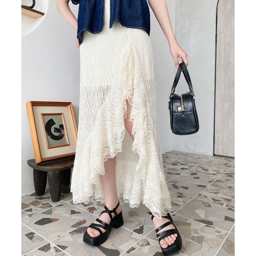 【アシメスリットとフリルデザインが上品で、トレンドコーデにぴったりなレーススカートが登場♪】
