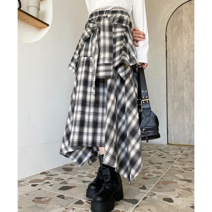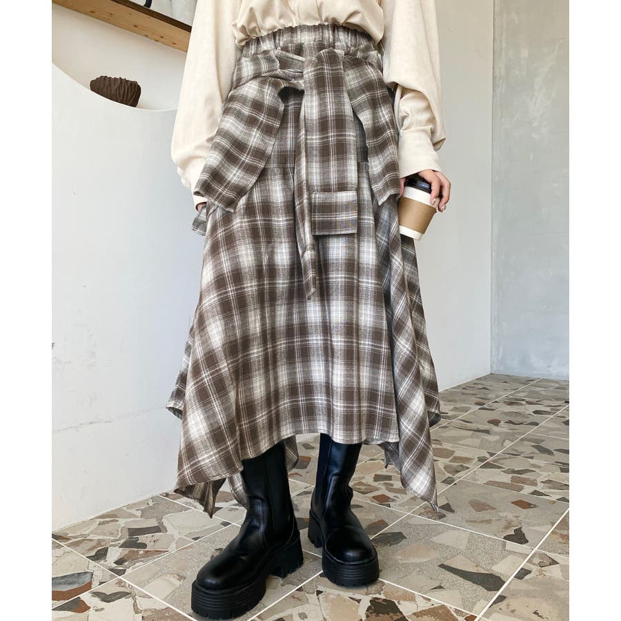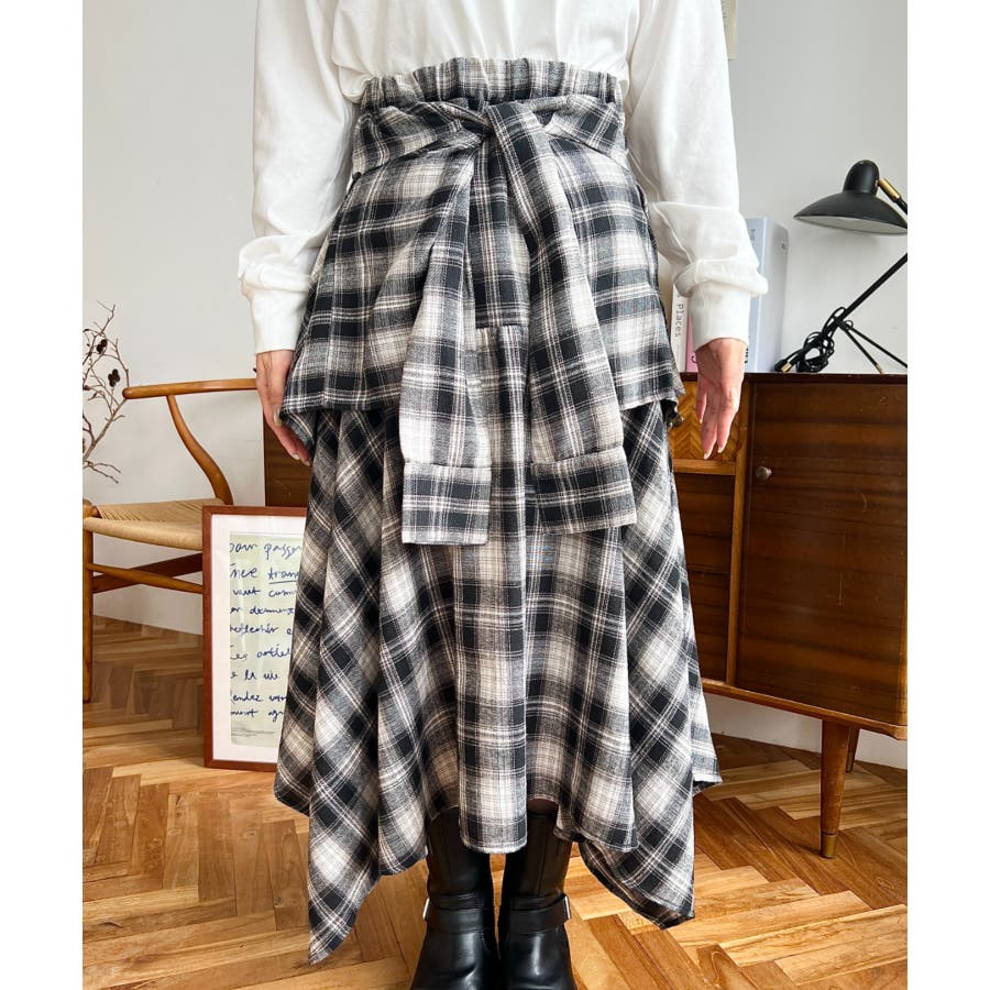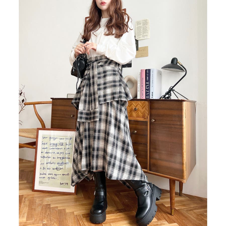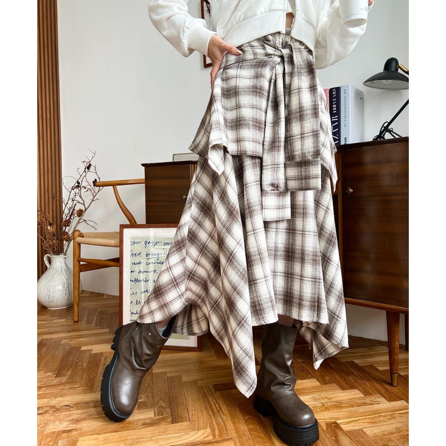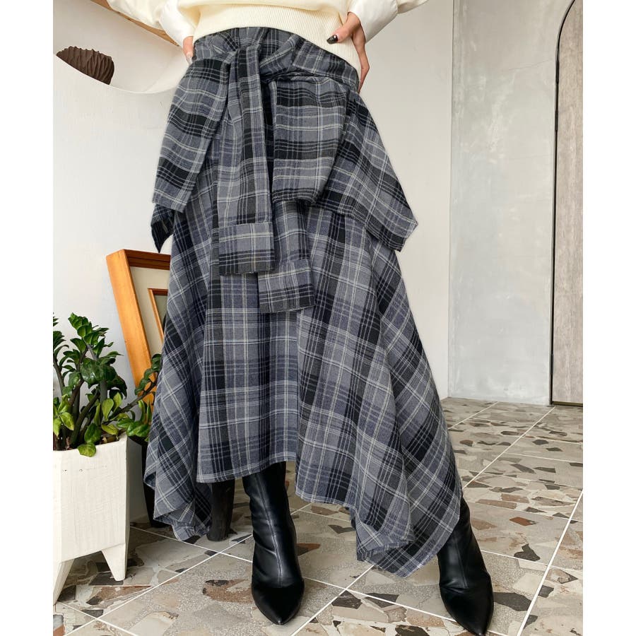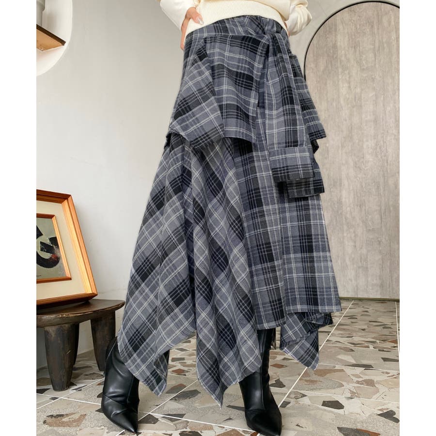 【ラップ風デザインとイレギュラーヘムの動きがこなれ感たっぷりなチェックスカートが仲間入り♪】