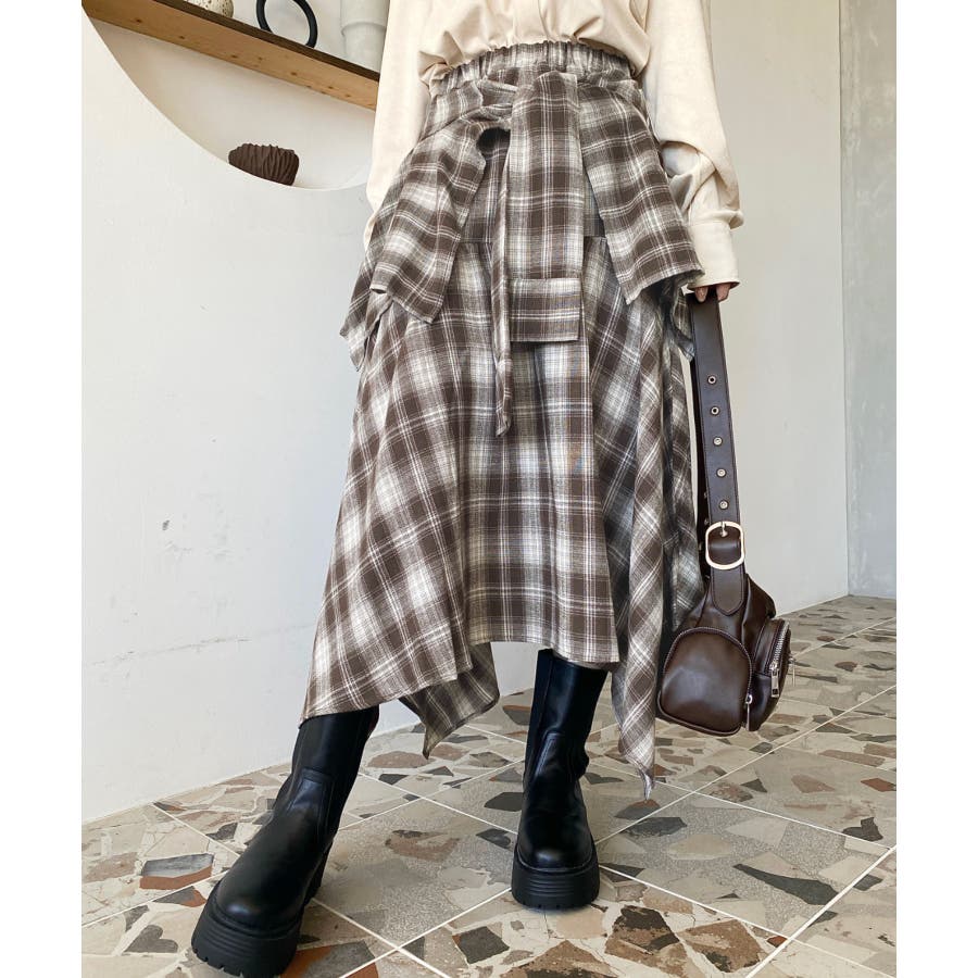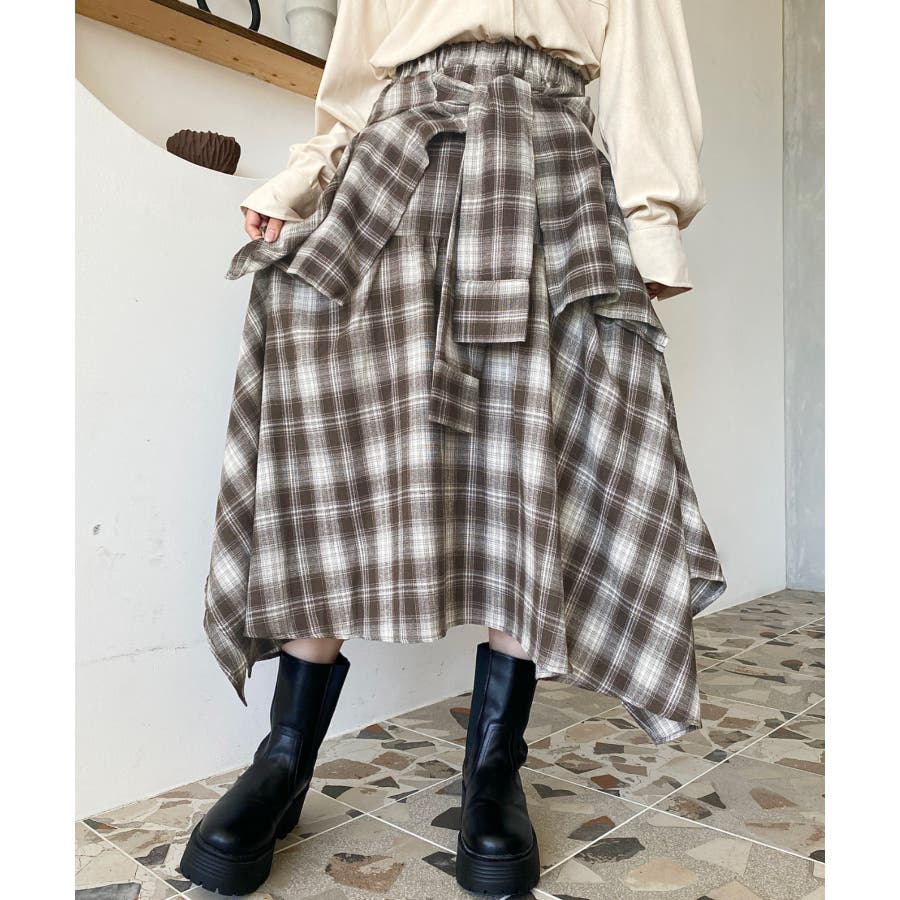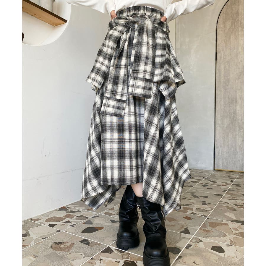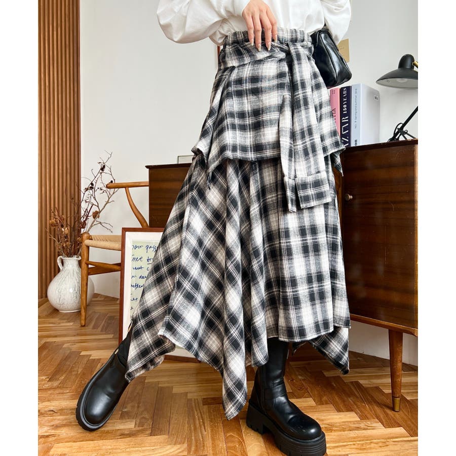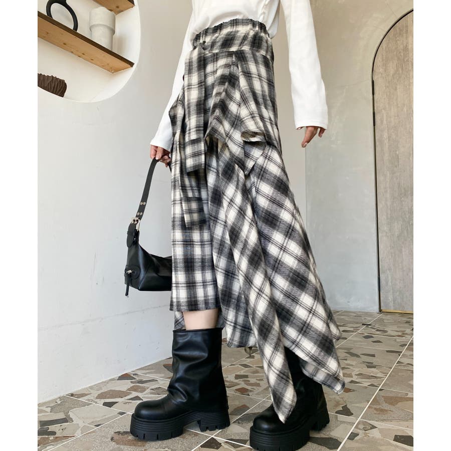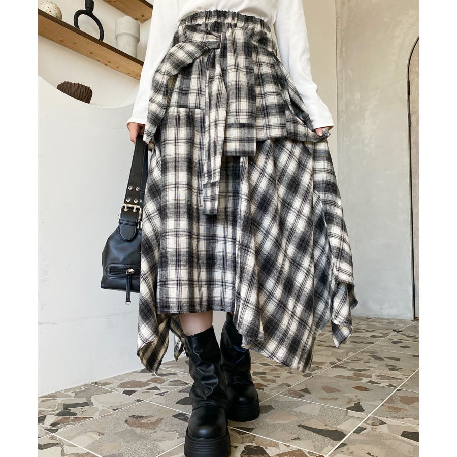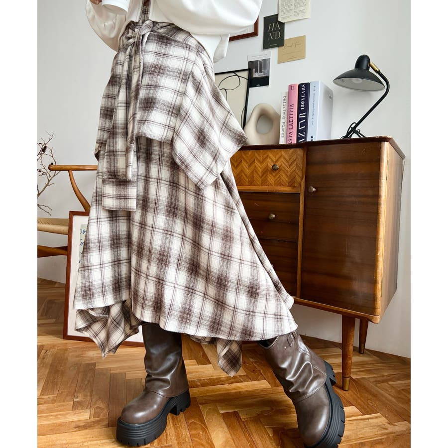 【ラップ風デザインとイレギュラーヘムの動きがこなれ感たっぷりなチェックスカートが仲間入り♪】