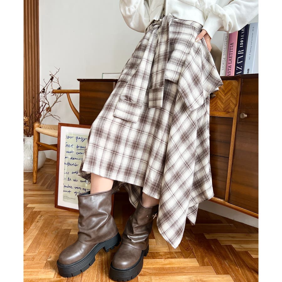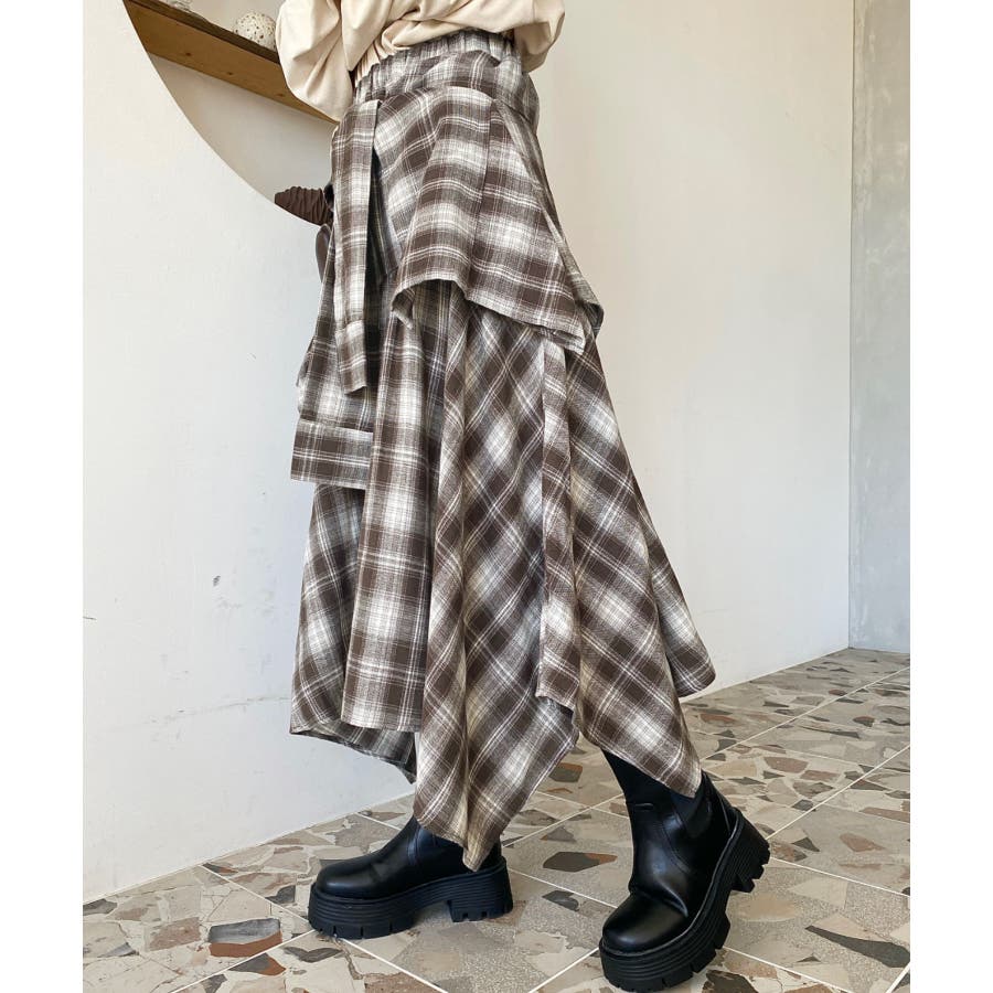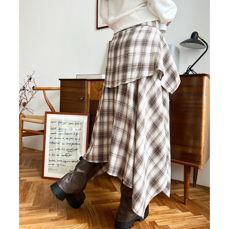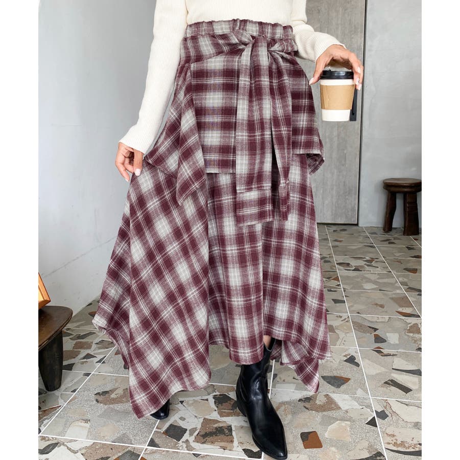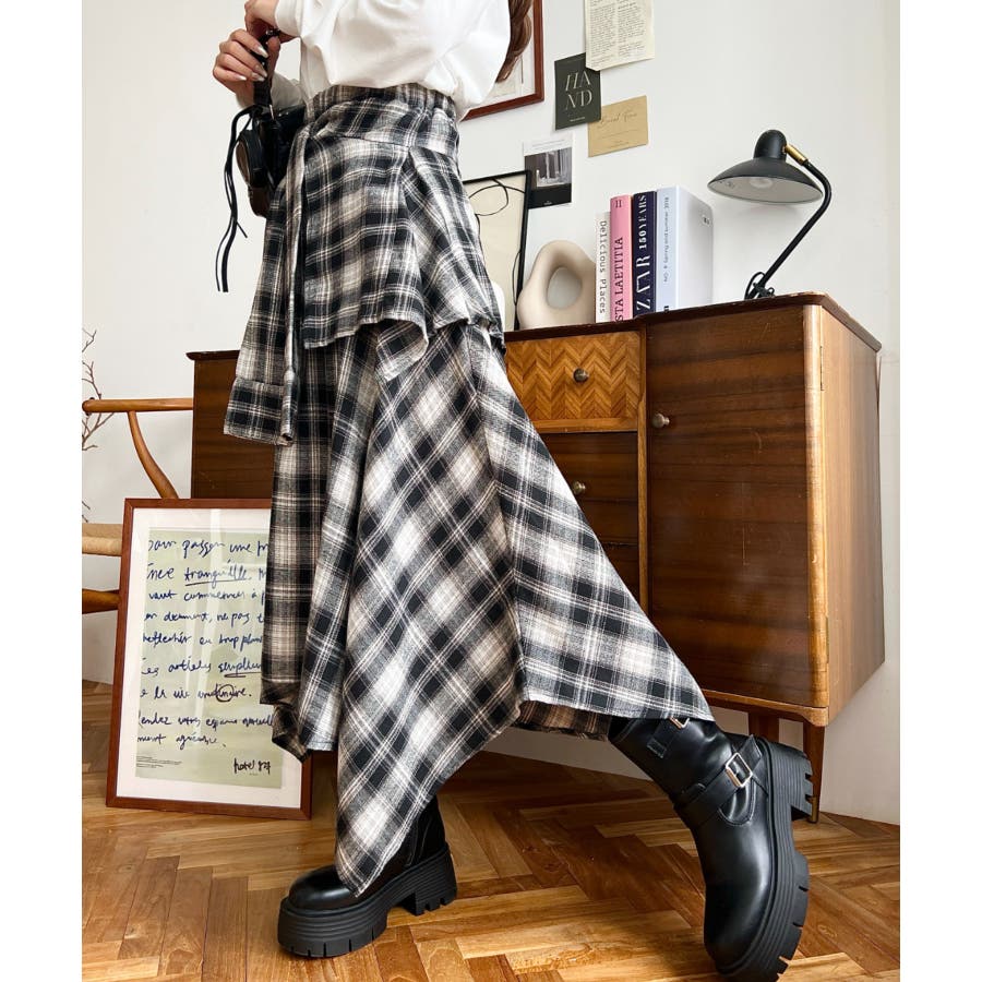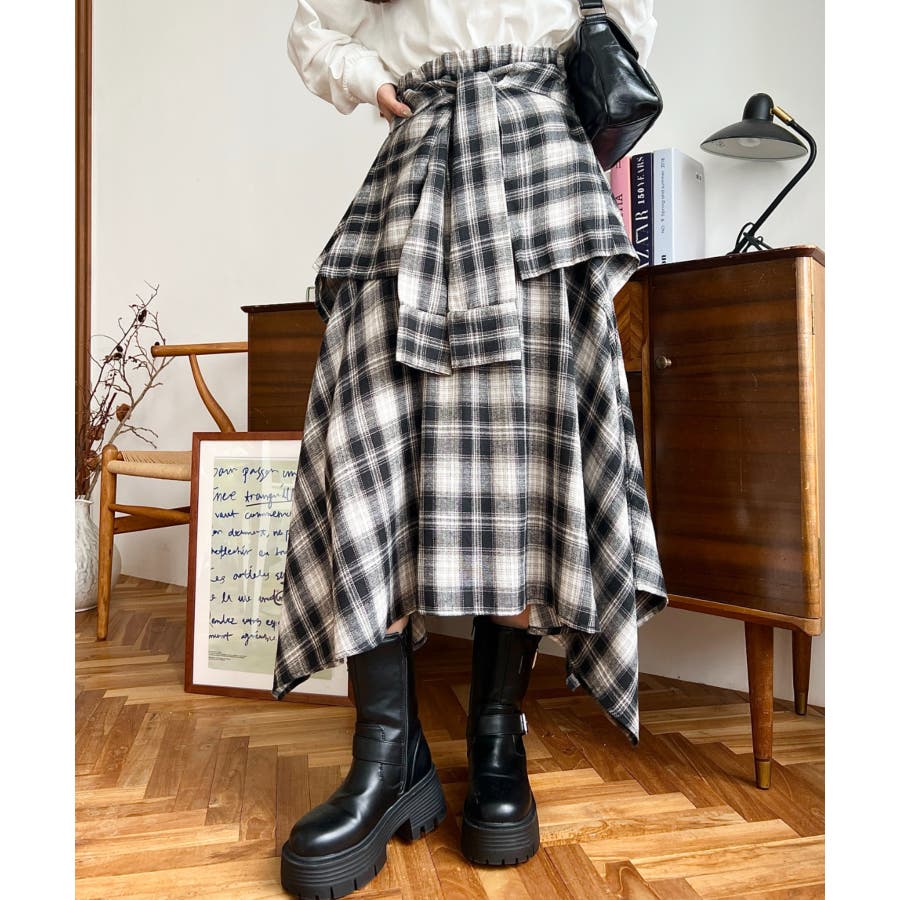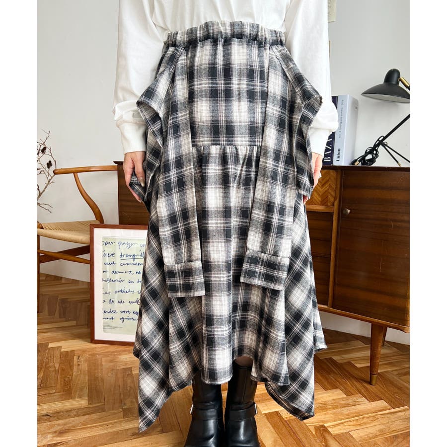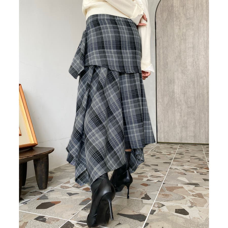 【ラップ風デザインとイレギュラーヘムの動きがこなれ感たっぷりなチェックスカートが仲間入り♪】