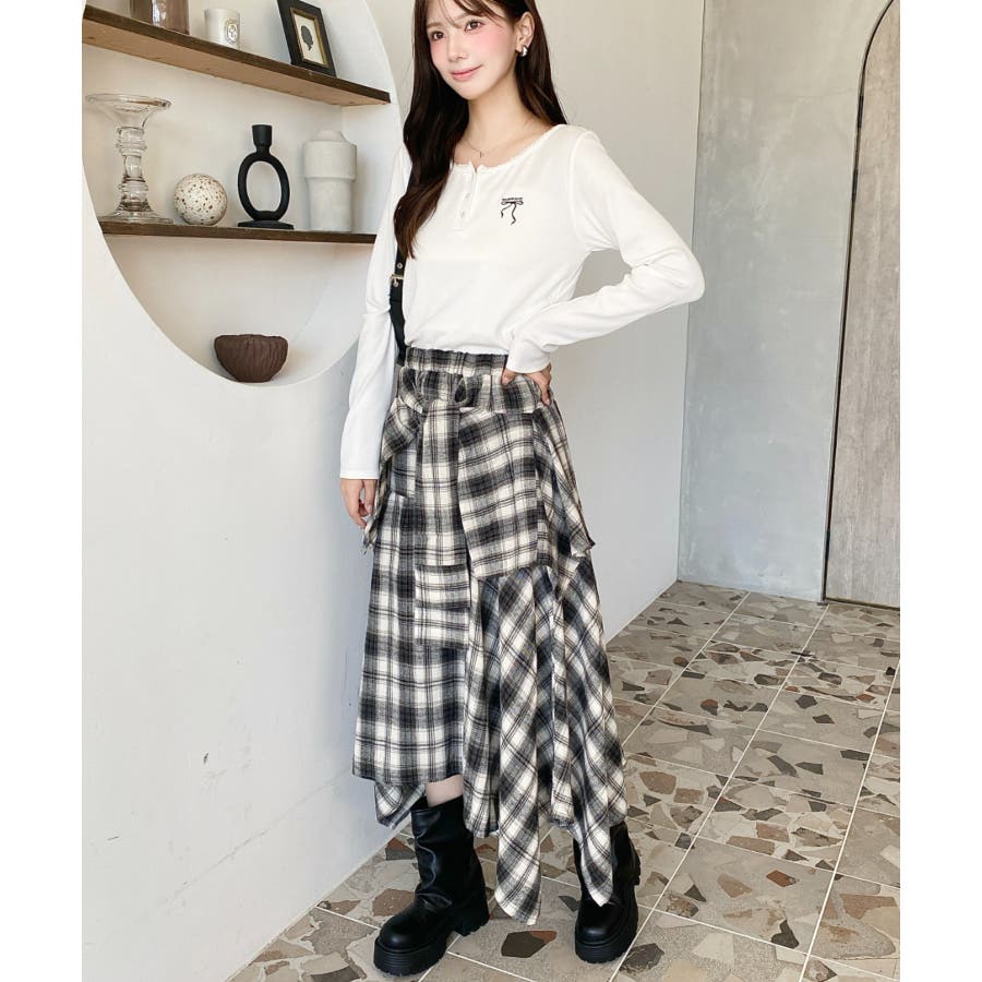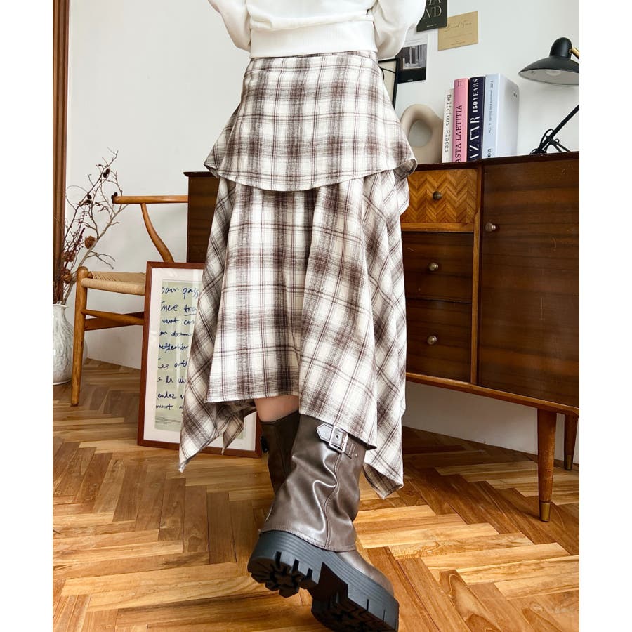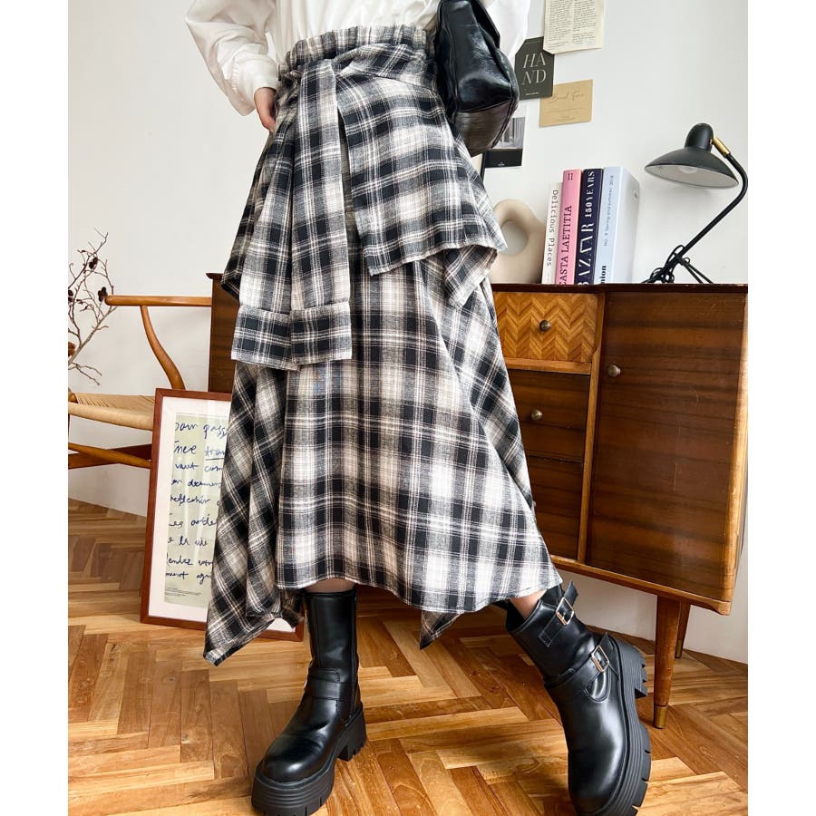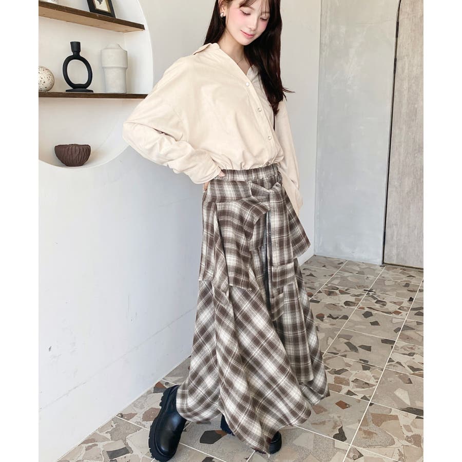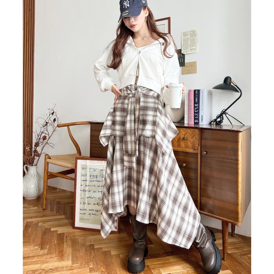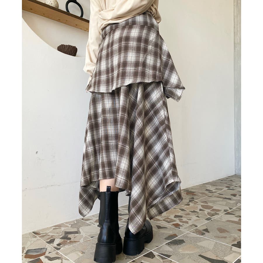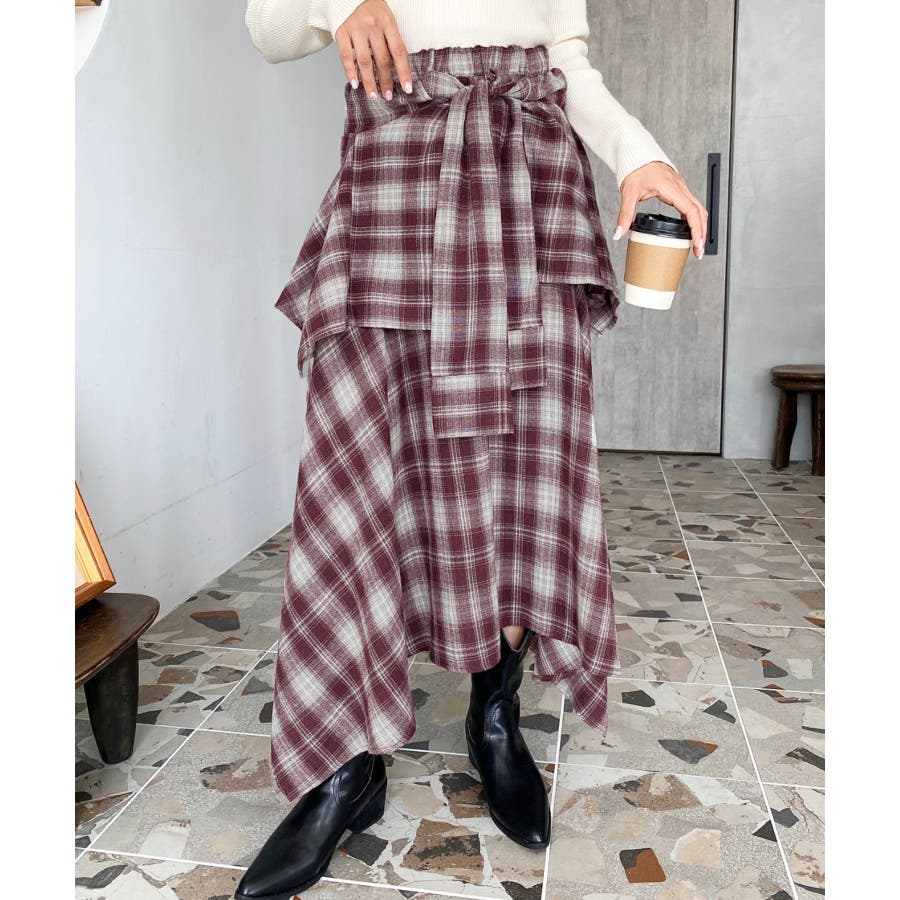 【ラップ風デザインとイレギュラーヘムの動きがこなれ感たっぷりなチェックスカートが仲間入り♪】