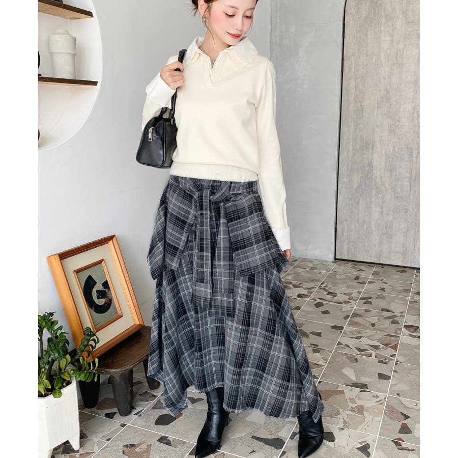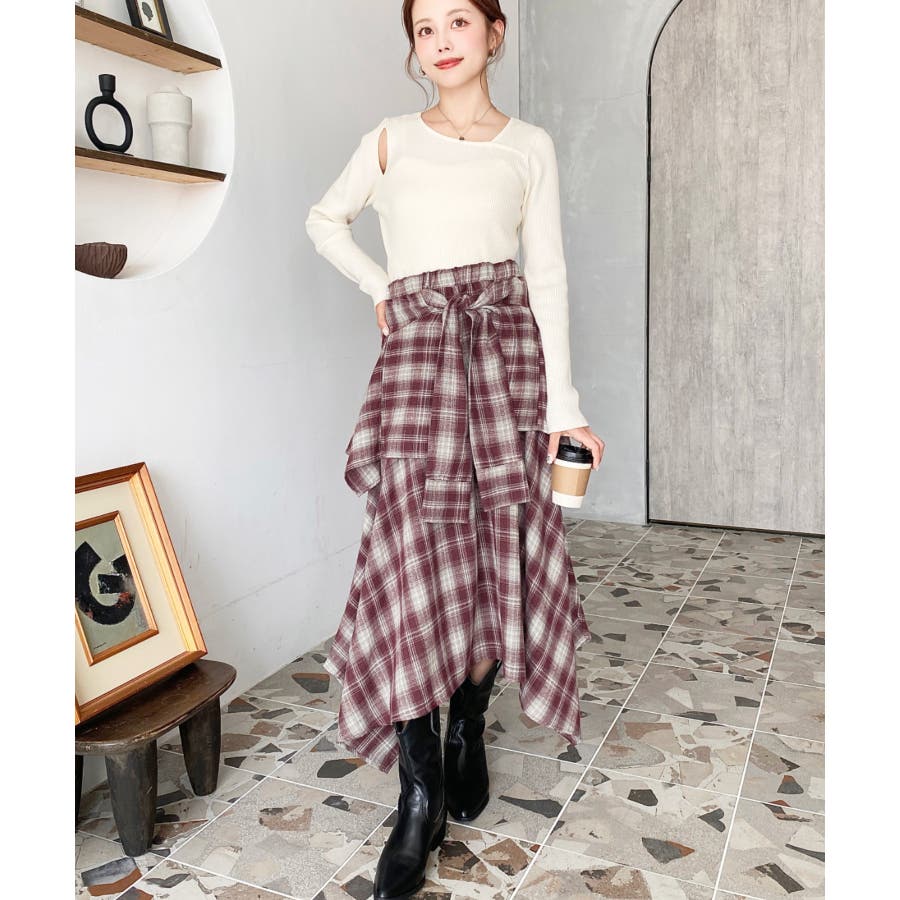・リボンディテールがアクセントになり、ウエストマーク効果でスタイルアップし秋冬ムード漂うチェック柄がクラシカルで可愛いラップ風スカートです♪