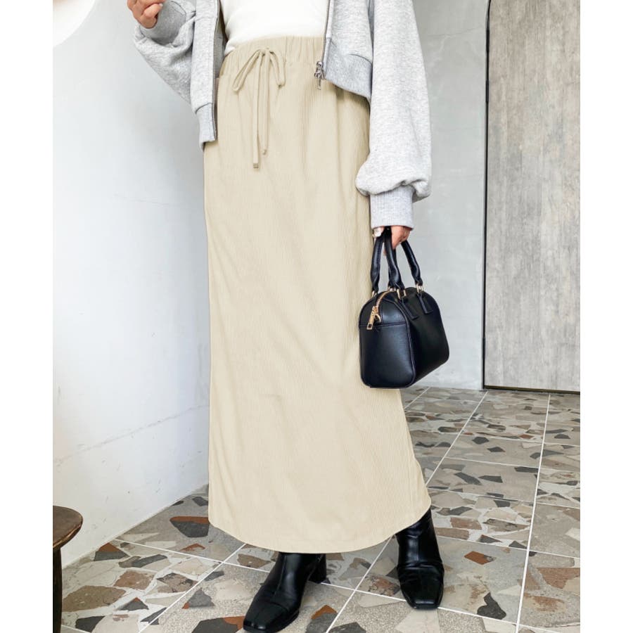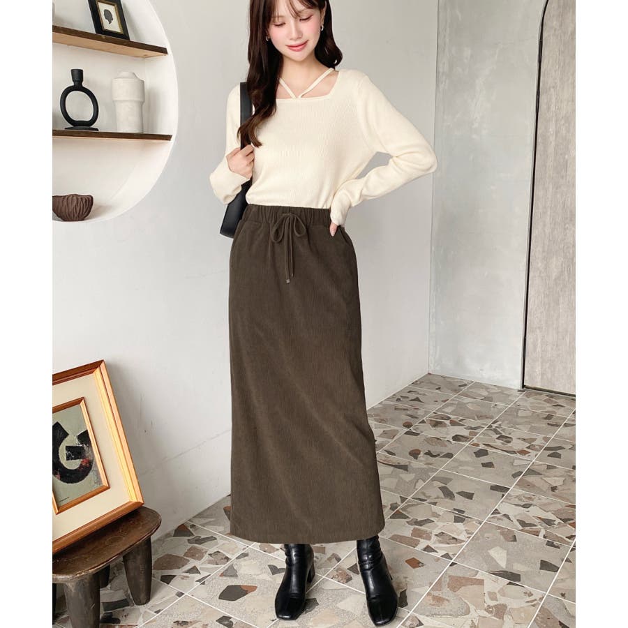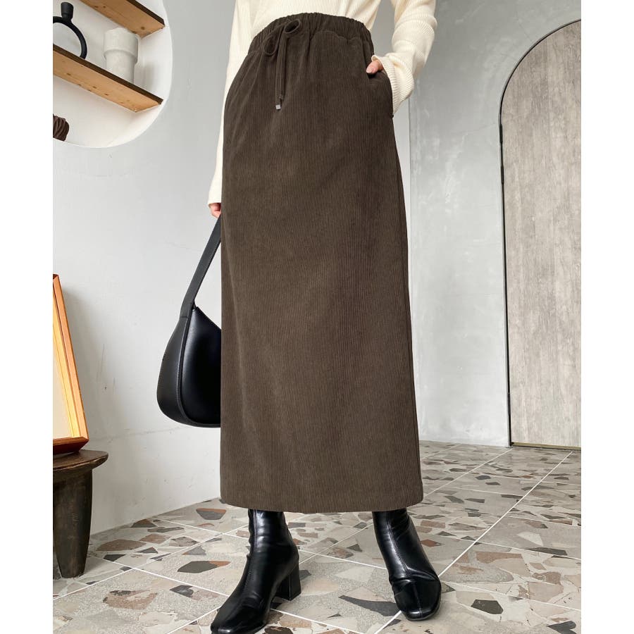 【秋冬コーデの主役に!ドロストデザインがワンポイントな大人タイトスカート】