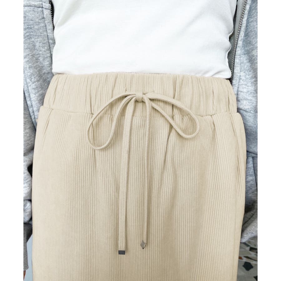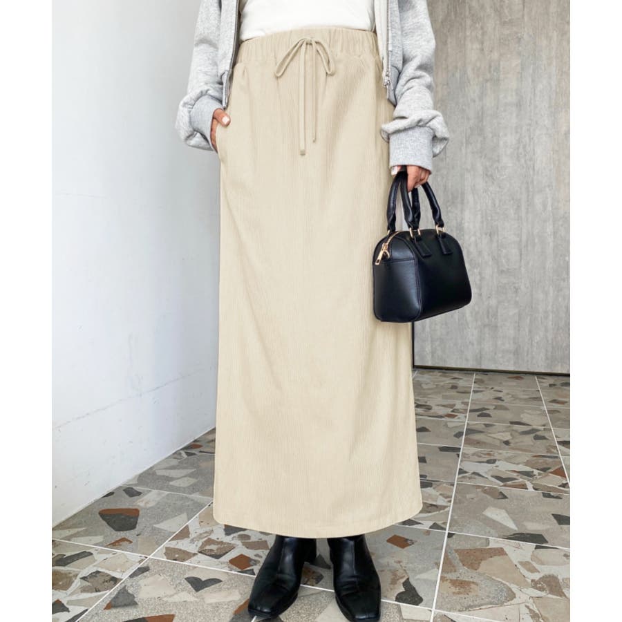 ・シンプルながらもウエストのドロストディテールがアクセントになったタイトスカート。