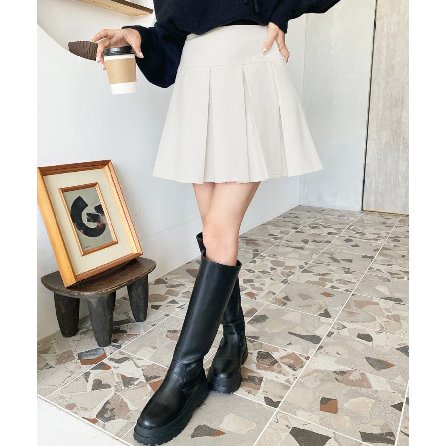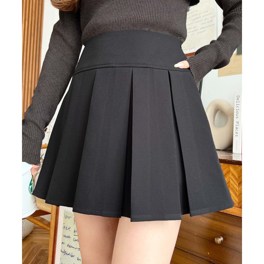 ・ワイドプリーツデザインがポイントのミニスカパン。歩くたびにふんわり揺れ、女性らしい動きを演出◎