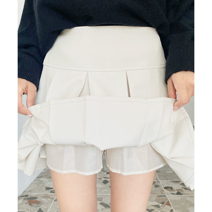 厚手TPUカットジョーゼットワイドプリーツミニスカパン