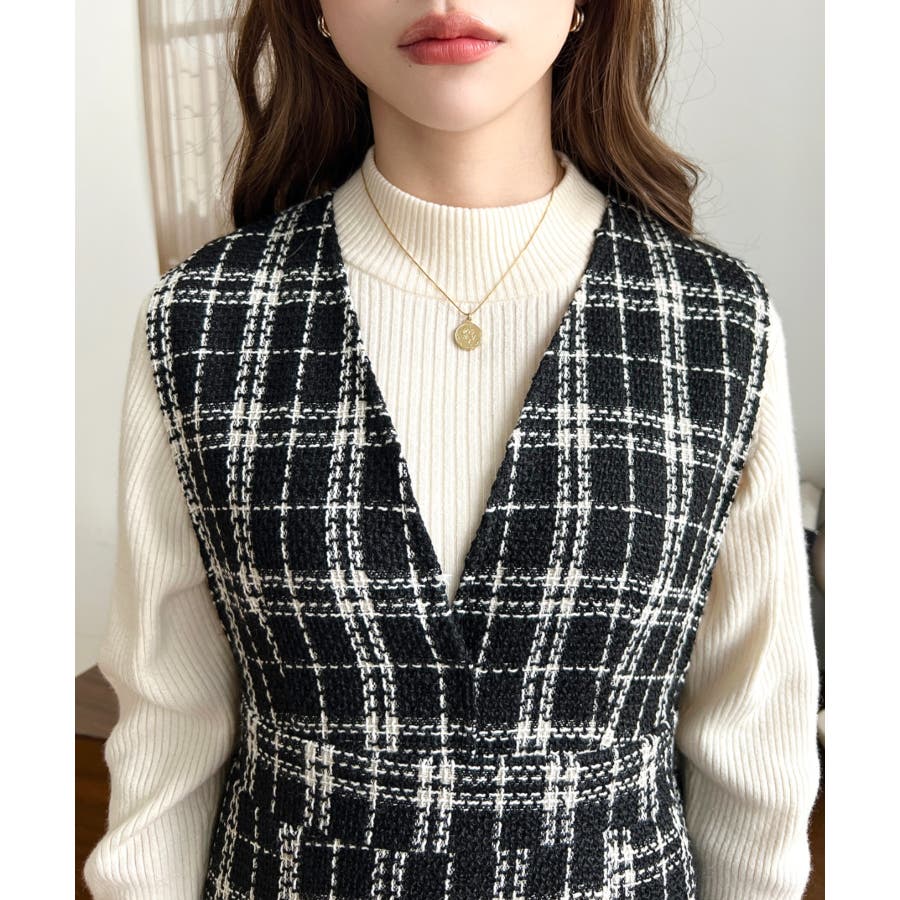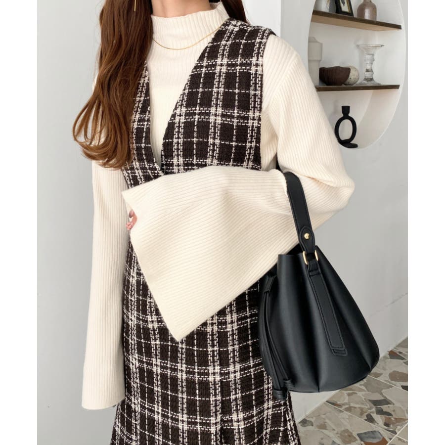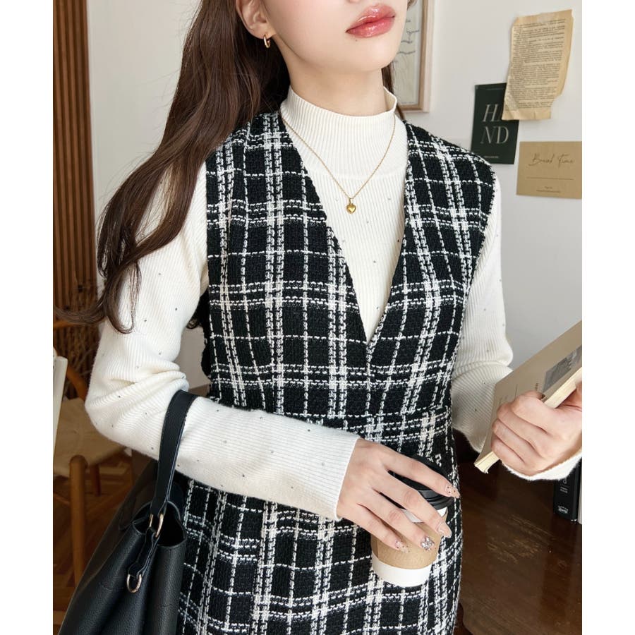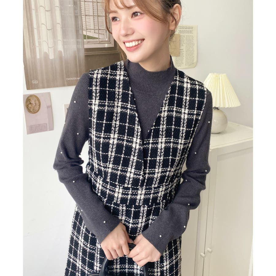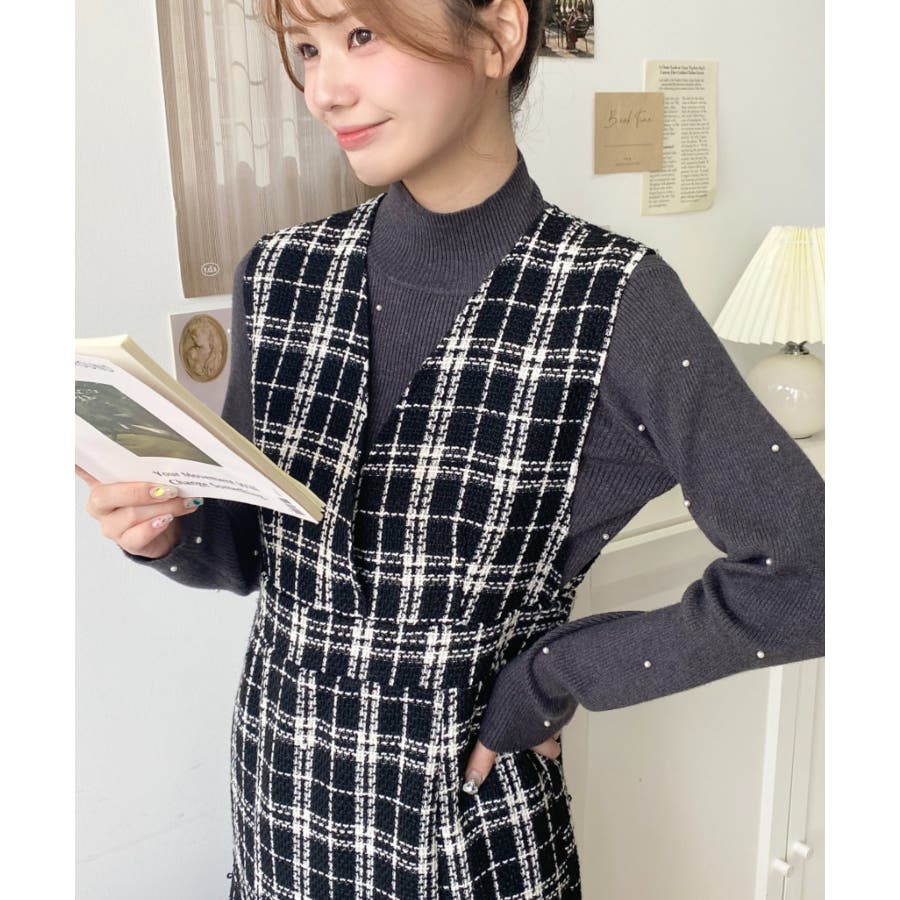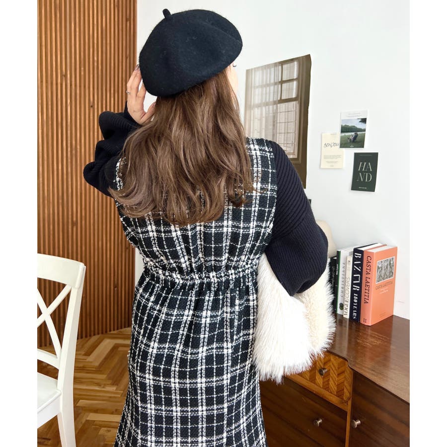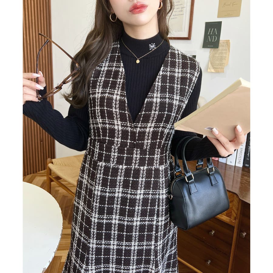 ・フェミニンで上品な印象をもつツイード生地に、マーメイドシルエットが女性らしい魅力を引き出すツイードワンピ!