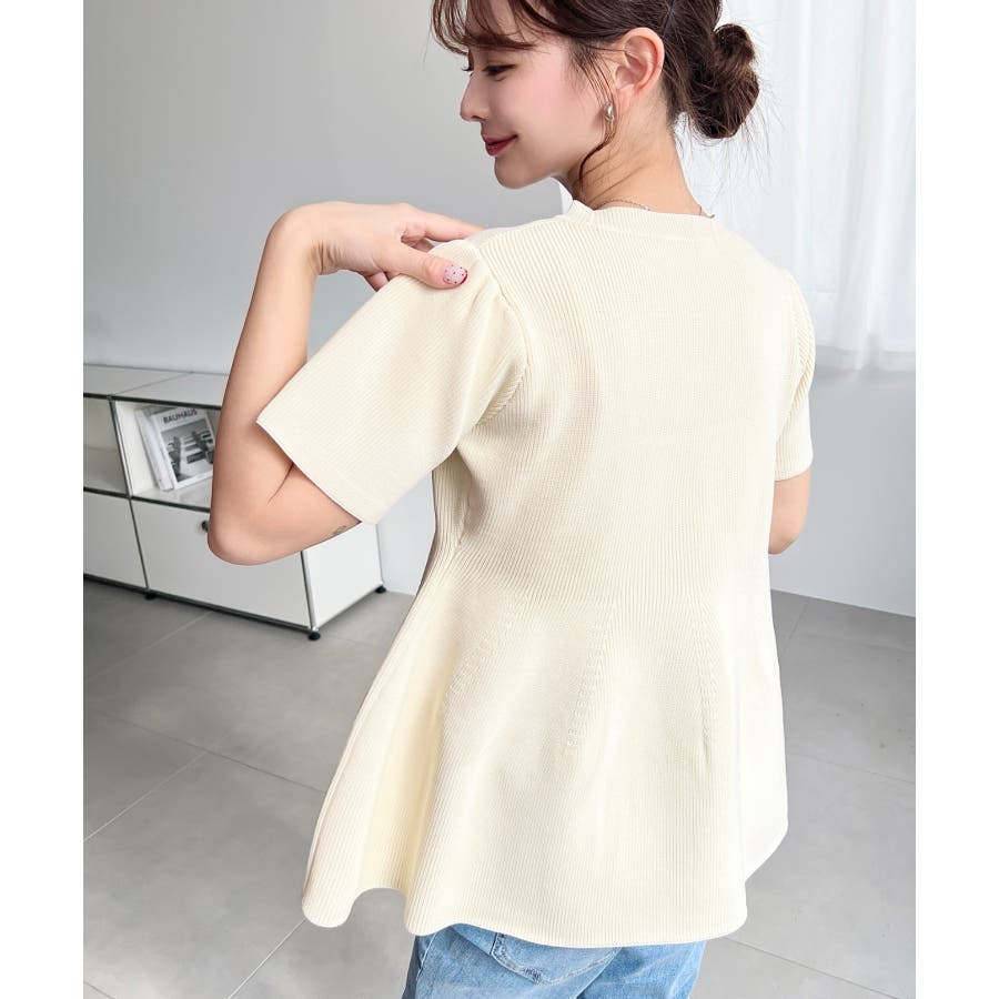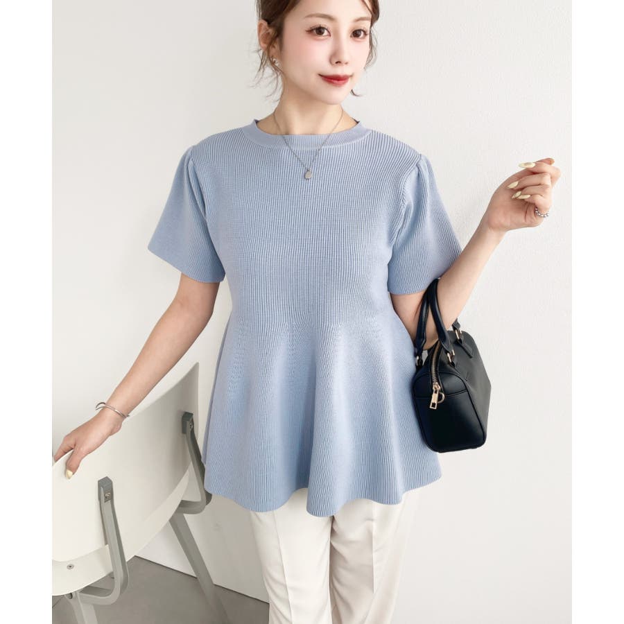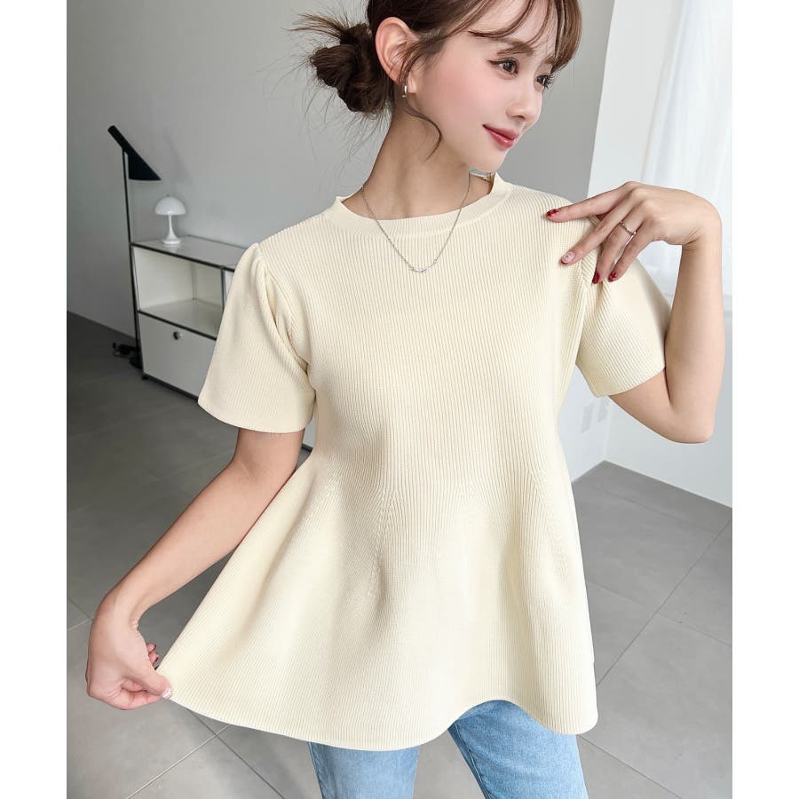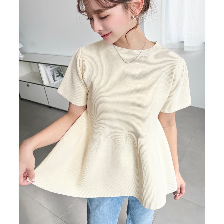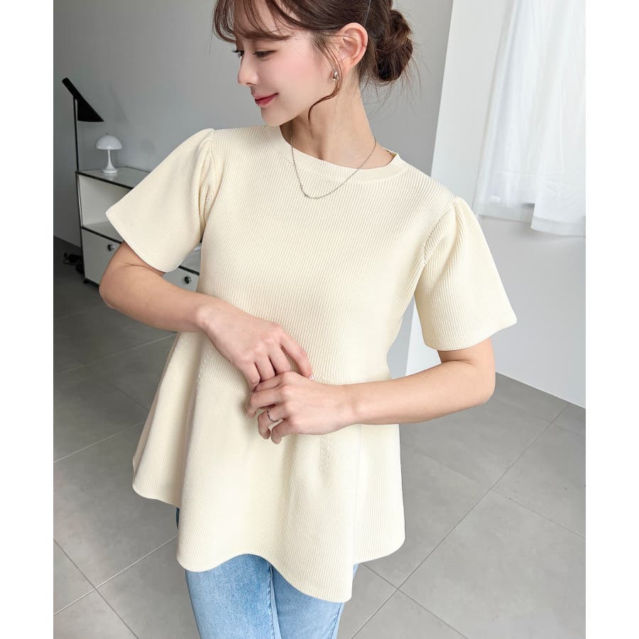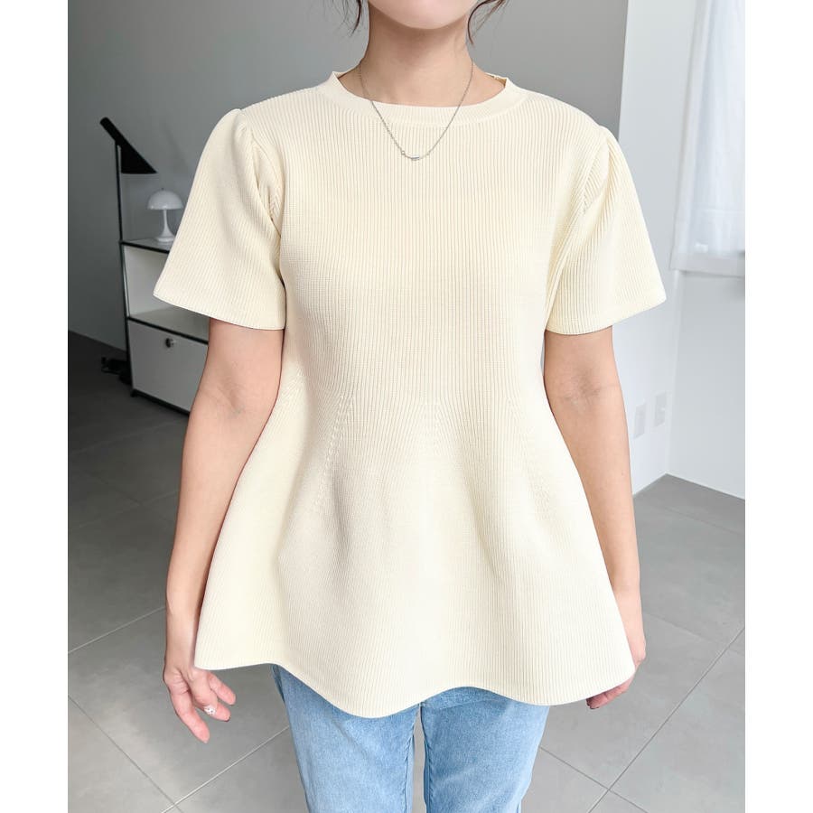 ウエスト位置がきゅっと高く見えるペプラムシルエットが可愛くて、自然にスタイルアップするアイテムです◎