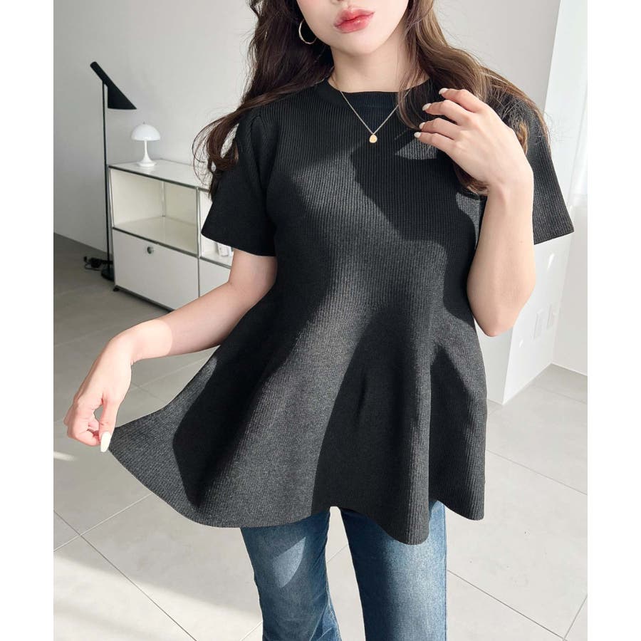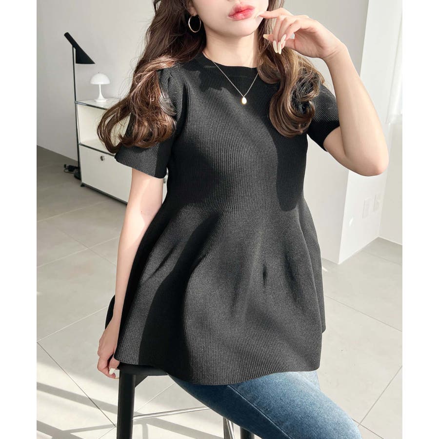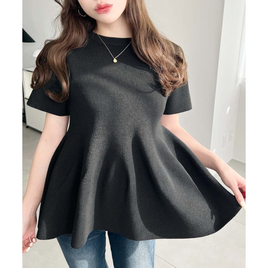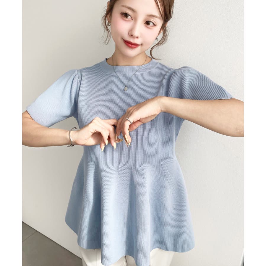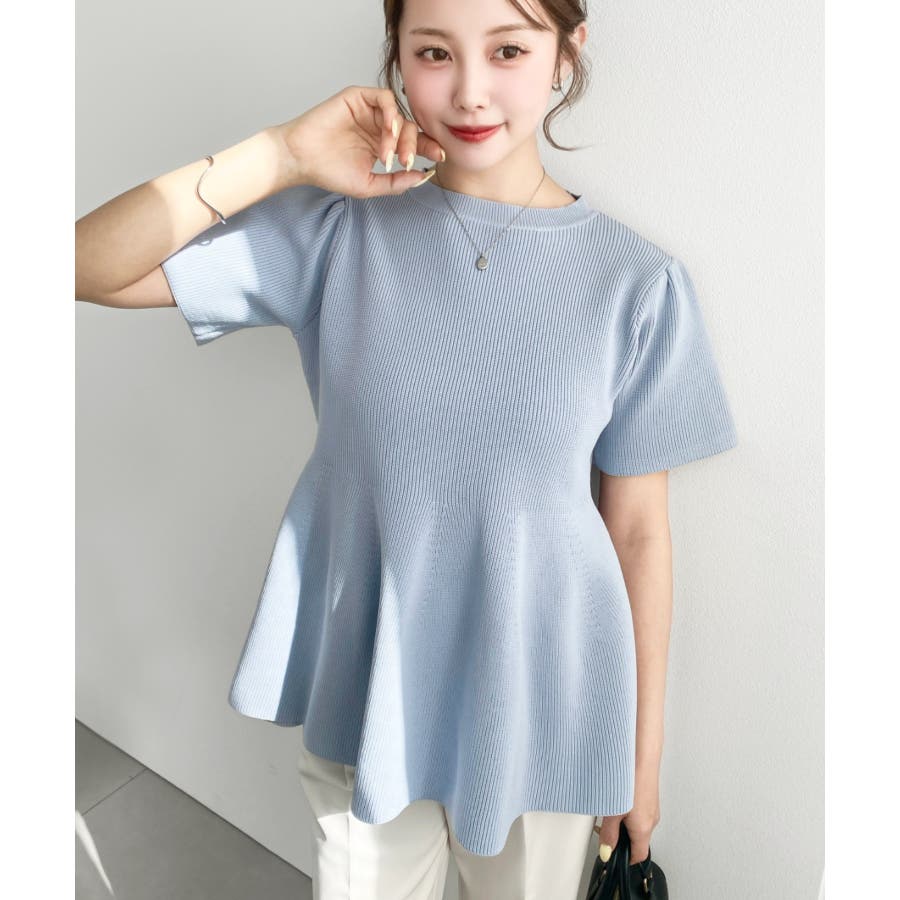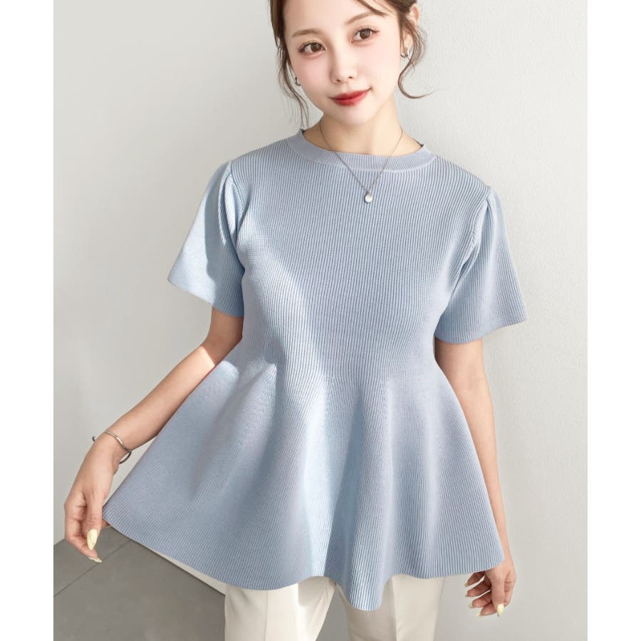 ウエスト位置がきゅっと高く見えるペプラムシルエットが可愛くて、自然にスタイルアップするアイテムです◎
