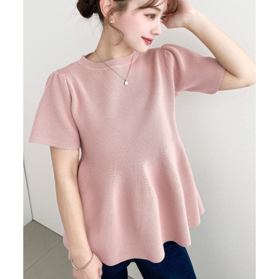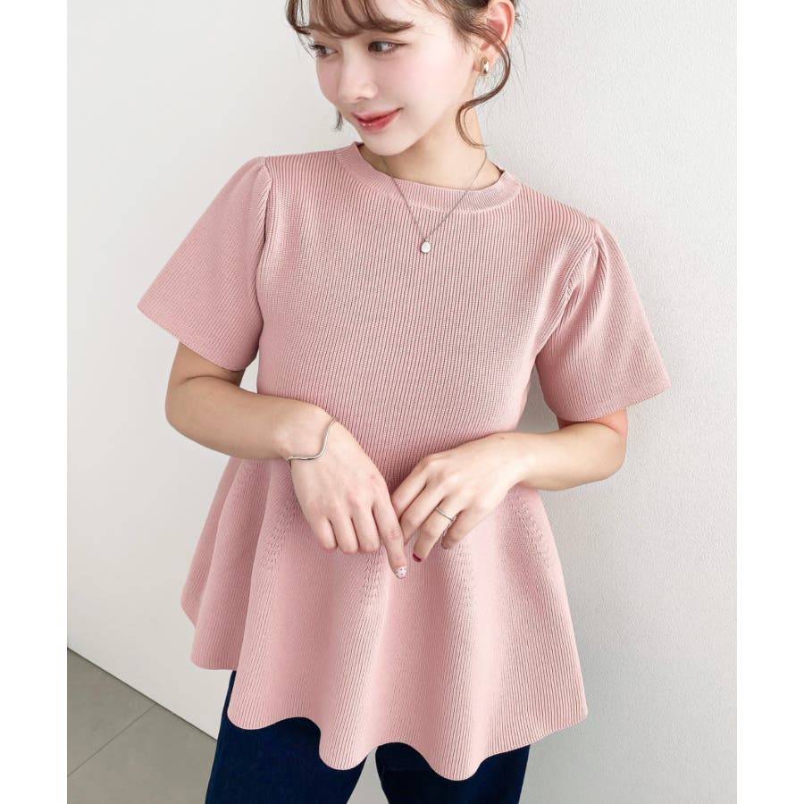 ・お尻が隠れるミドル丈のガーリーテイストなニットペプラムプルオーバー。