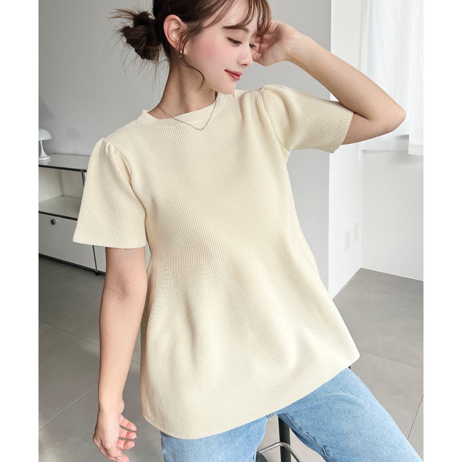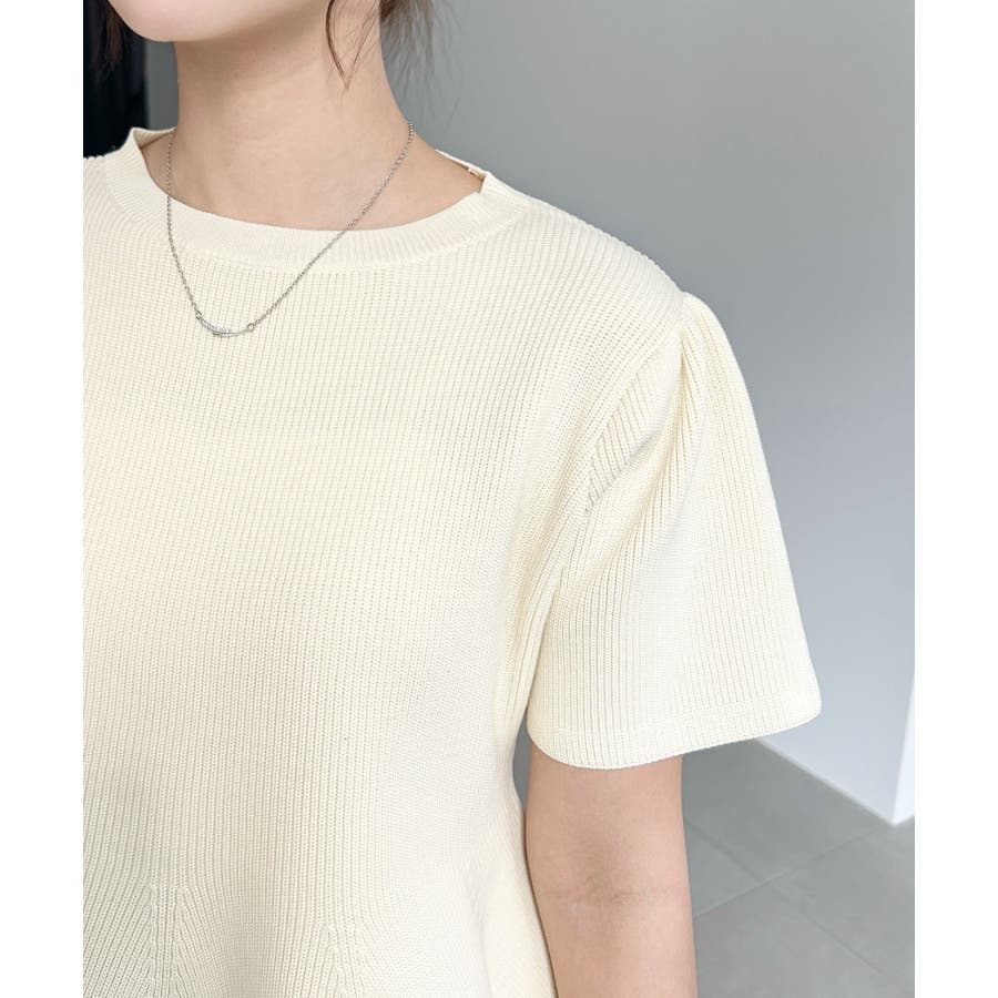 ・ニット生地なのでアクセサリーで華やかさをプラスするとより大人可愛いスタイルに。