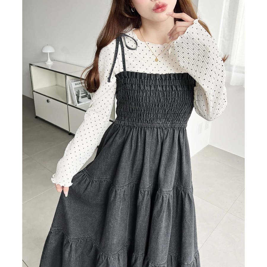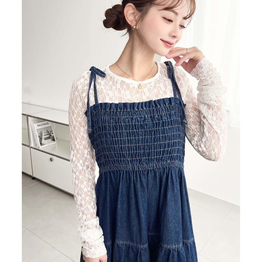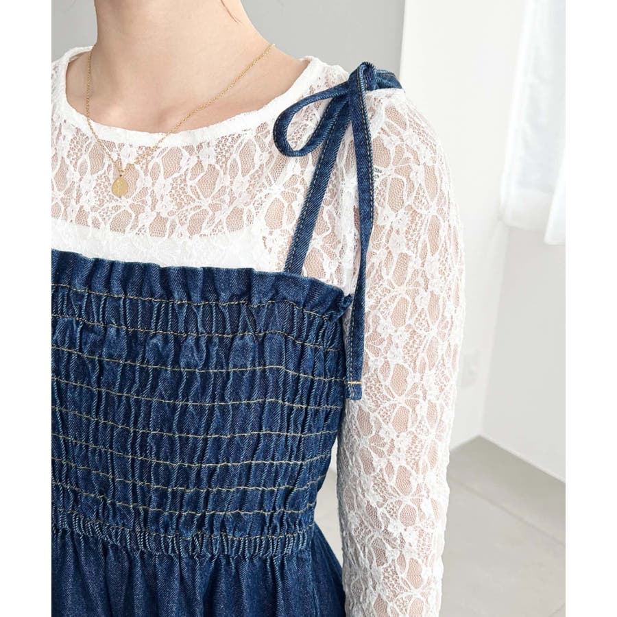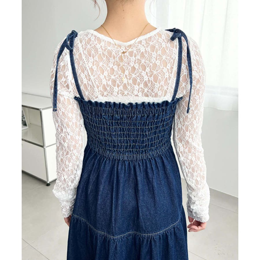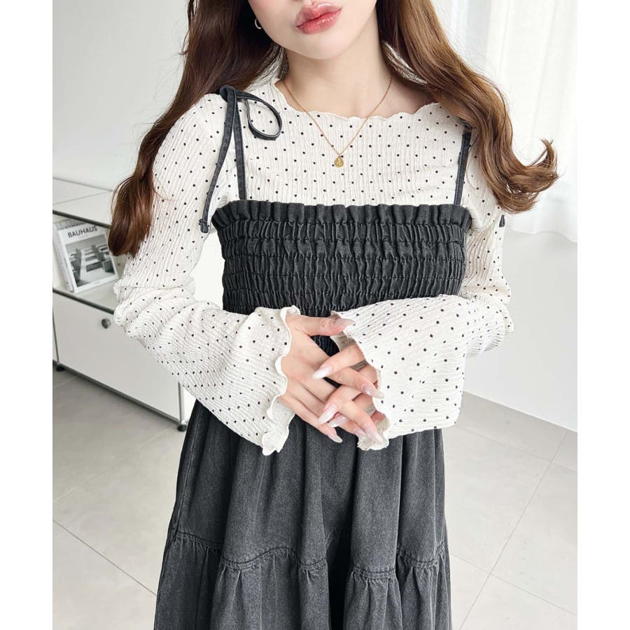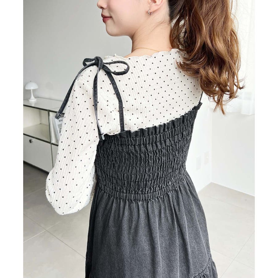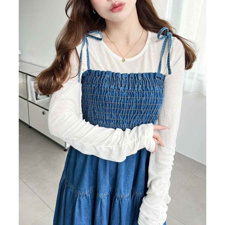 肩紐がリボンになっているので、1枚で着るのはもちろん、インナーを着ても可愛く着こなすことが出来ます♪
