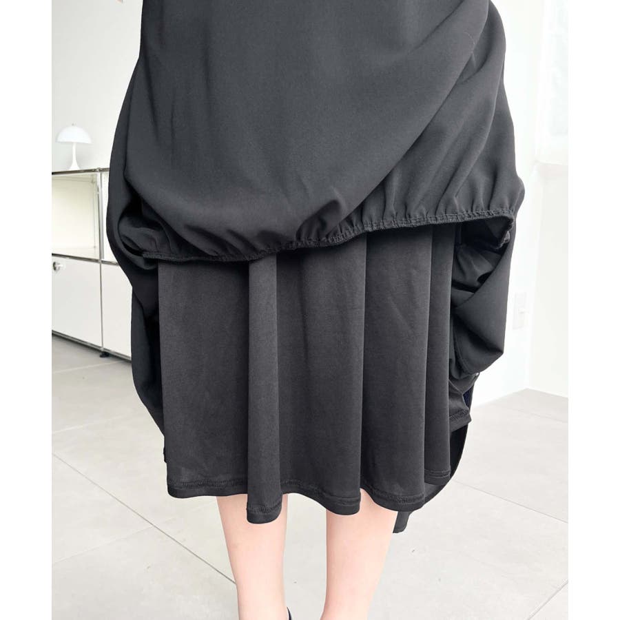 ・高めの位置に入ったウエストゴムが自然とスタイルアップを叶え、そこからふんわりと広がるシルエットが女性らしいラインを演出。