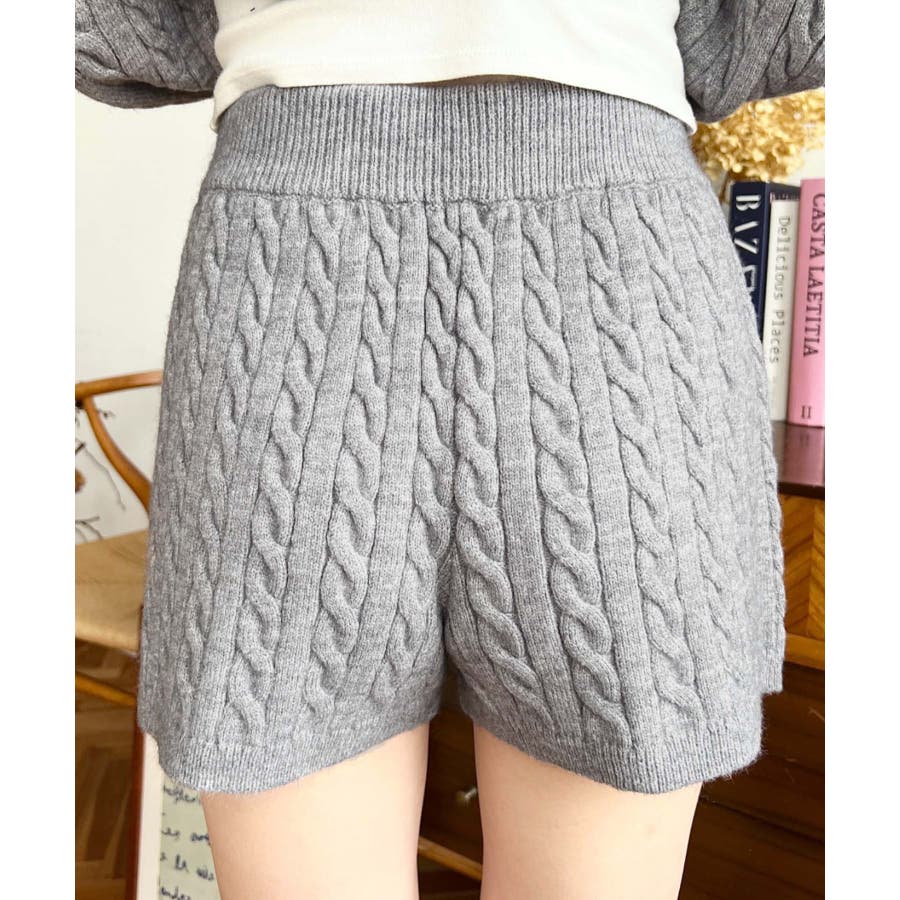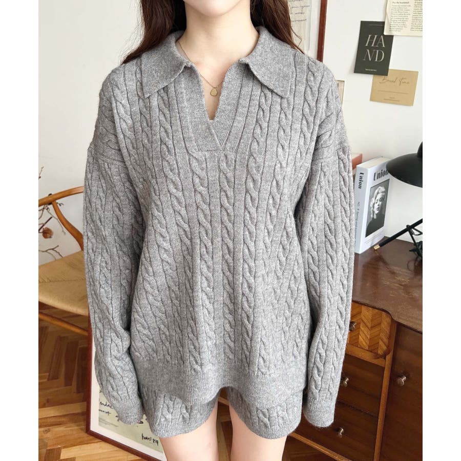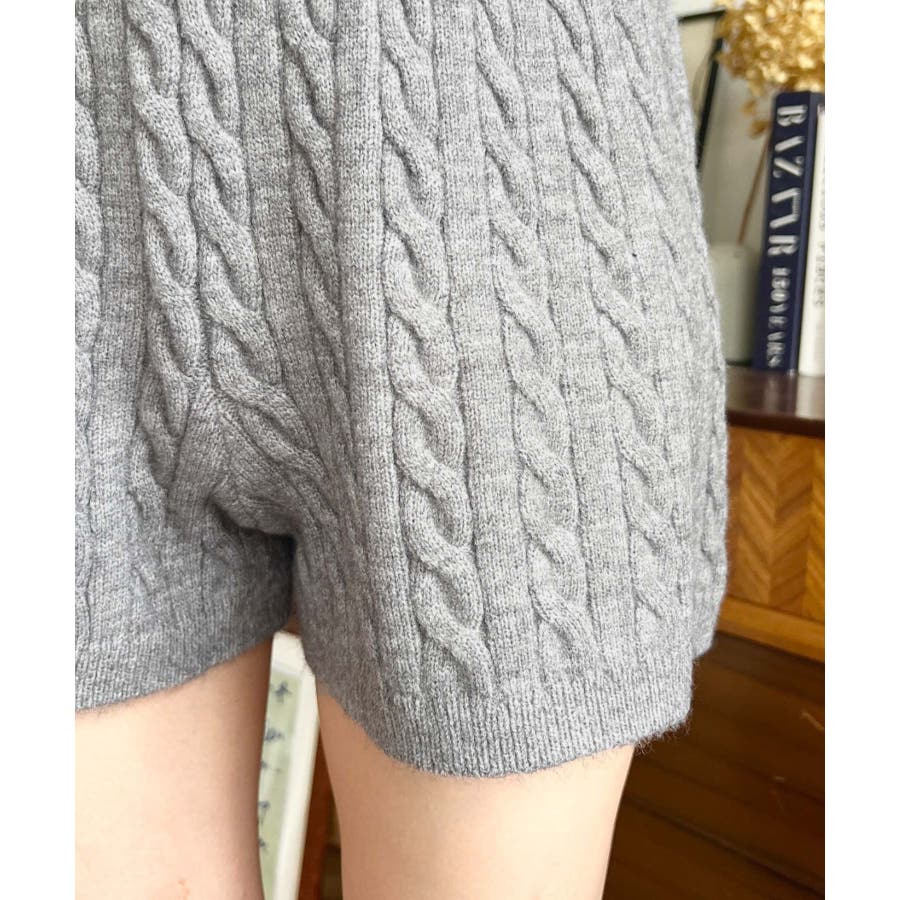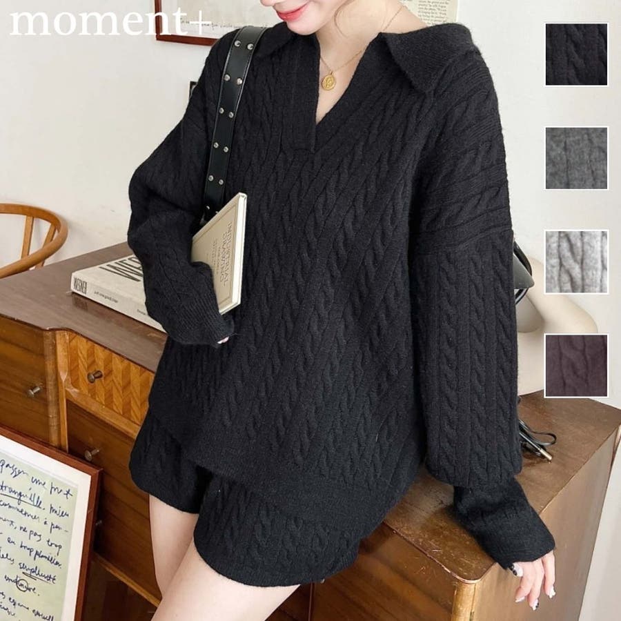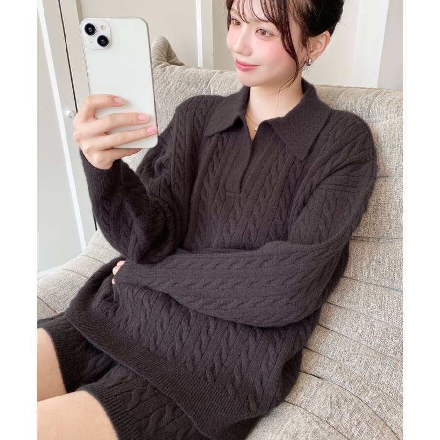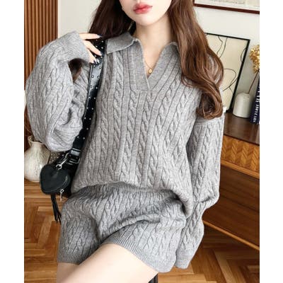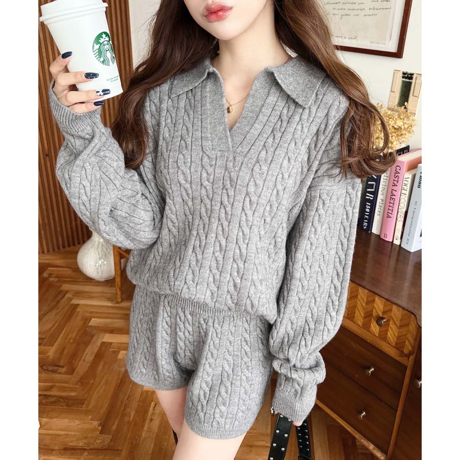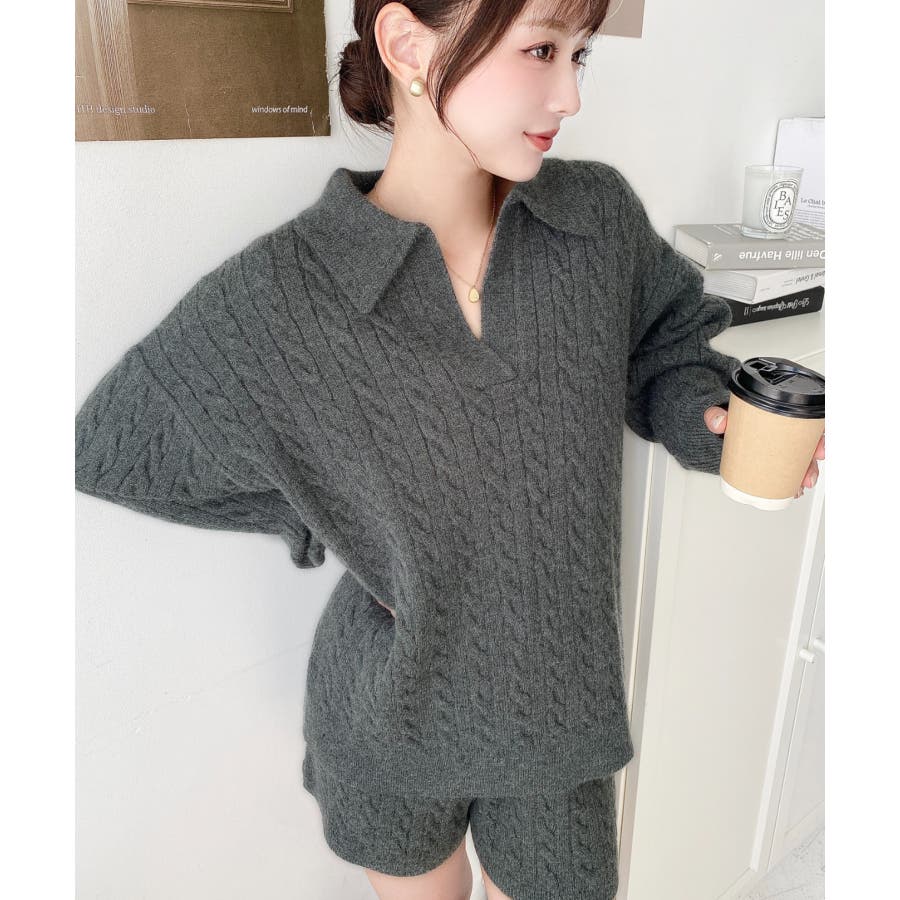 《セットアップ》ケーブル編みポロ&ショートパンツセットアップニット