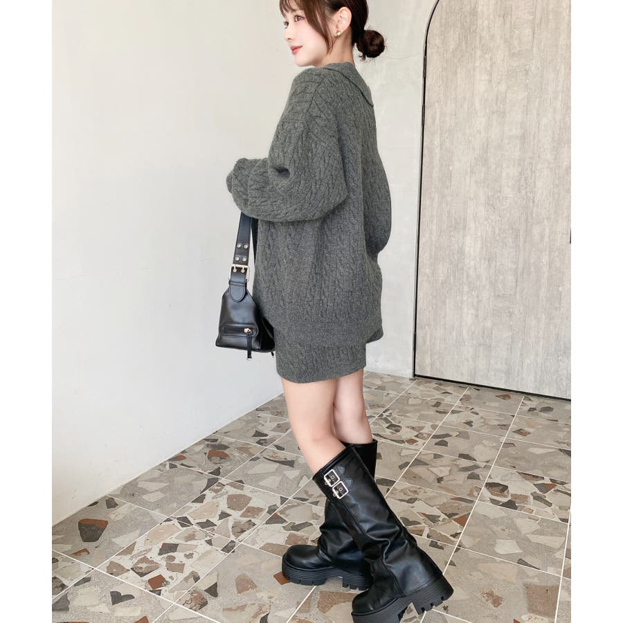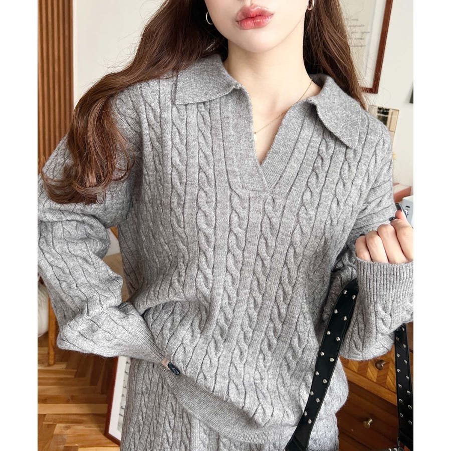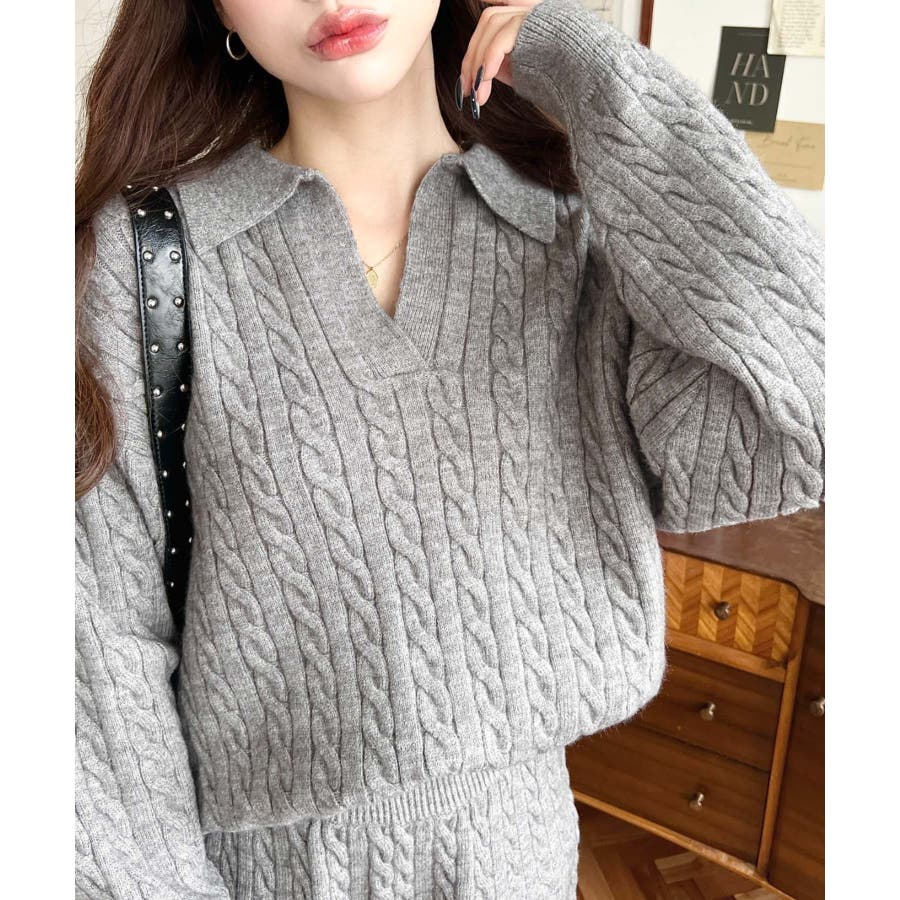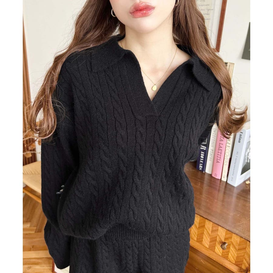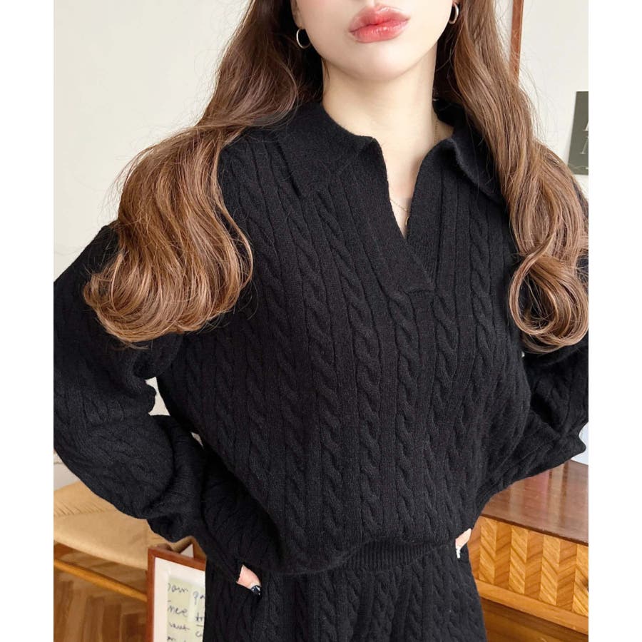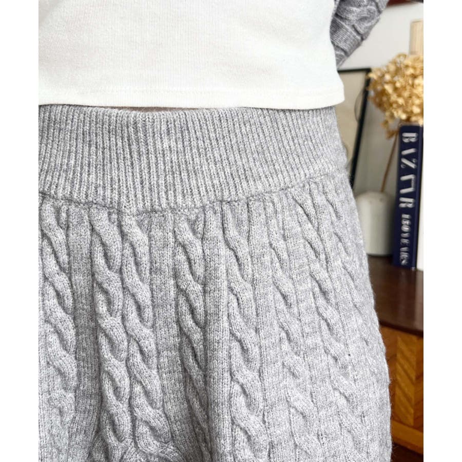 ・ケーブル編みの表情豊かなデザインで、シンプルながらも季節感のあるスタイリングを楽しめるセットアップ◎
