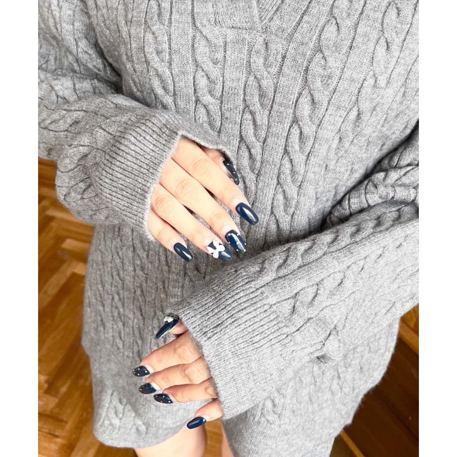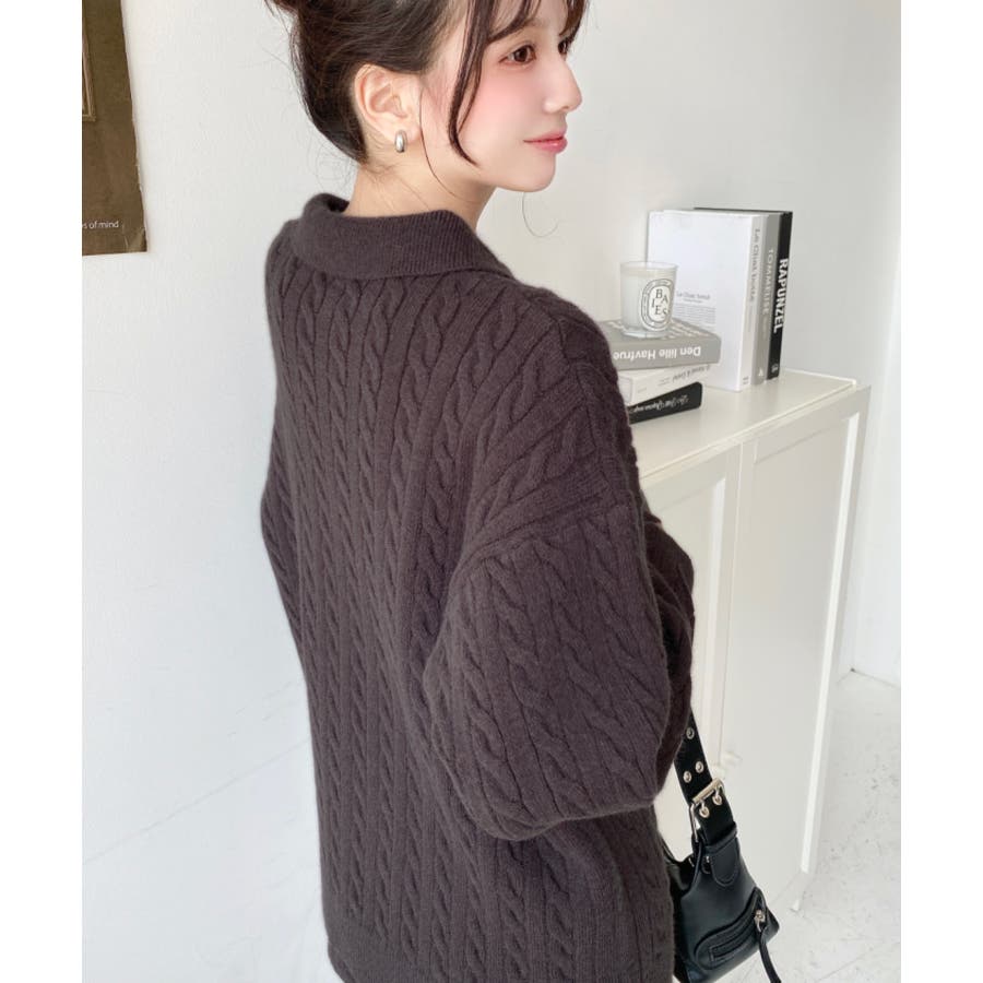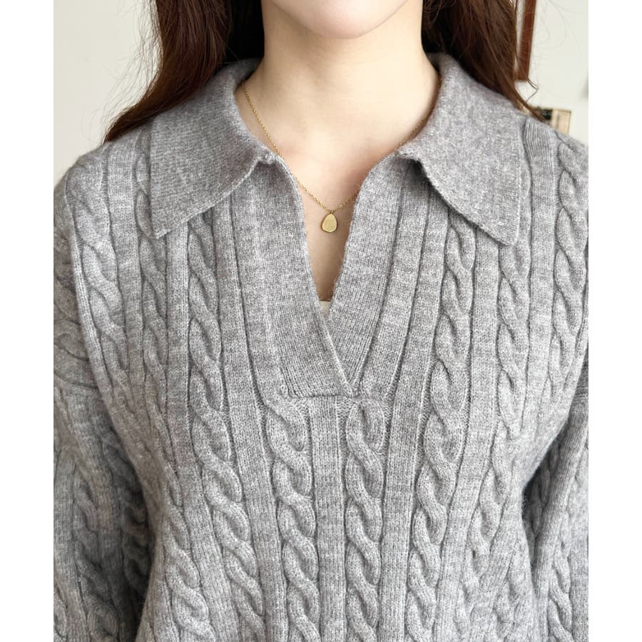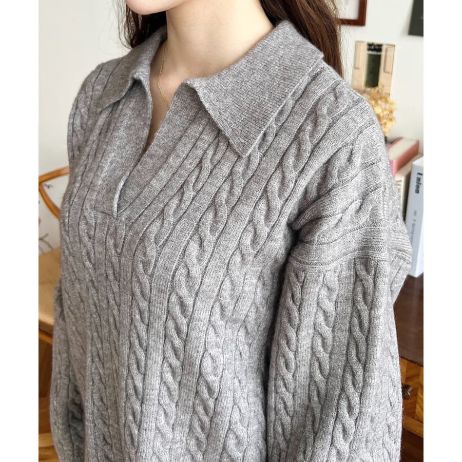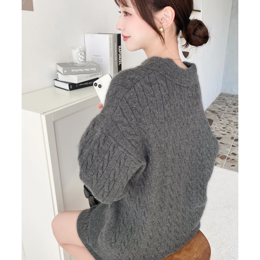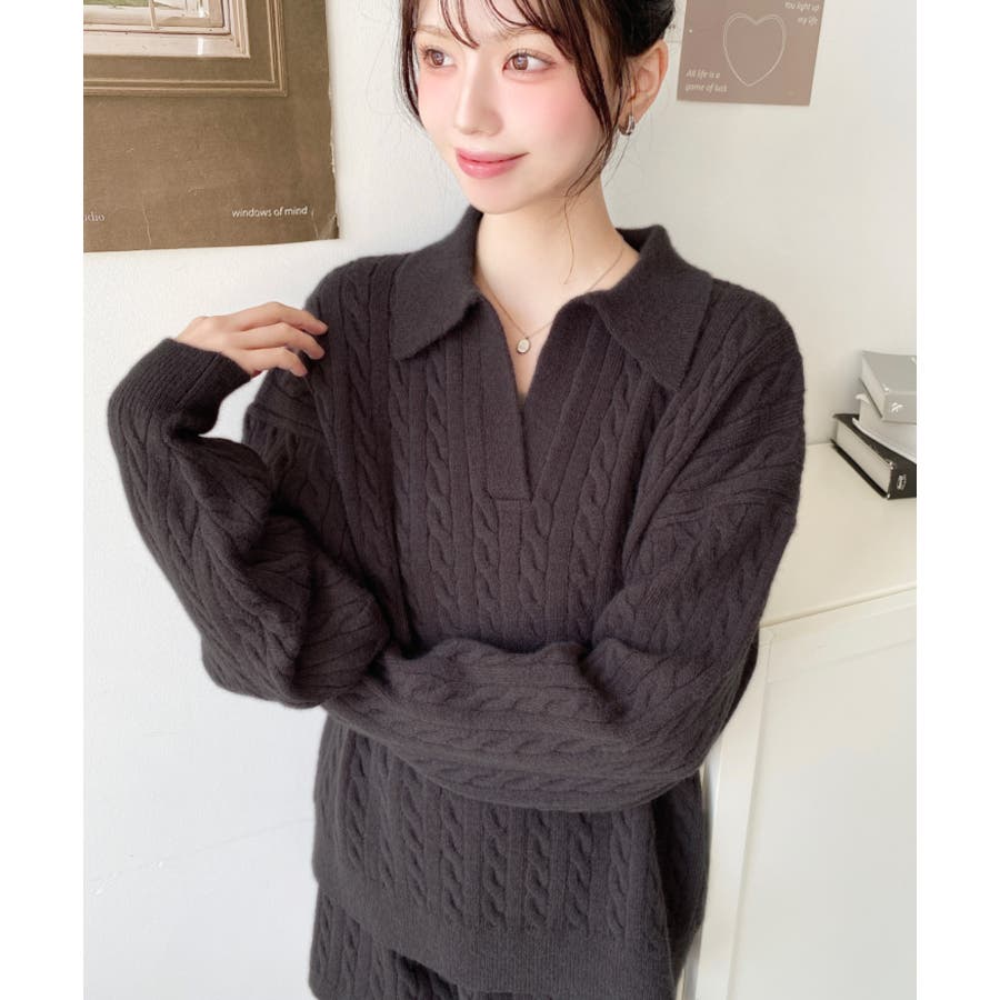 ・ケーブル編みの表情豊かなデザインで、シンプルながらも季節感のあるスタイリングを楽しめるセットアップ◎