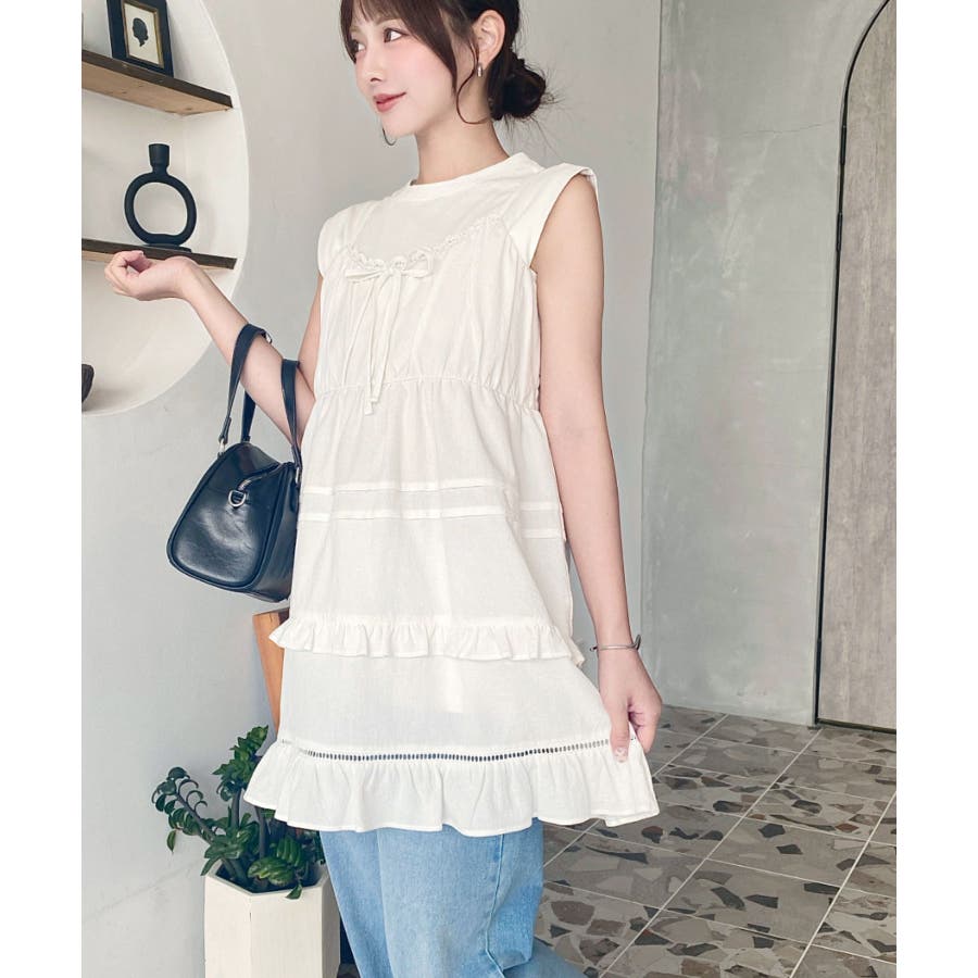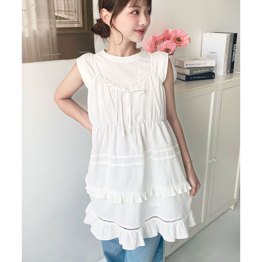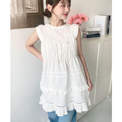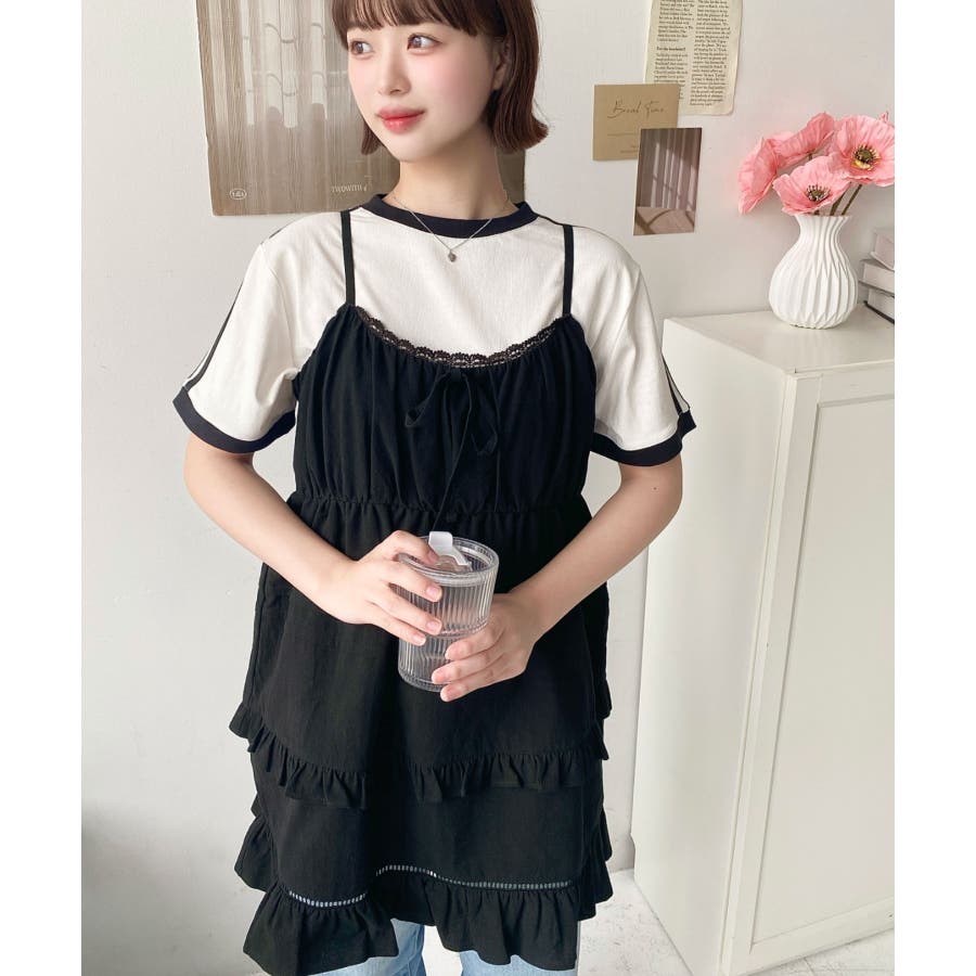 ・胸元に施された繊細なレースとリボン、ふんわり広がるティアードフリルは女の子の理想が詰まったデザイン◎