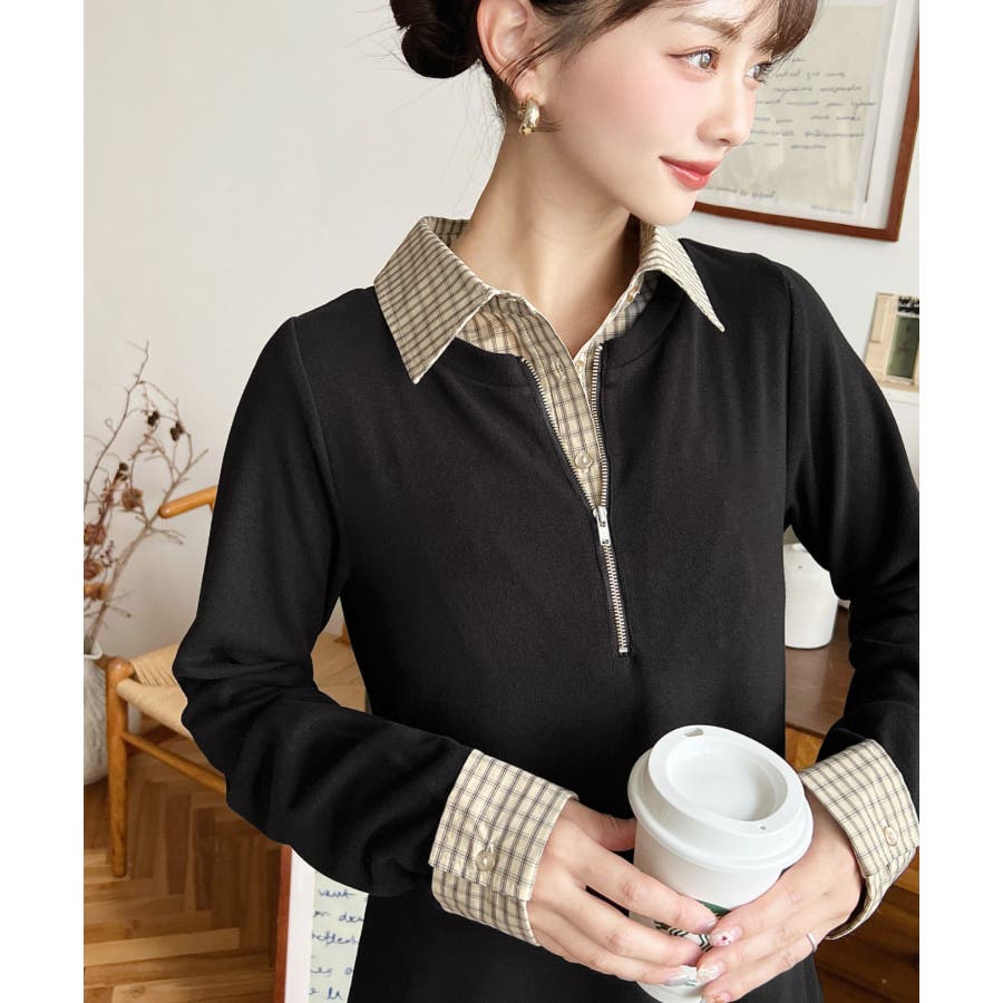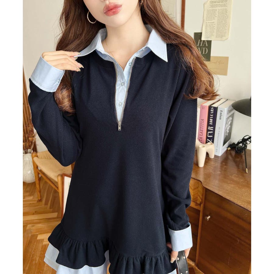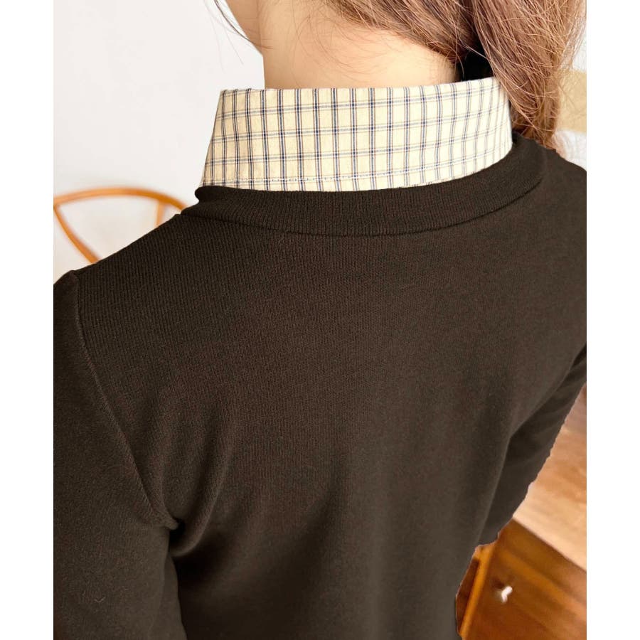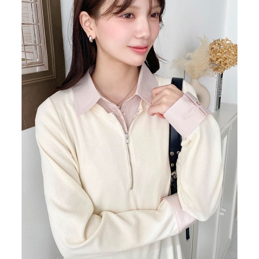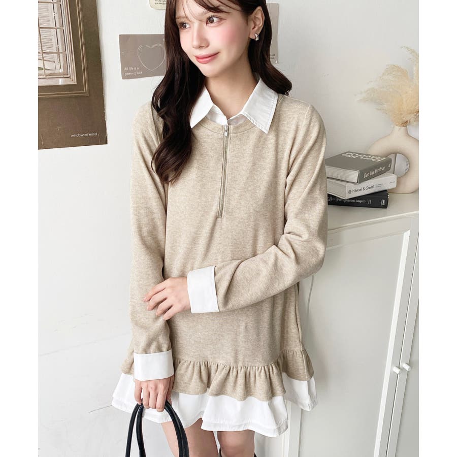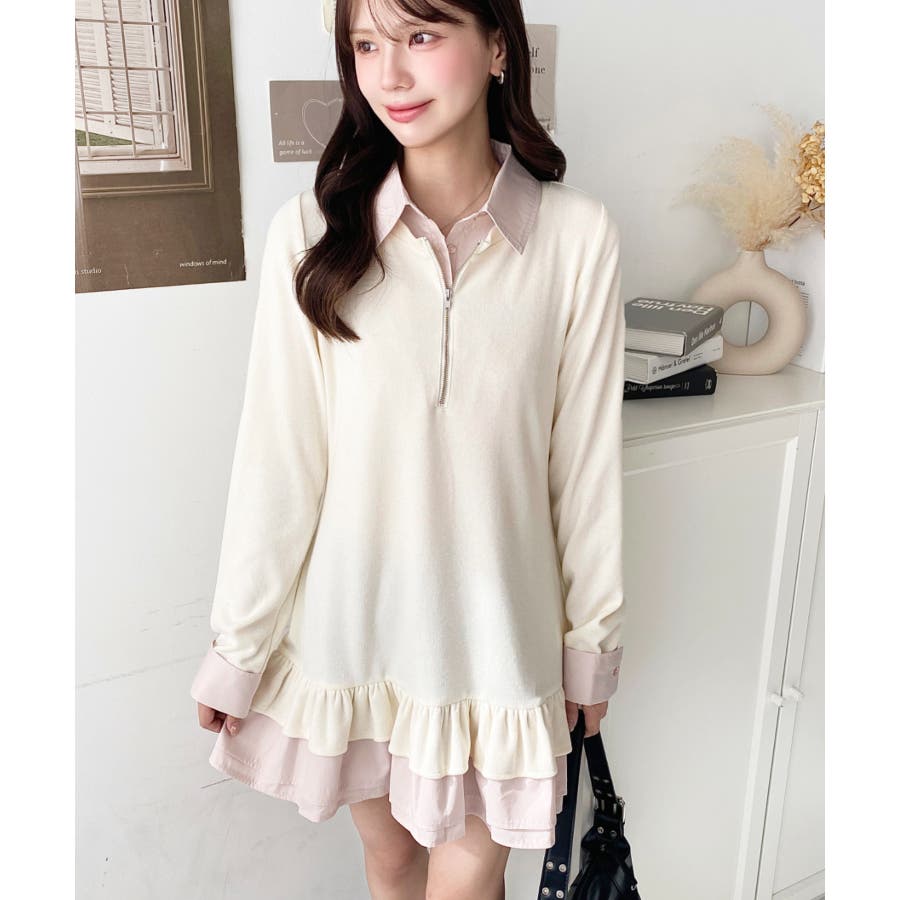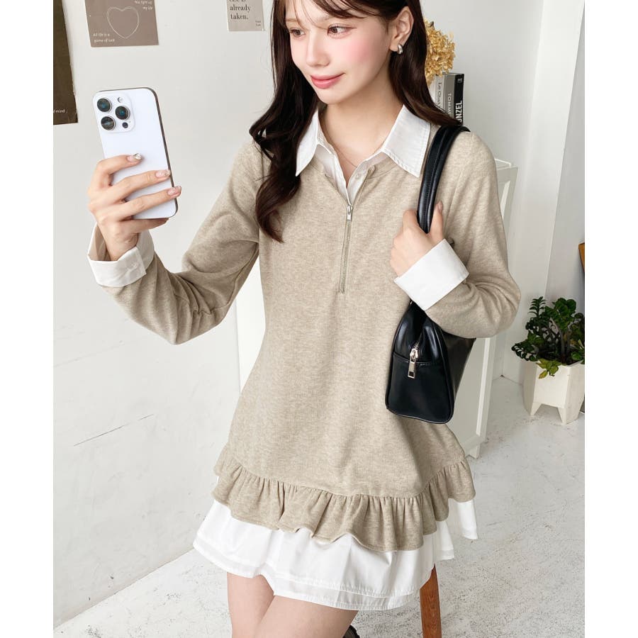 シャツレイヤード風の襟やフリルのデザインが可愛く、シルエットに立体感が出て着映えしました。