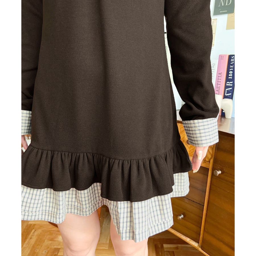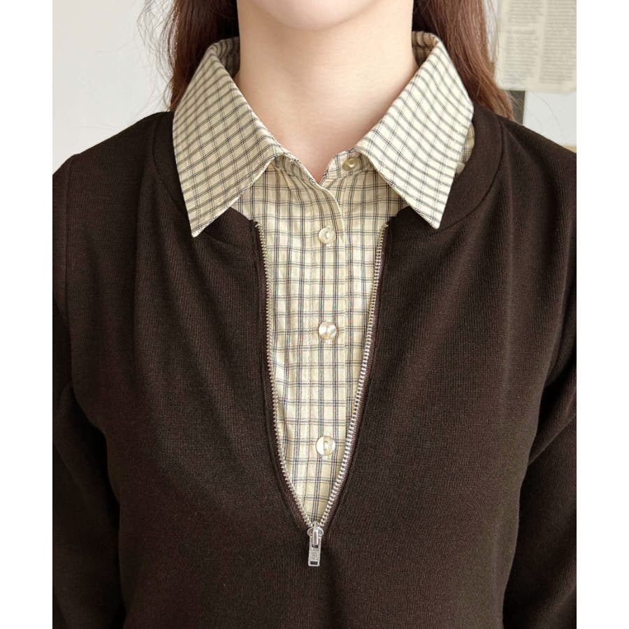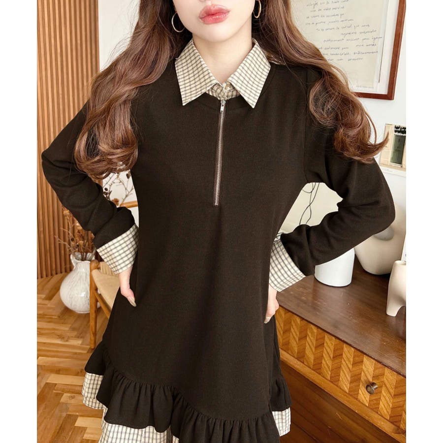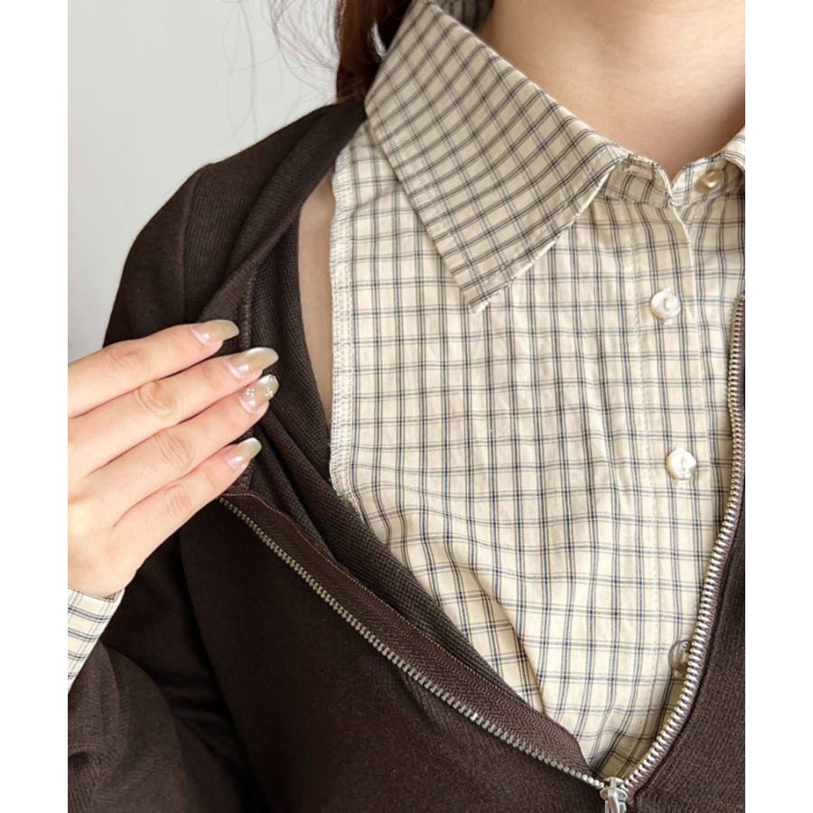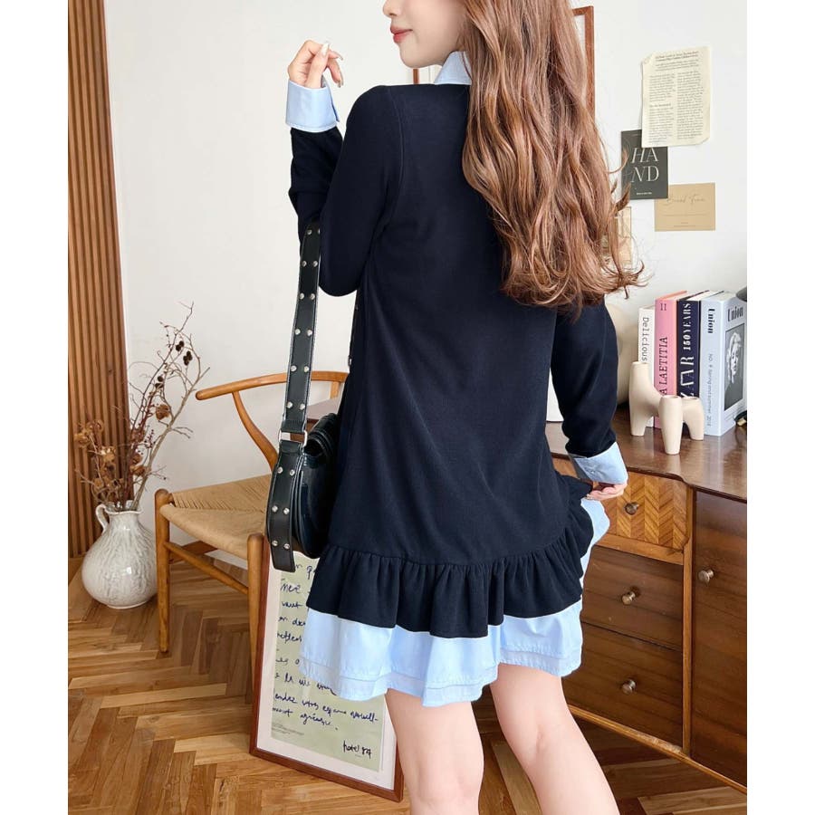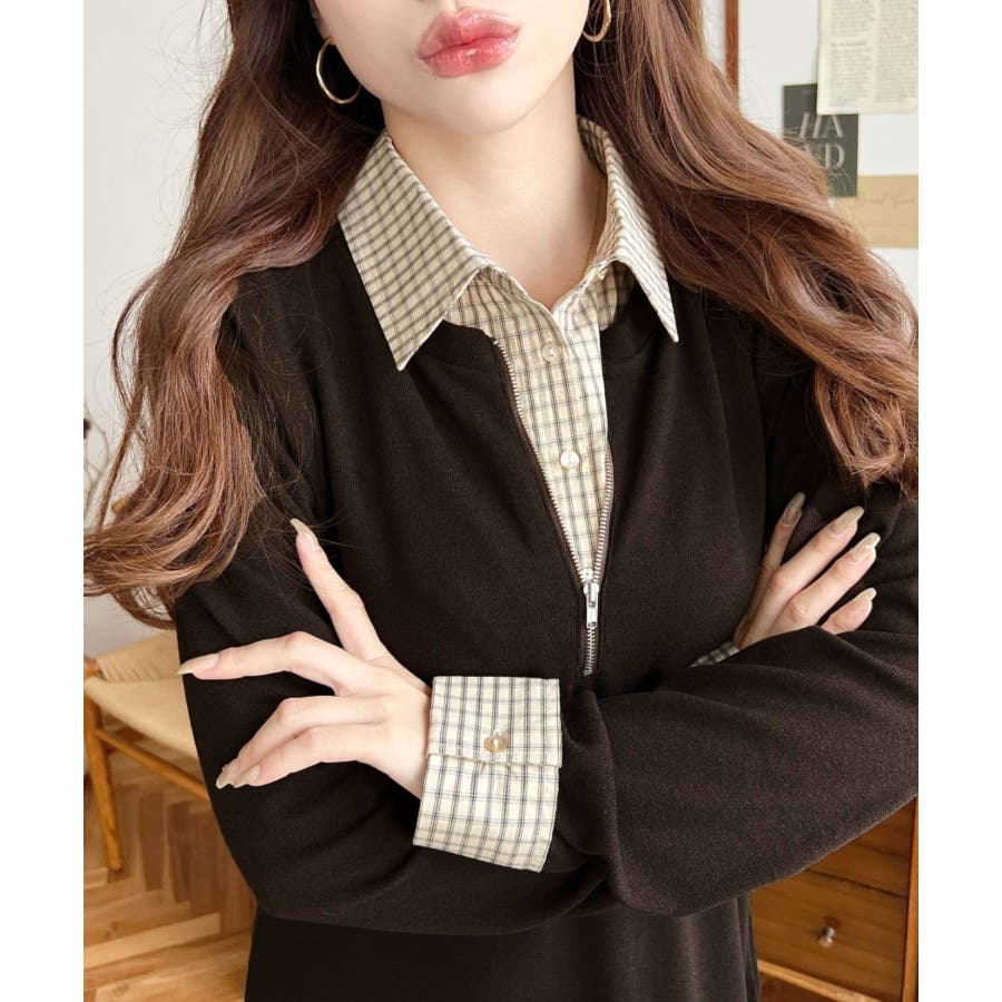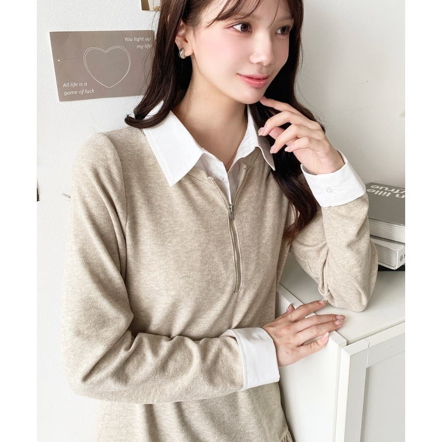 シャツレイヤード風の襟やフリルのデザインが可愛く、シルエットに立体感が出て着映えしました。