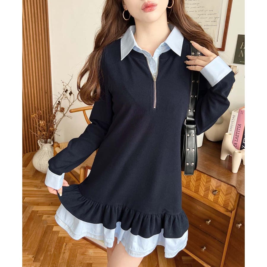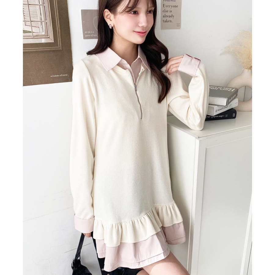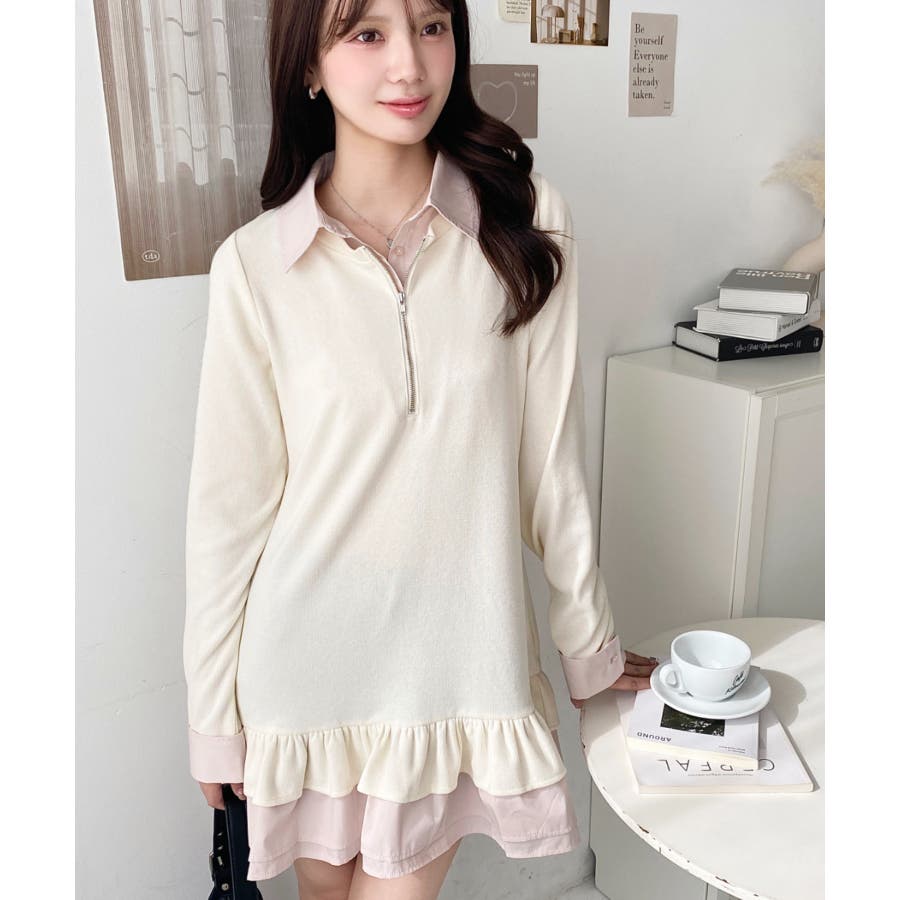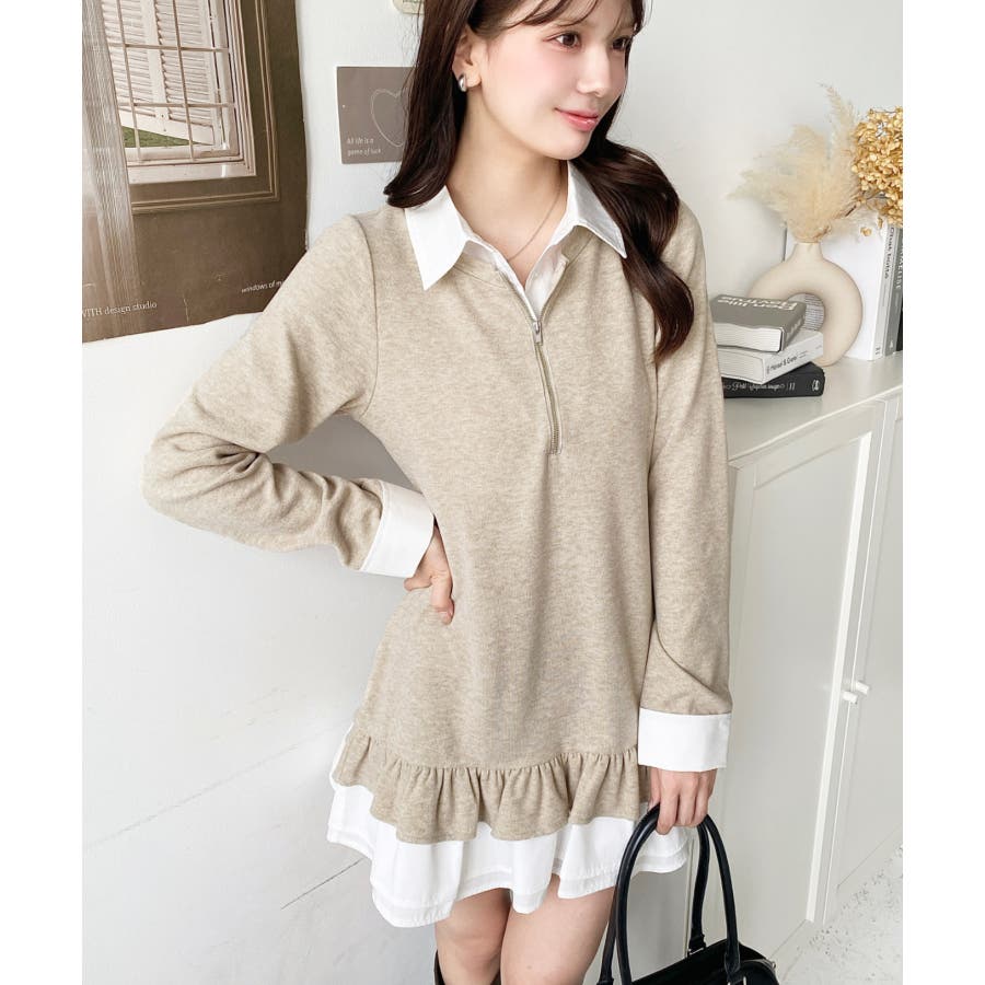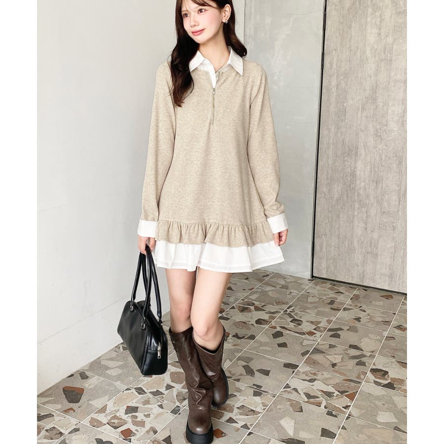 【1枚でシャツレイヤード感を楽しめる、大人のガーリースタイルにぴったりな主役級ミニワンピース♪】